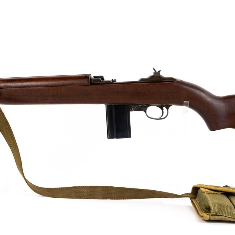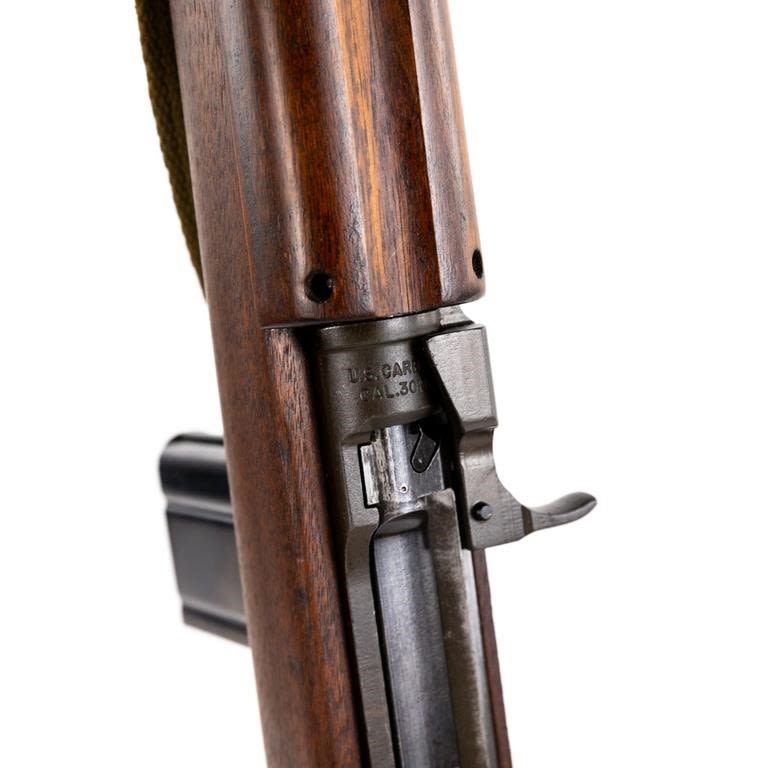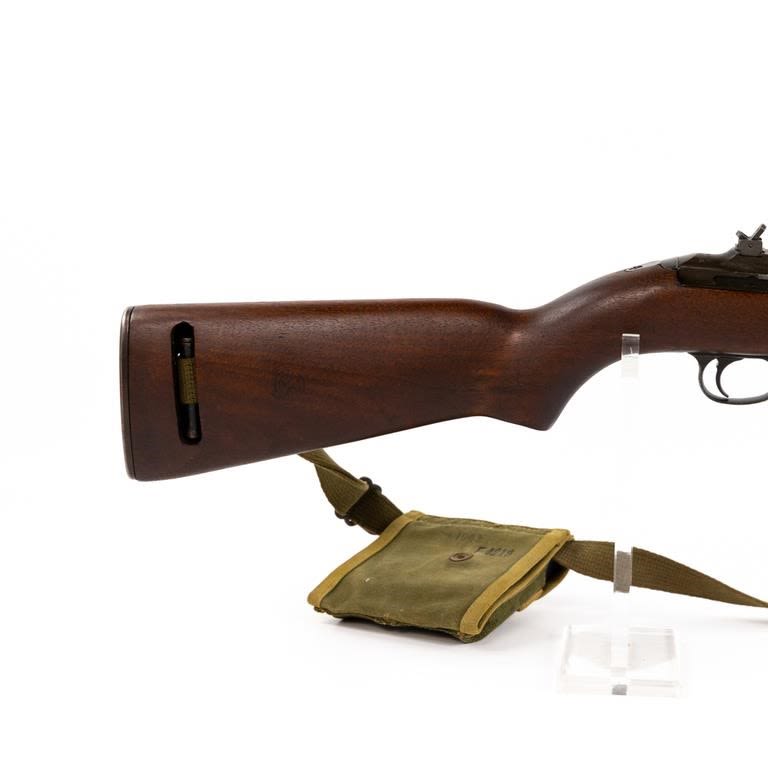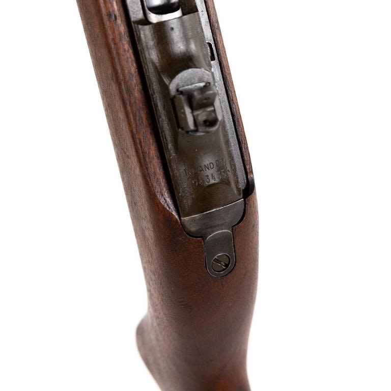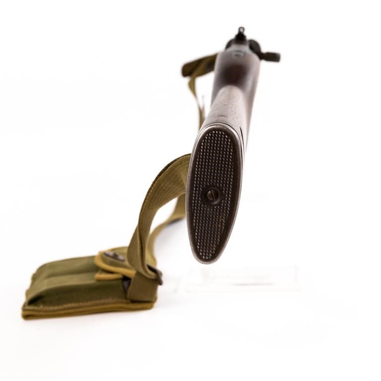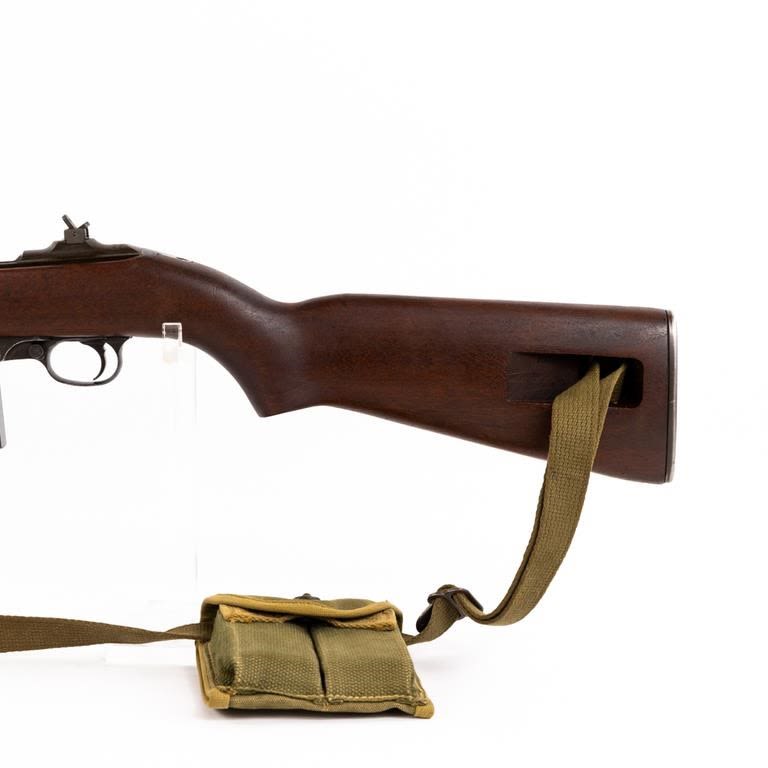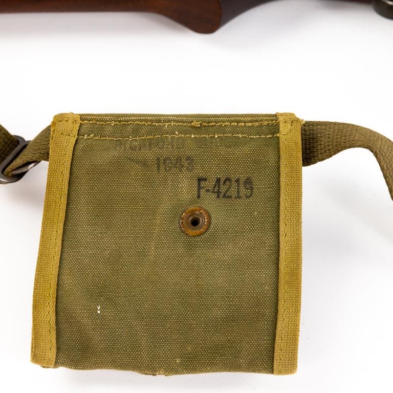 Inland M1 .30 Carbine Rifle in excellent condition. The bore is beautiful. The “X” in the serial number meant there was a duplicate serial number! This carbine is unusual in that the serial number is followed by an “X” suffix. The receiver is also marked “SG” on the left side, below the wood line. This indicates that the receiver was actually manufactured by Saginaw for Inland. Apparently Saginaw inadvertently duplicated the serial numbers of some receivers that were manufactured by Inland and thus the “X” was added to avoid having two weapons with the exact same number. Barrel: Inland MFG General Motors 11-43 B1 B 21, Stock: Of crossed Cannons, Handguard: OI, Frt Sight: Type 1 N, Frt Band: Type 1A, Sling: #2 Oiler II, Slide: Type 4 PI H, Recoil Plate: Type 3 DI, Butt Plate: late Inland, Rear Sight: Type 1 flip S, Bolt: Type 2 OI 3, Trigger Housing: Type 3 Inland, Safety: Push, Mag Catch: WI, Hammer: Type 3 HI, Mag: UI. Pouch: Bickford 1943, 2x magazines: UI KI. Case: Shane MFG co 1944 MFG 1942-43 C&R Eligible S/N:943435X