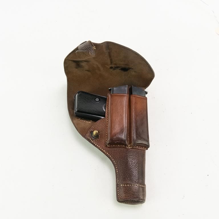 Husqvarna M1907 .380acp Pistol in very good vintage condition with some wear. A COMPLETE RIG! Holster, and two magazines! Collector grade. C&R Eligible S/N:2302