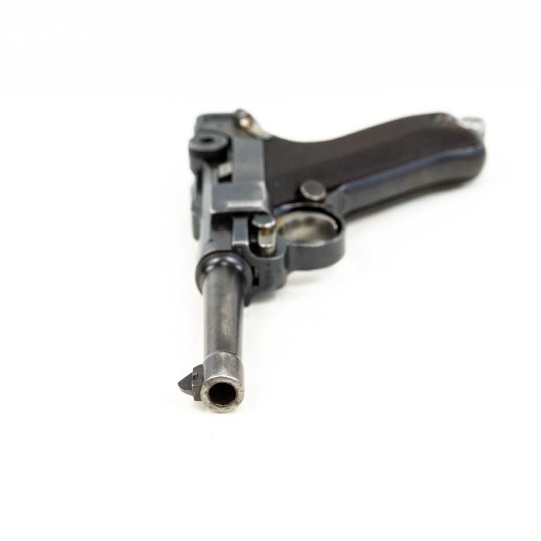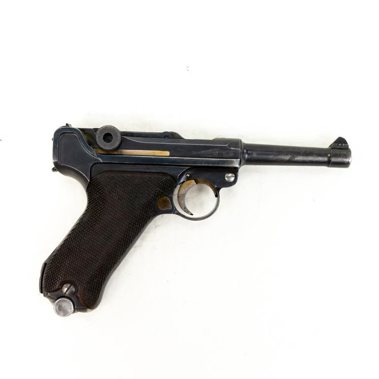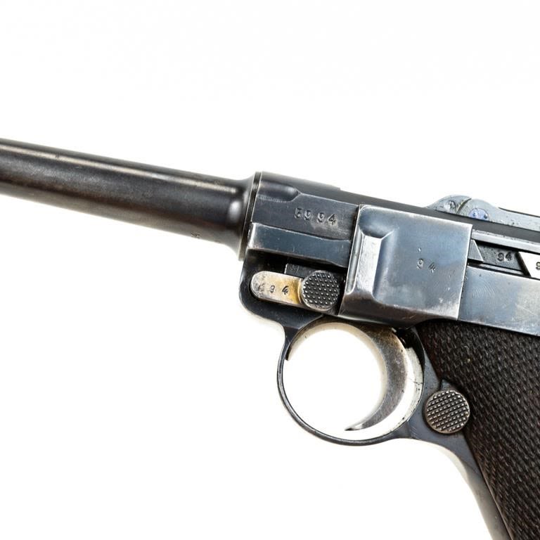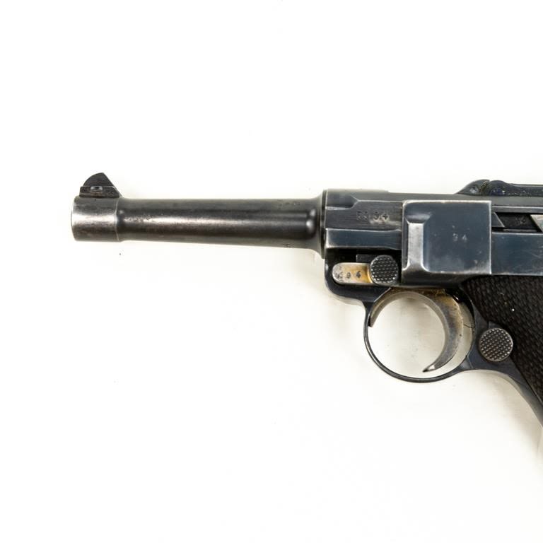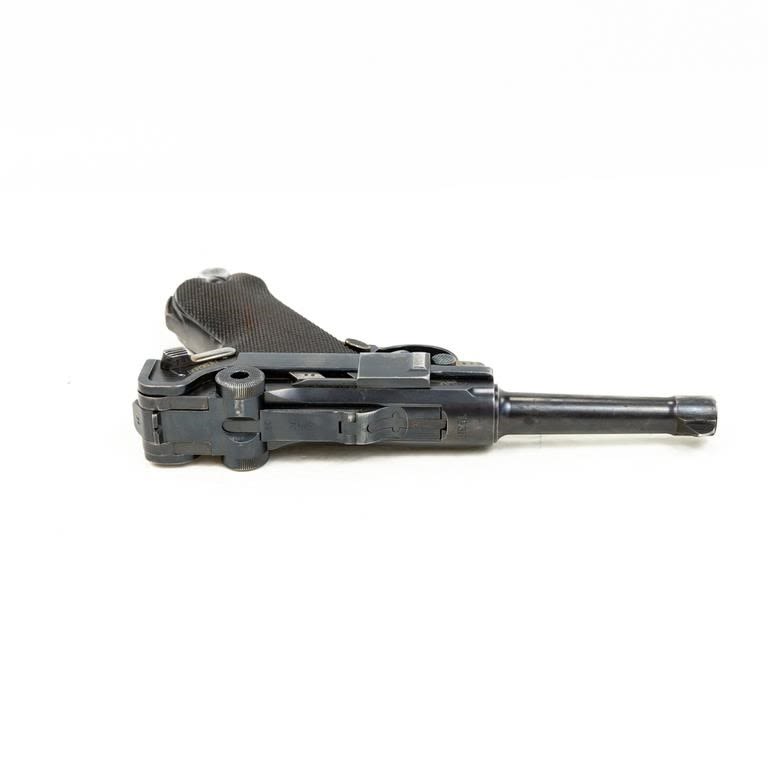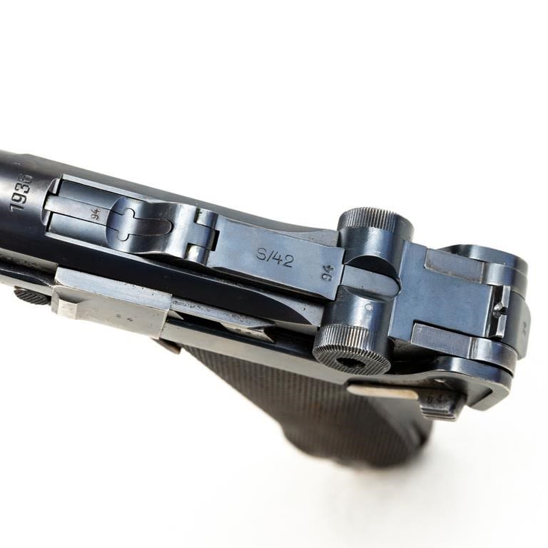 Mauser S/42 9mm Pistol in very good condition with light wear on edges etc. The bore is very sharp and shiny. Light pitting on the right side of barrel. Sharp German Eagles on frame. All visible numbers seem to match (except mags) . Grips are in very good condition. Comes with a very nice black Wilh. Brand Heidelberg 1936 holster, 2x magazines and key. Very nice piece of history! MFG 1936 C&R Eligible S/N:5994