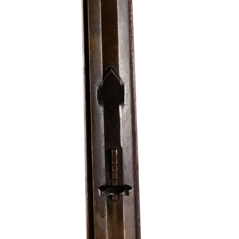 “1882” Winchester 1873 3rd Model 38cal 24″ Octagon barrel Rifle in very good condition in a beautiful patina finish. The action is incredibly smooth and seems fully functional and the bore has rifling and some oxidation. Front sight blade is missing. MFG 1882 C&R Eligible S/N:95434A