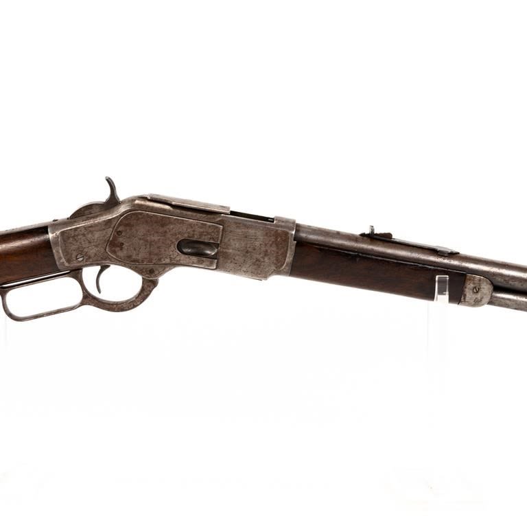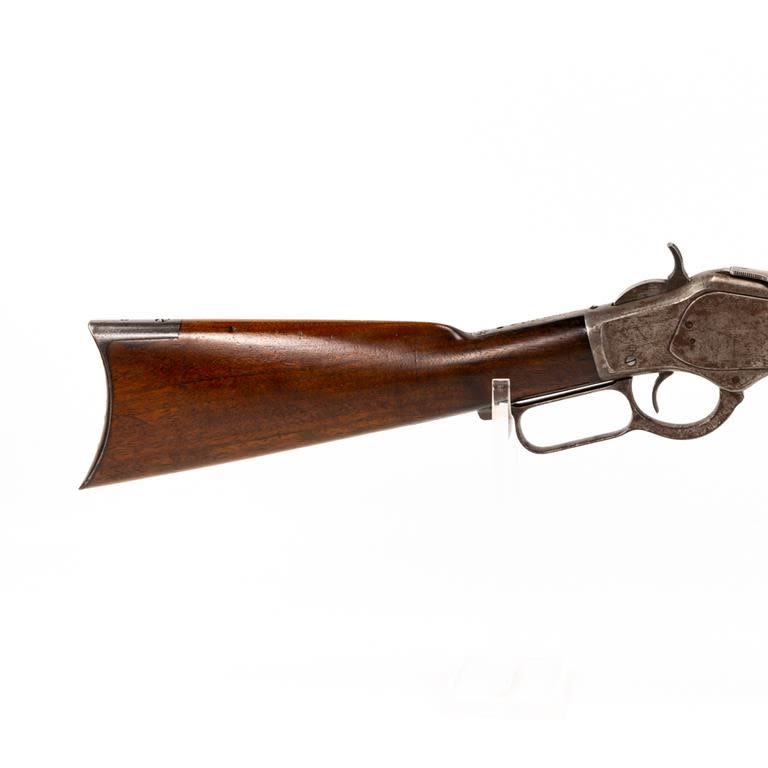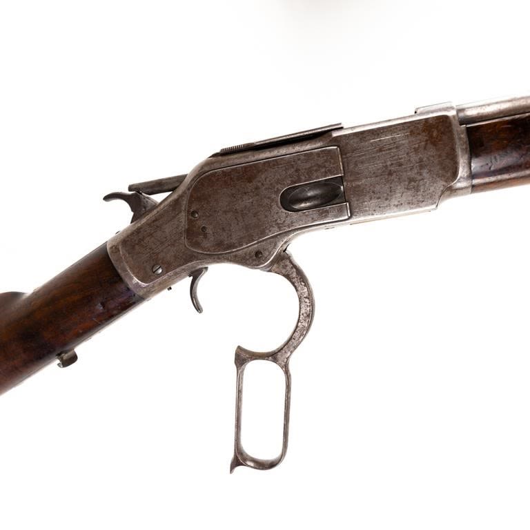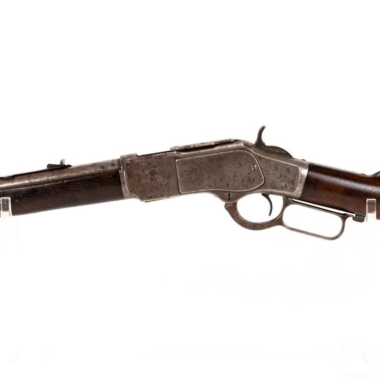 Winchester 1873 44WCF Carbine in fair to good vintage condition with wear and oxidation. The bore is sharp with some freckling. Originally a rifle and modified to a carbine MFG 1899 C&R Eligible S/N:538452B