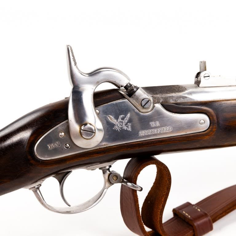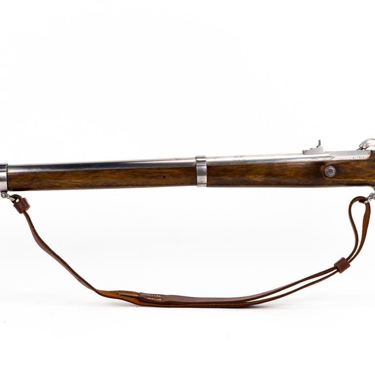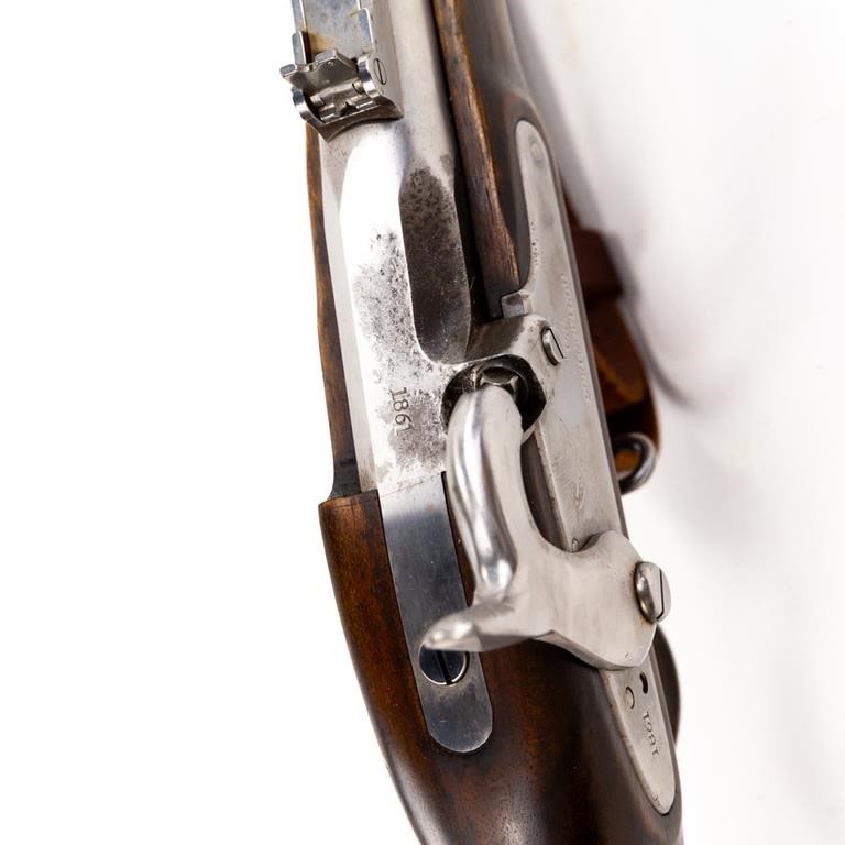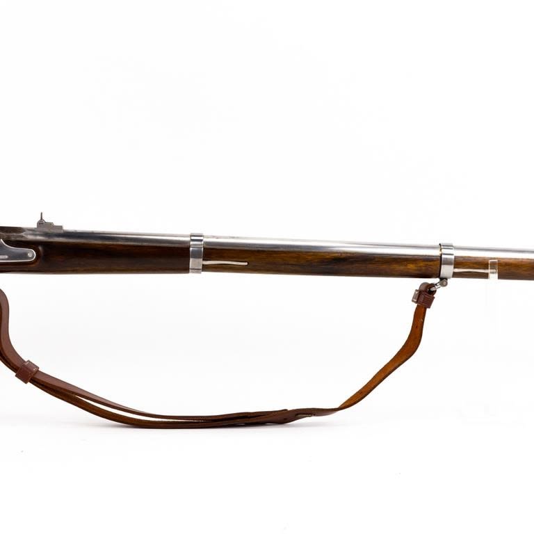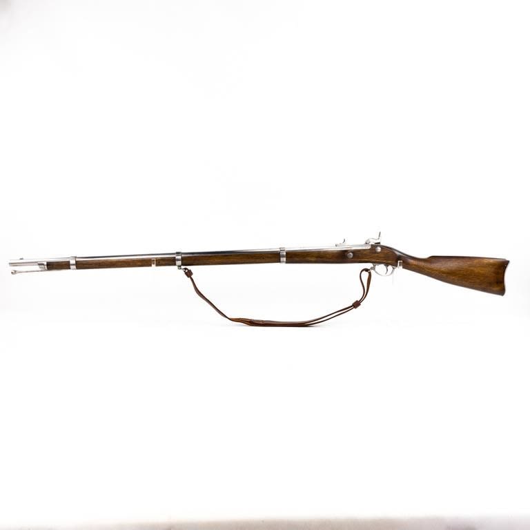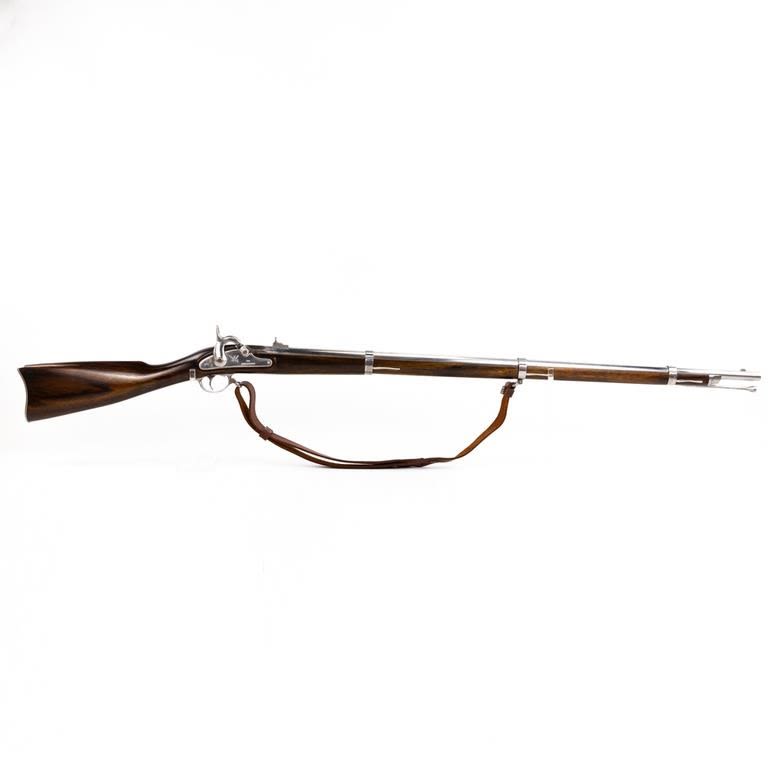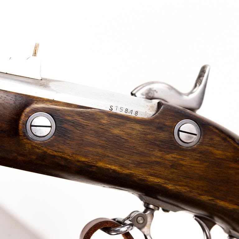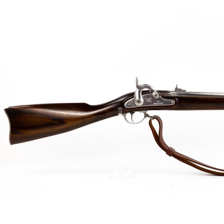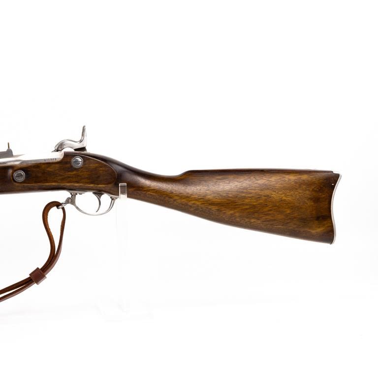 Armi Sport ( US Springfield 1861) .58 Percussion 39″ Rifle in very good condition with a few stains in the finish (See photos) The wood is excellent. The action seems fully functional and the bore is good. Comes with leather sling. C&R Eligible S/N:S15818