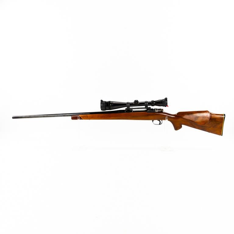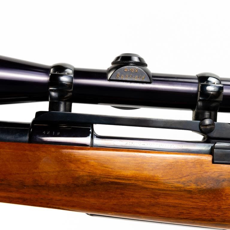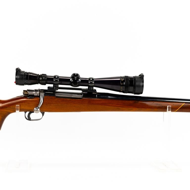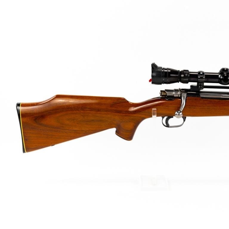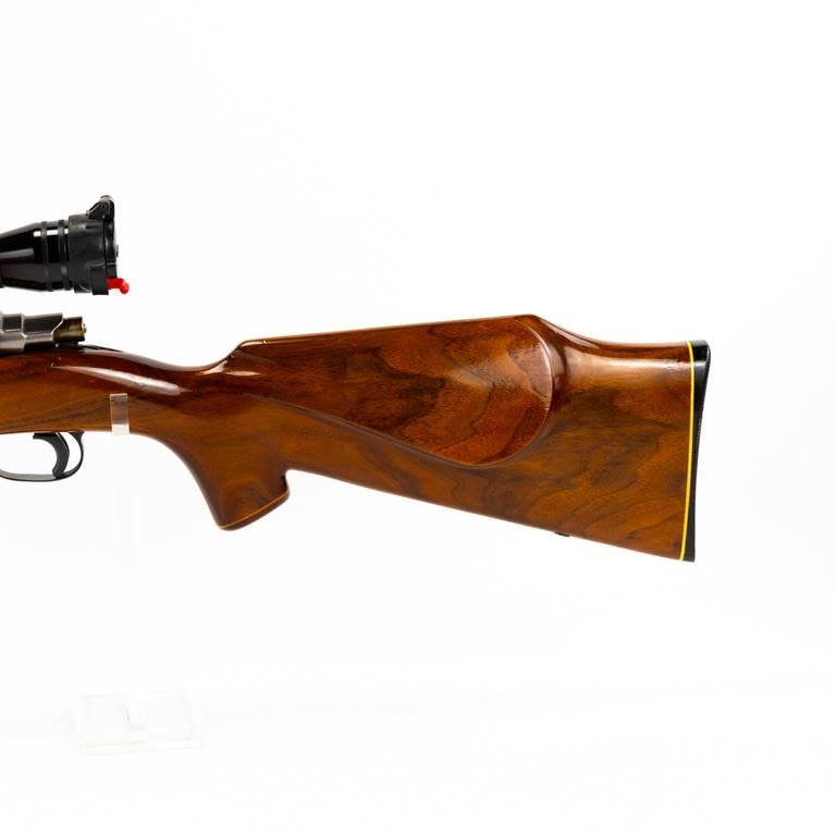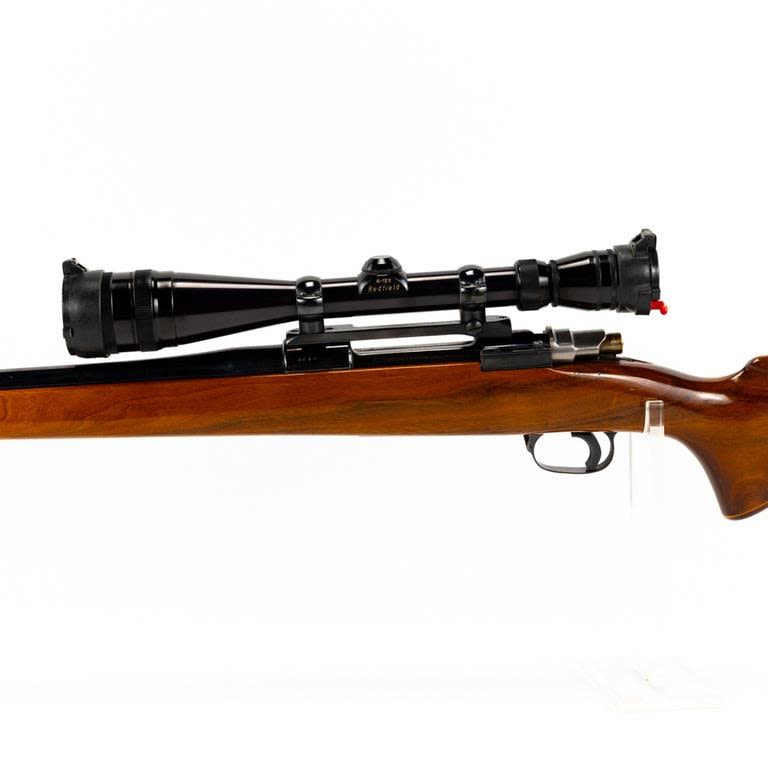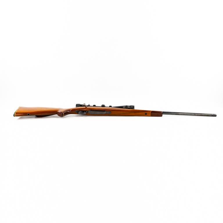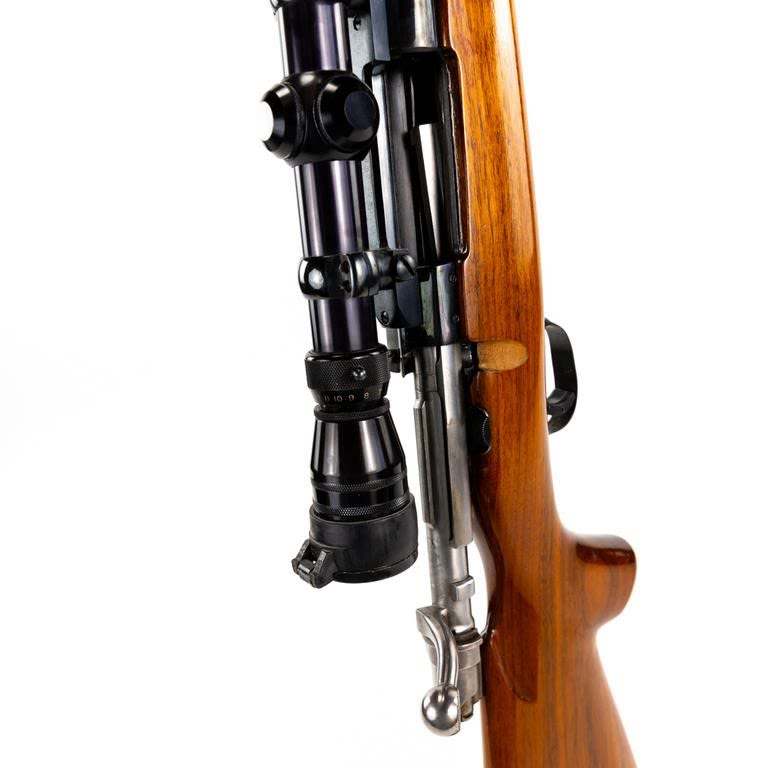 Sporterized FN Mauser 6mm Rifle in excellent condition with minor wear. Monte Carlo stock (beautiful wood) with rosewood caps. Redfield 4-12x44AO scope