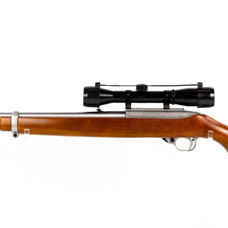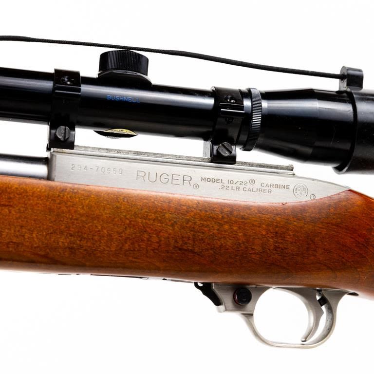 Ruger 10/22 22lr Rifle in very good condition with some wear and scratches on the stock. Comes with a Bushnell 4×32 scope. 5x magazines S/N:234-70950