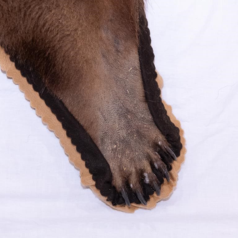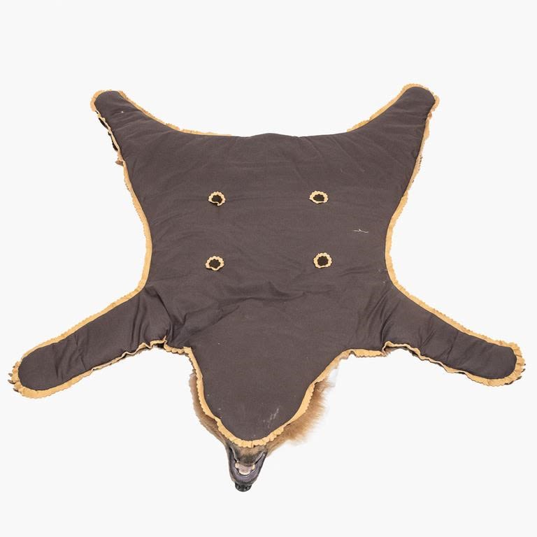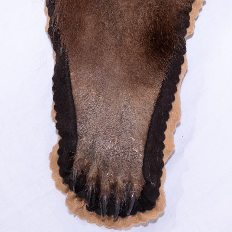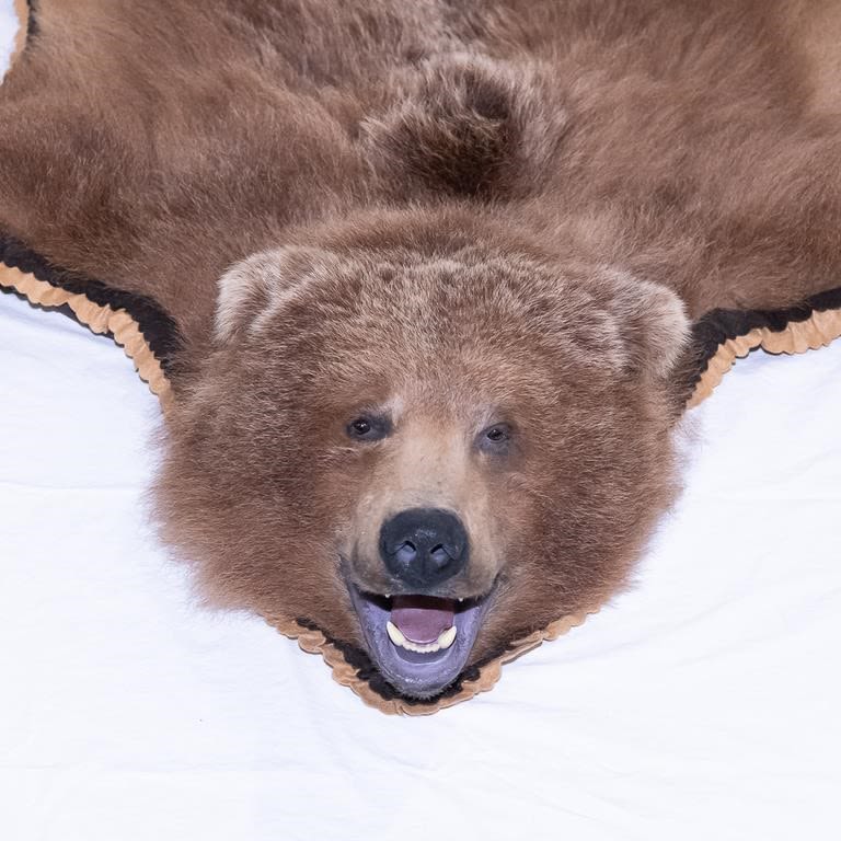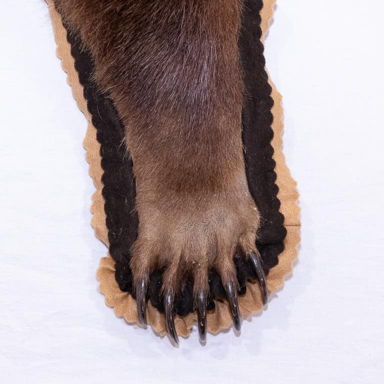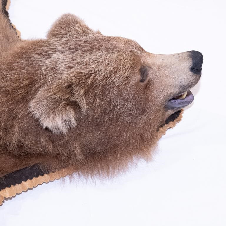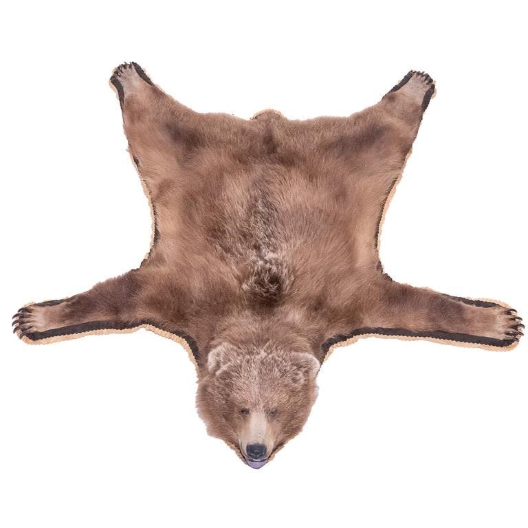 Beautiful full Kodiak bear rug in excellent condition with full claws and open mouth. Trophy taken on Kodiak Island by bow. Padding and lining excellent. Heavy coat with no shedding. Measures 65″ nose to tail, 81″ nose to rear claws, and 75″ wide front claw to front claw.