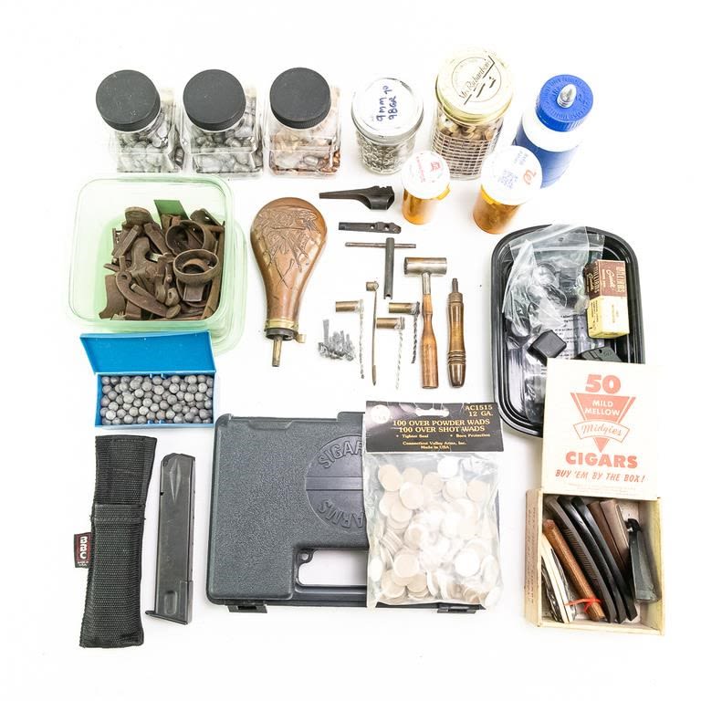 Reloading PROJECTILES: 160x .454 235gr, 55x .357 132gr, 48x .445 245gr, 70x 9mm 98gr, 36x 58cal 455gr conical, 40x 50cal 175gr Round ball, 185x 36cal 68gr round ball