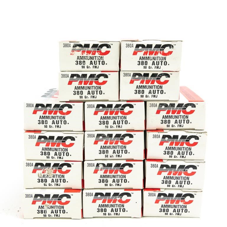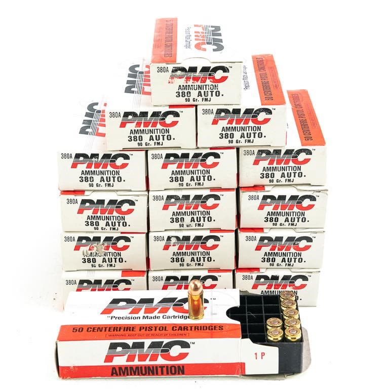 750rds PMC .380acp 90gr FMJ Ammunition IN COMPLIANCE WITH ILLINOIS LAW, ALL AMMUNITION, PRIMERS AND GUNPOWDER SALES TO ILLINOIS RESIDENTS MUST BE ACCOMPANIED WITH A VALID FOID CARD FROM THE ACTUAL PURCHASER AND MUST WAIT FOR AN ELECTRONIC VERIFICATION BY THE STATE BEFORE TAKING HOME.