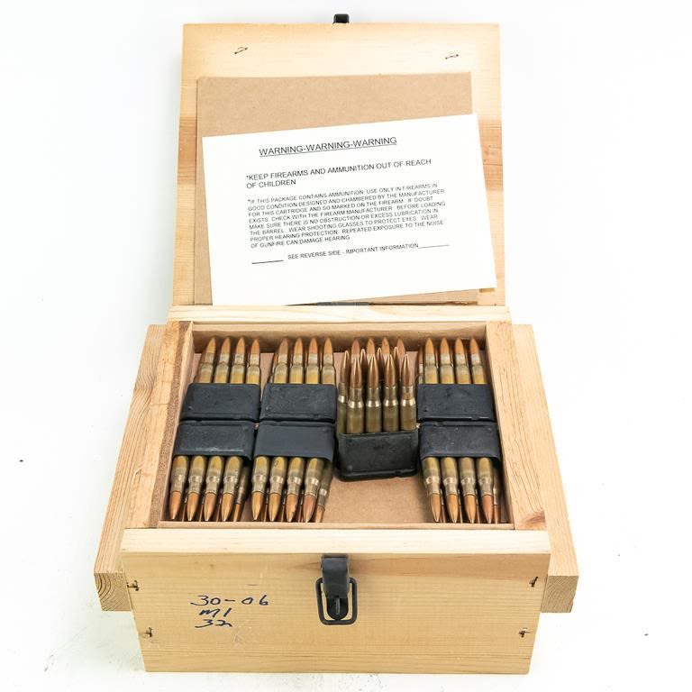256rds Miltech Garand 30-06 M2 Ammo in Enblocs in a wooden Crate IN COMPLIANCE WITH ILLINOIS LAW, ALL AMMUNITION, PRIMERS AND GUNPOWDER SALES TO ILLINOIS RESIDENTS MUST BE ACCOMPANIED WITH A VALID FOID CARD FROM THE ACTUAL PURCHASER AND MUST WAIT FOR AN ELECTRONIC VERIFICATION BY THE STATE BEFORE TAKING HOME.