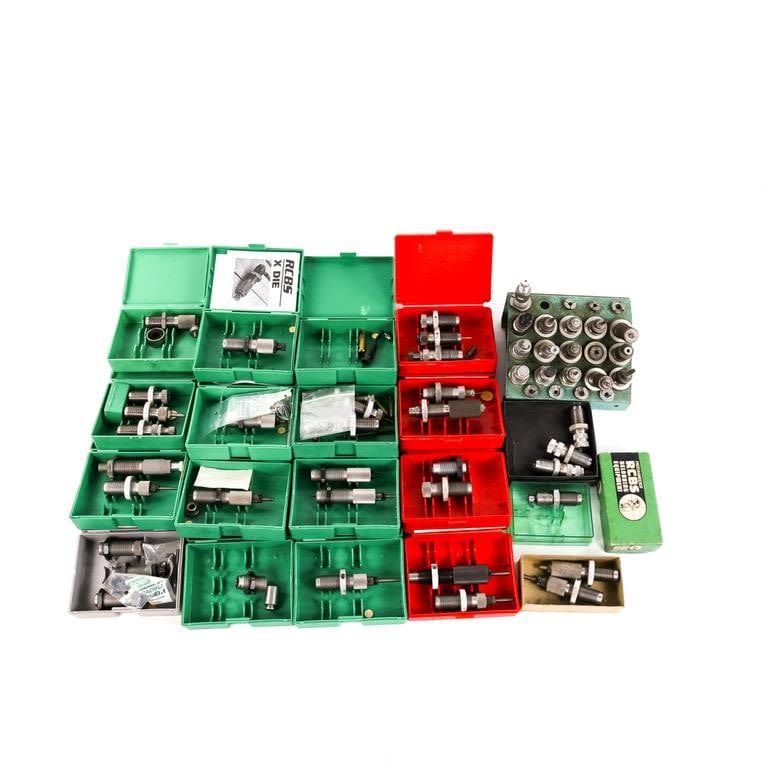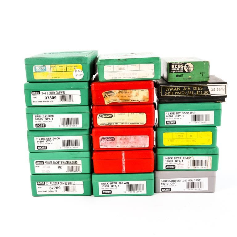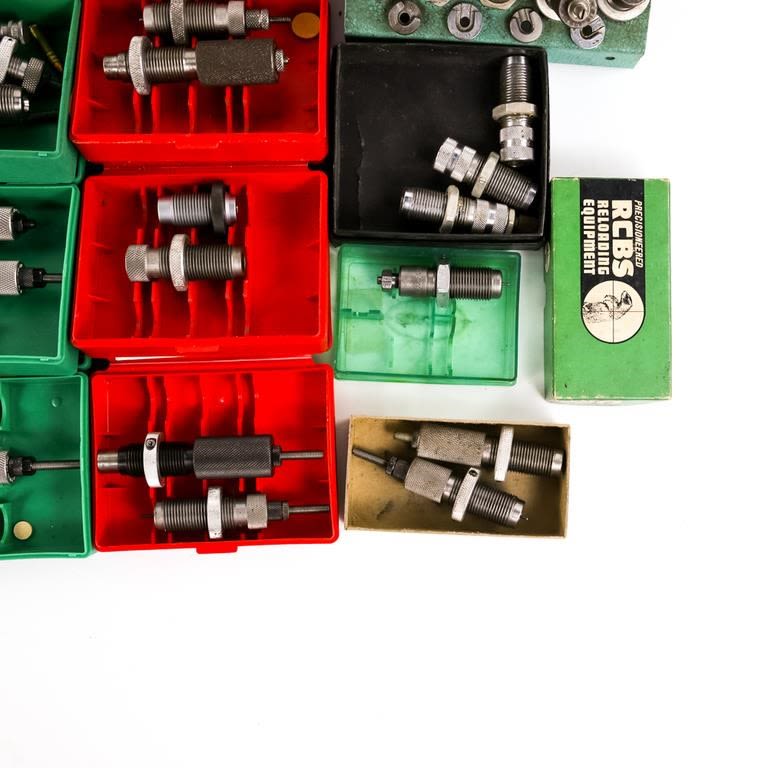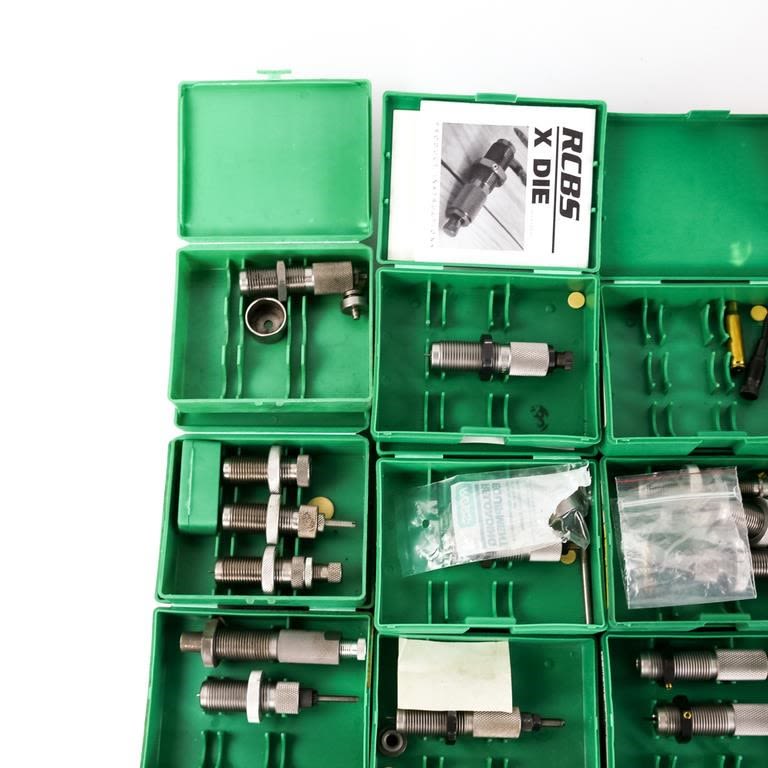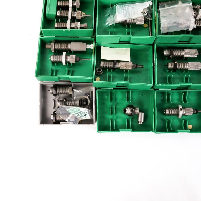 RCBS: trim .222, neck sizer 22-250, 30carbine, 30-30, SPDY Swager lg, primer pocket swager, x-f lsizer 308, x-f l sizer 30-06, 30-06, 8×57, 22-250, 38spl swc, neck sizer 308, 357mag/38spl carb set