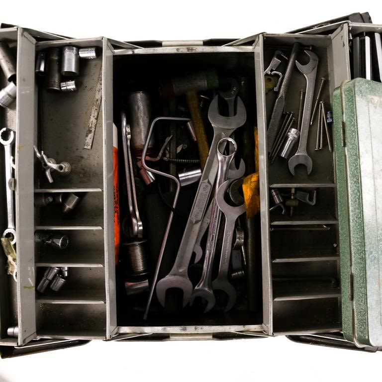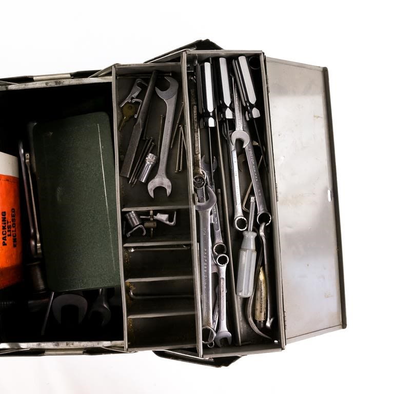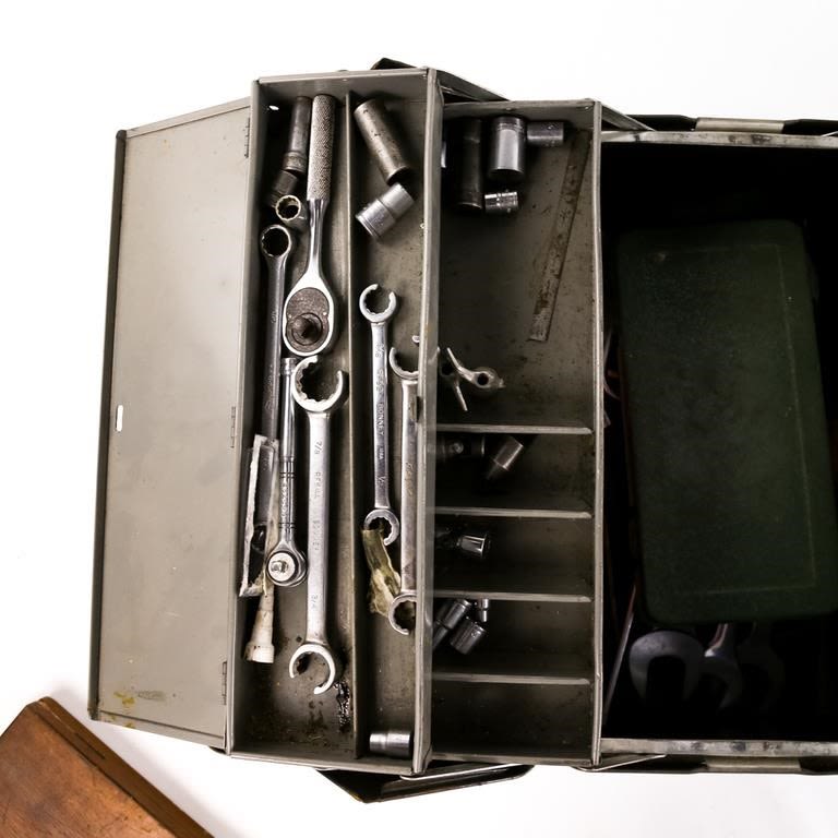 Steel Tool Box Filled with Tools: Several Wrenches,...