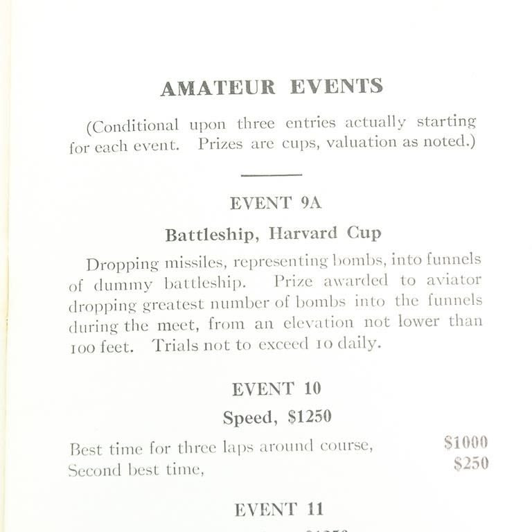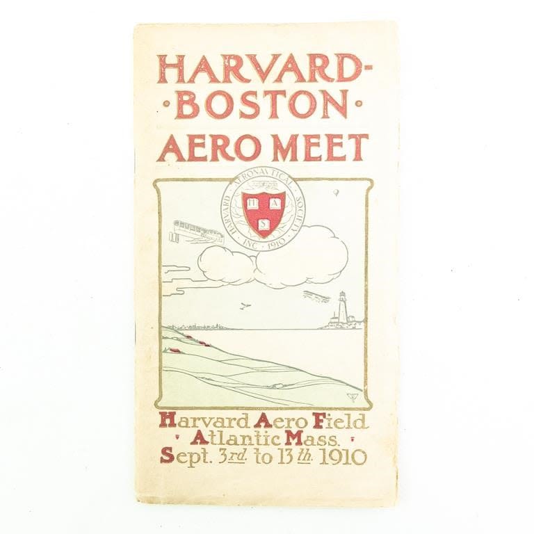 Scarce 1910 Harvard Boston Aero Meet Official 48 page Program. Good to very good overall condition with some wear along the edges and light patina. Please use photos to judge condition and bid accordingly.