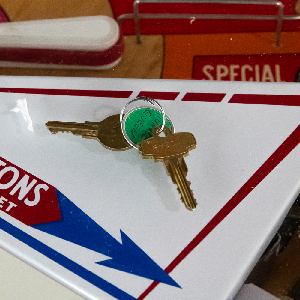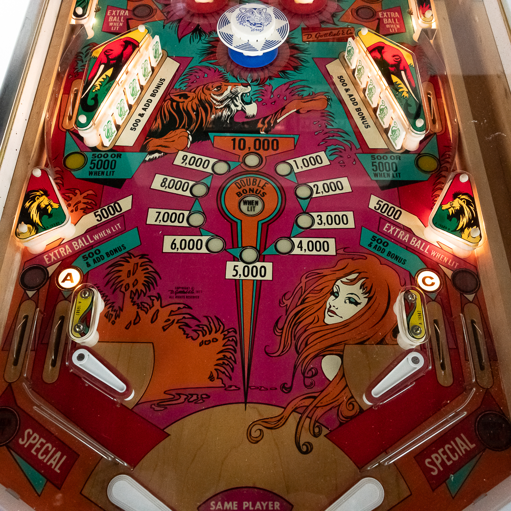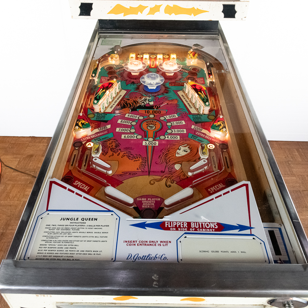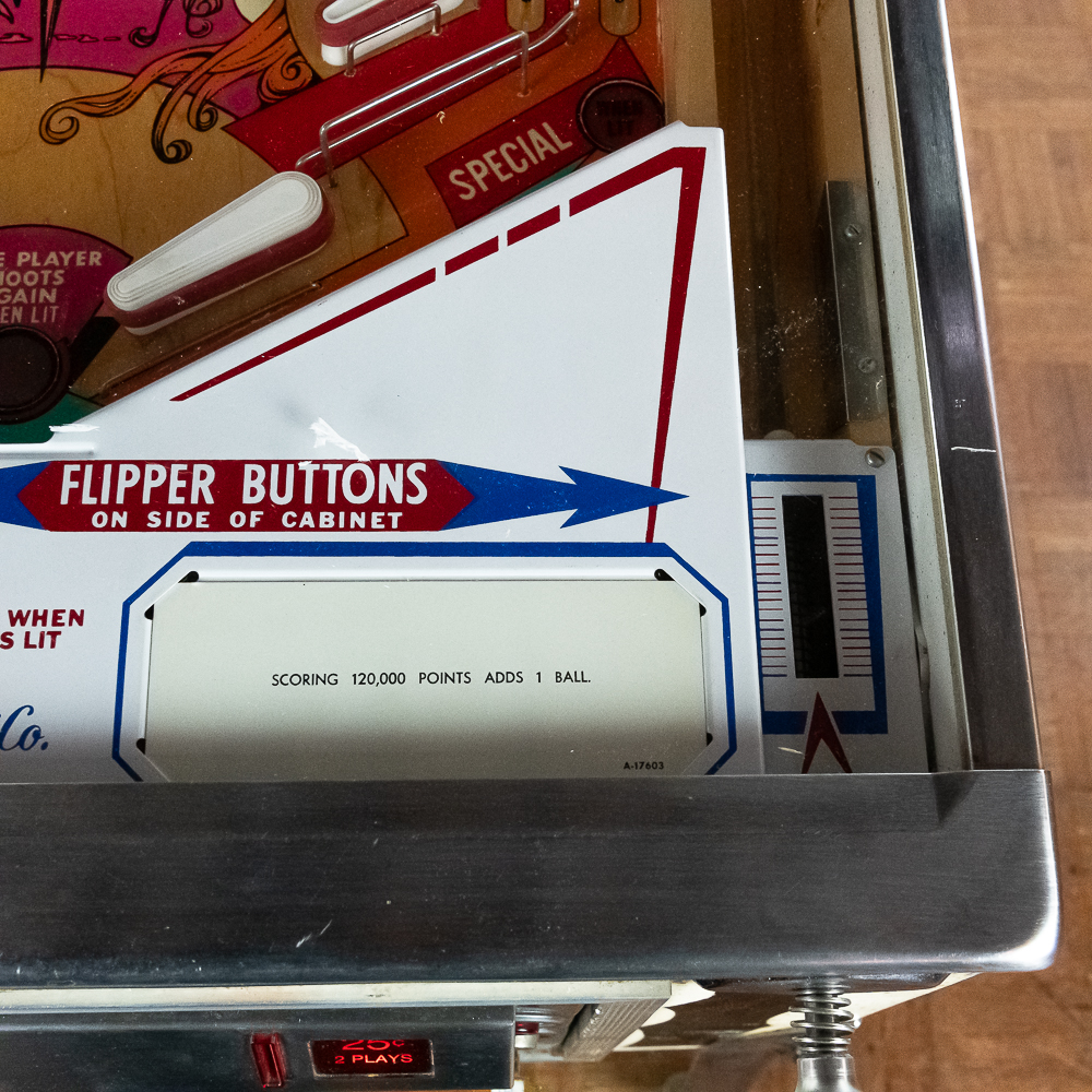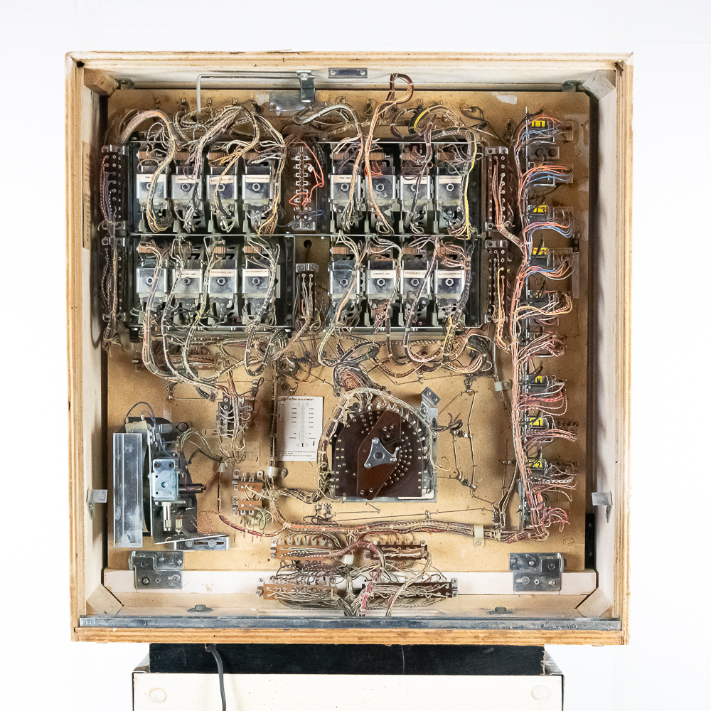 4 player electro mechanical machine in overall VG condition. VG back glass, VG playfield, cabinet condition 9/10. Coin mechs intact, original locks and keys. Powers up, plays, and scores well.