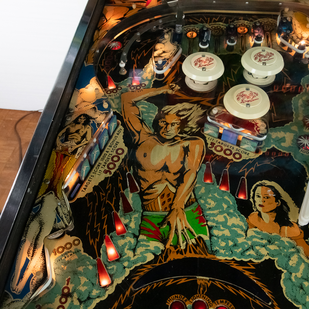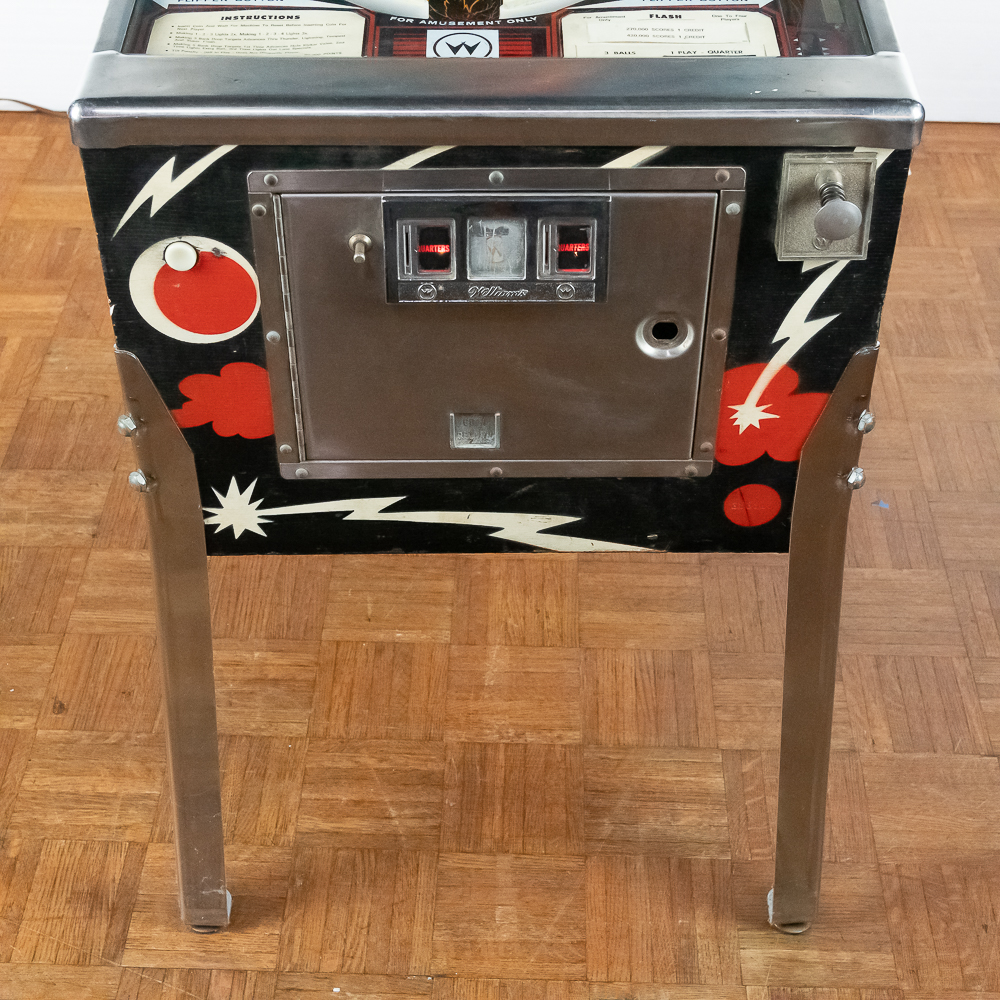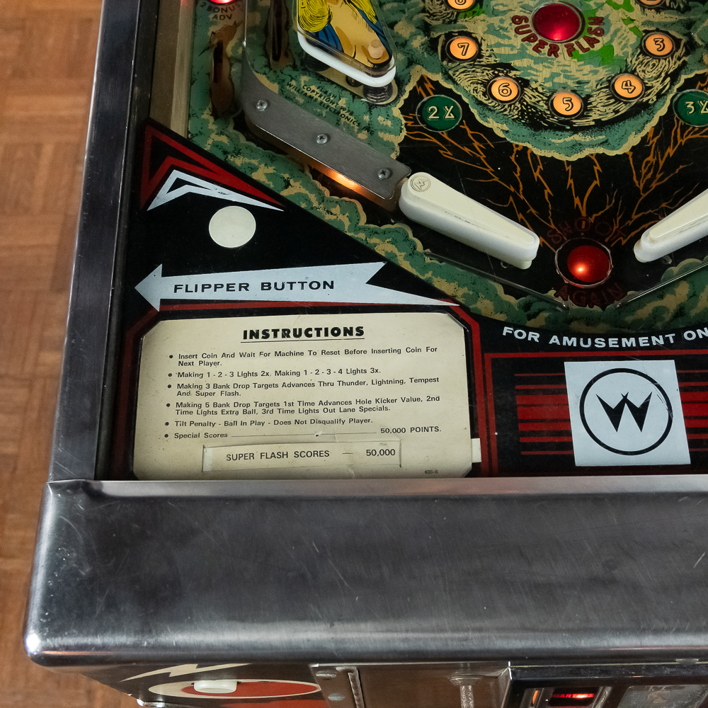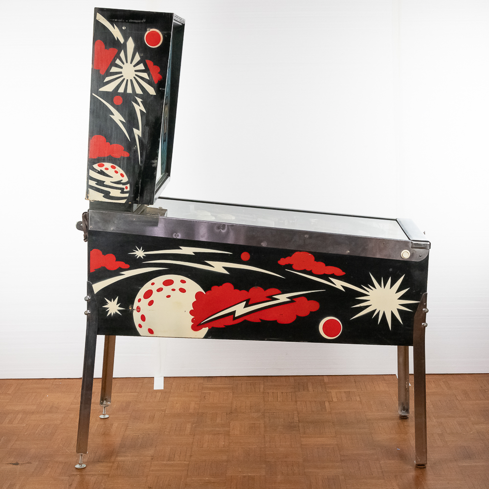 Designed by Steve Ritchie after leaving Atari for Williams in 1979. With 19,505 units built it’s the most successful machine made by Williams and the 3rd most successful Flipper-Game of all time. 4 player with digital scoring. In overall VG condition with good back glass, playfield, and cabinet graphics. The coin mech is intact and currently on free play. There is no lock on the door. Lock & key for head present. Plays and scores well. Measures 52″ long, 30.5″ wide, 70″ tall.