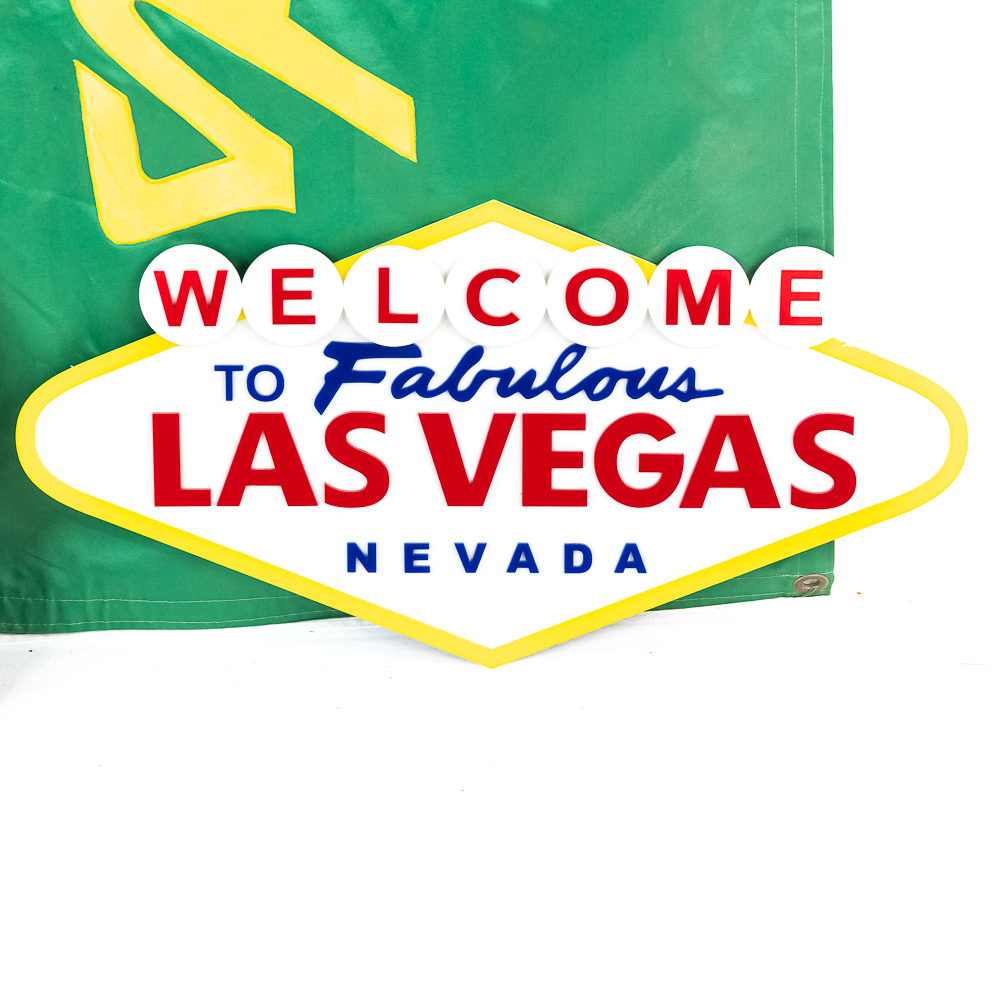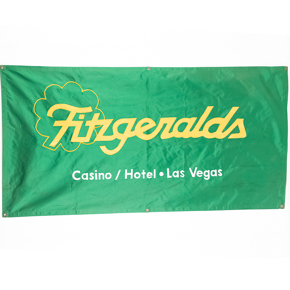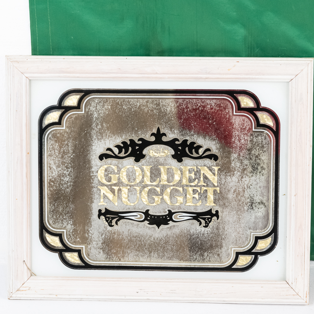 Collection includes Welcome to Las Vegas wall sign (12″t x 24″L), Vintage Golden Nugget framed mirror (13″T x 16″l) & Fitzgerald’s Casino in Las Vegas canvas banner (6′ x3′). Each in good overall physical condition with minor wear indicative of age and use. Perfect addition to your collection, please use photos to judge condition and bid accordingly.