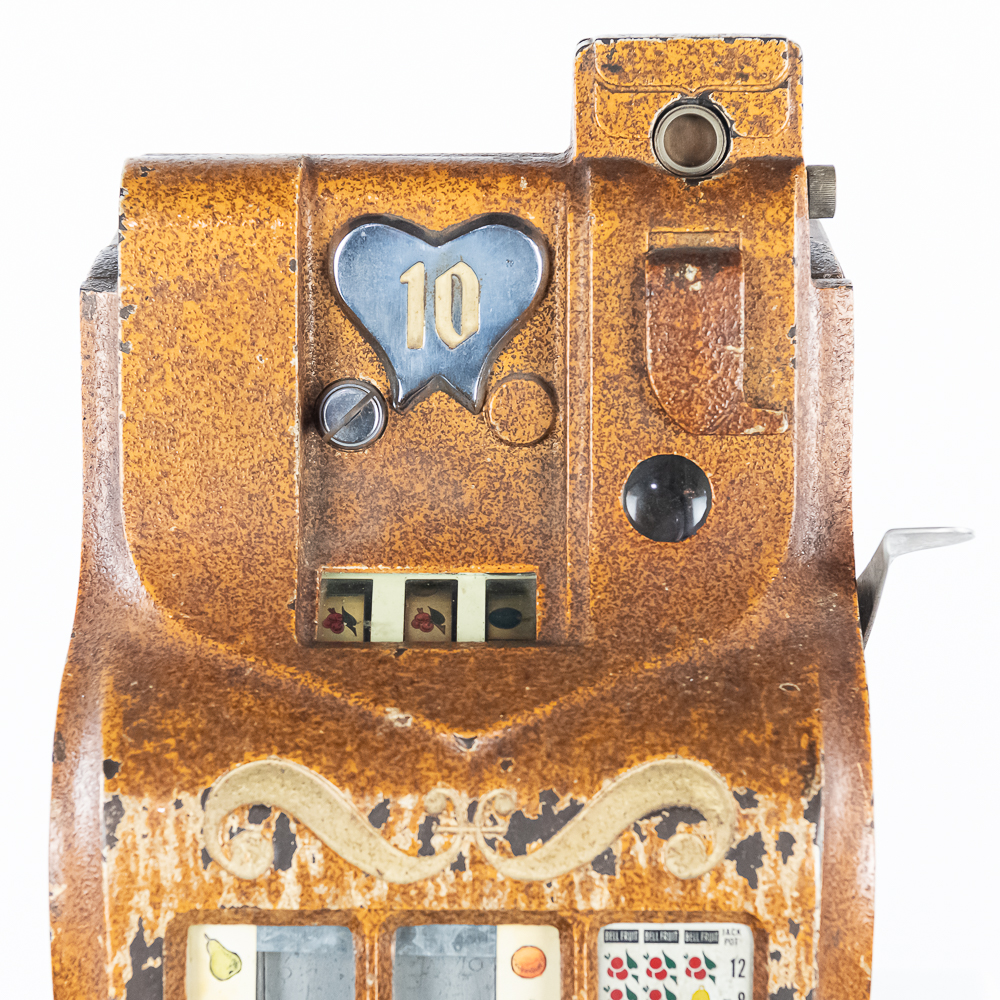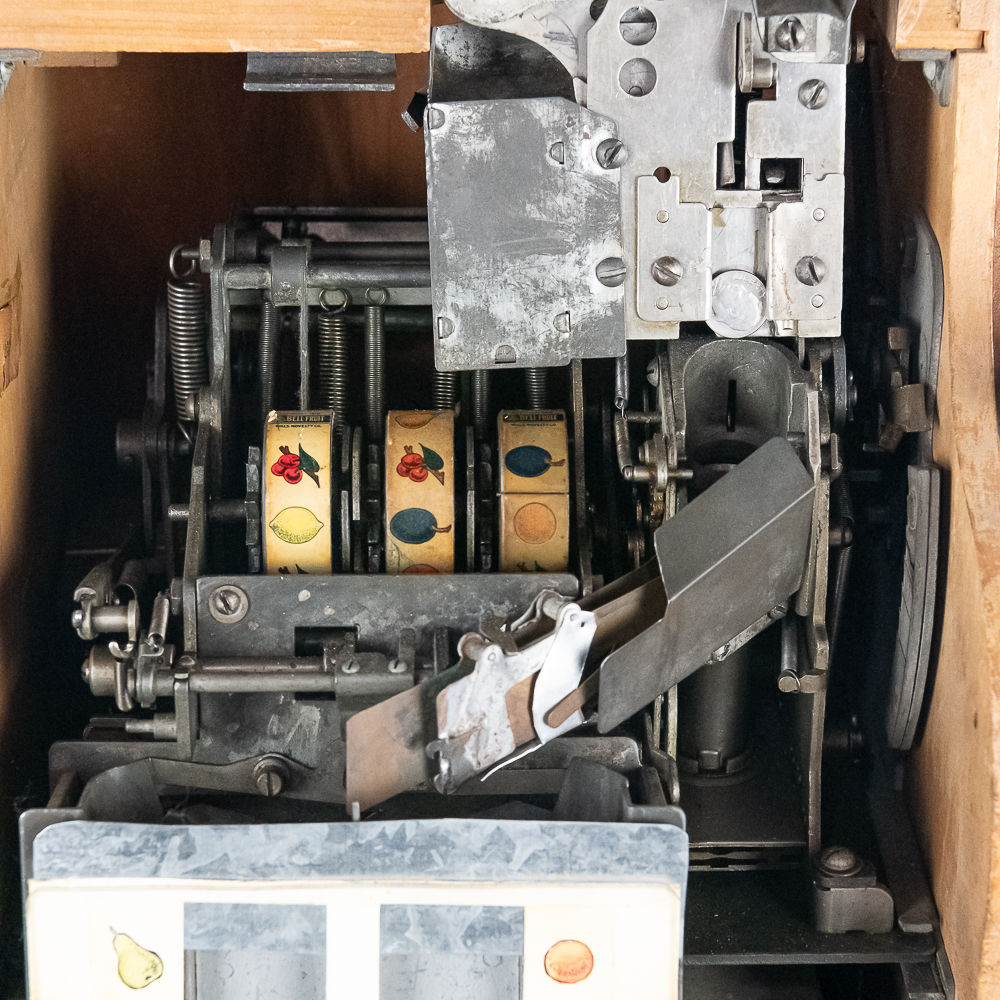 *NO SHIPPING – PICKUP OR THIRD PARTY TRANSPORT ONLY*All original Mills QT Sweetheart 5 cent slot in good condition. Accepts coins plays strong, pays out. Original lock and key.