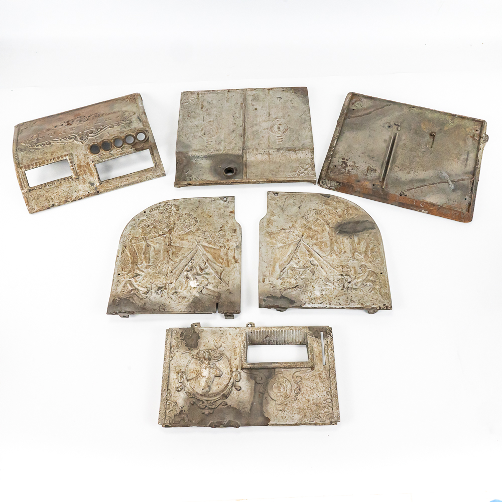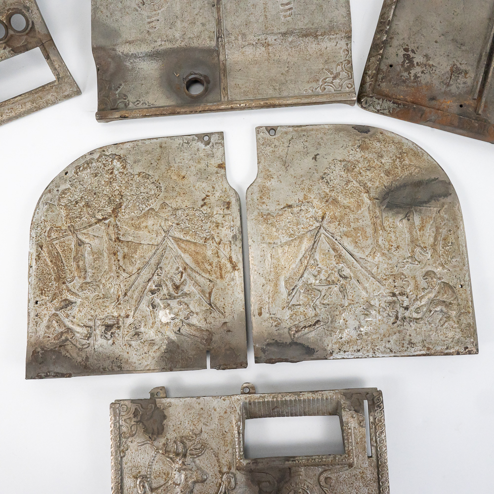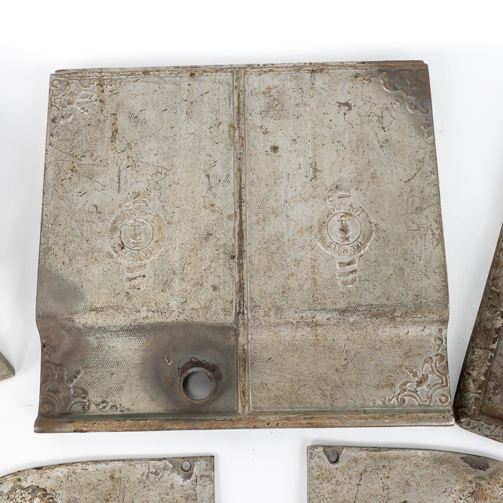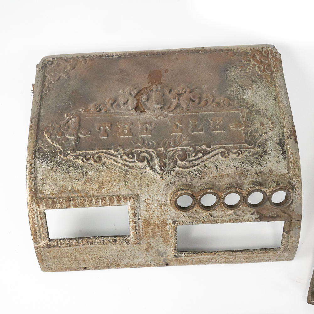 Original cast iron case parts for the Elk trade stimulator made by Mills Novelty in 1905. Included is the base, back, 2 sides, front, and top. here is no mechanism for this machine. There are some repairs to the castings (see photos) but if you need any or all of these pieces you will probably never find another empty case.