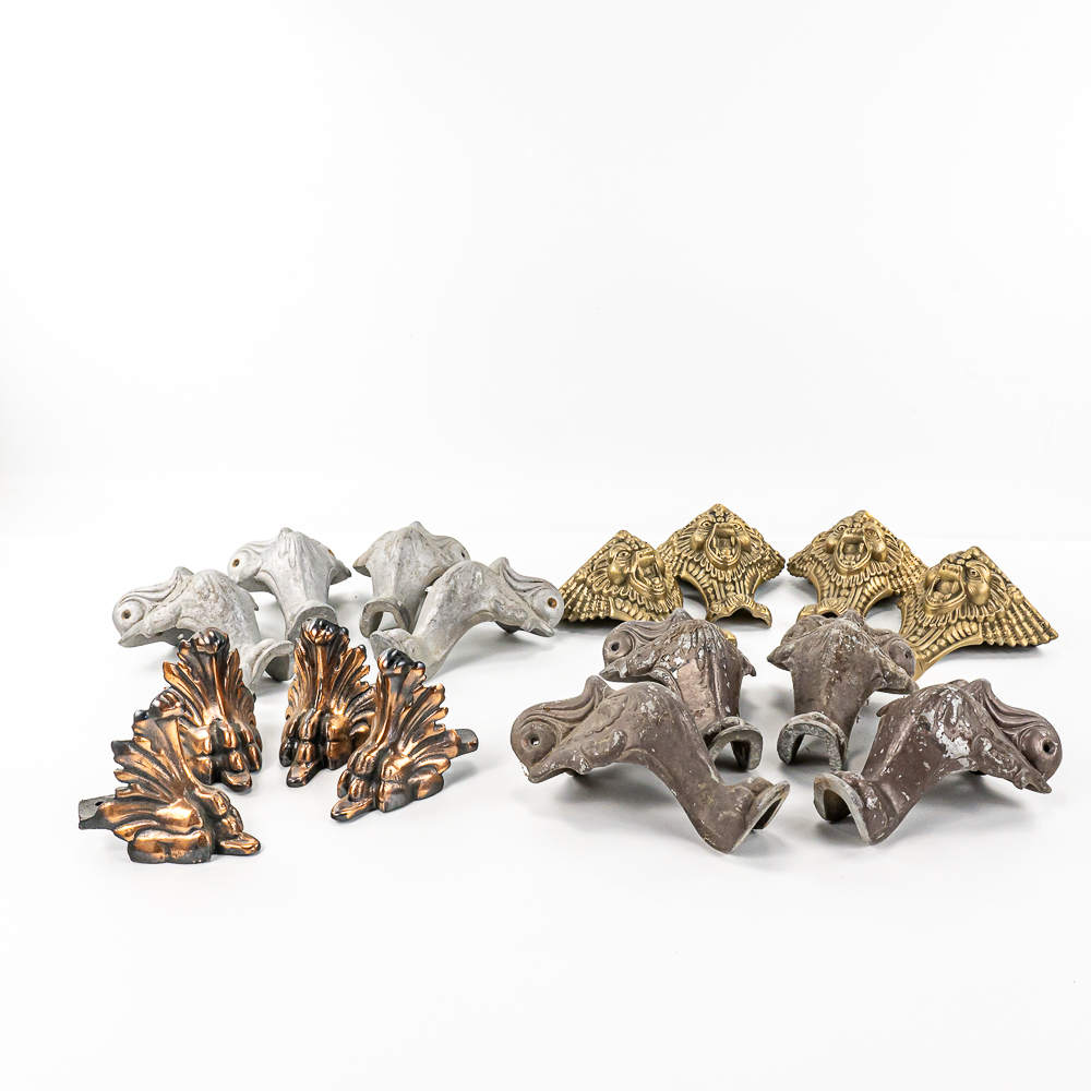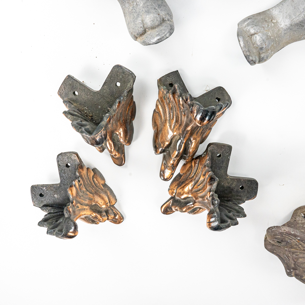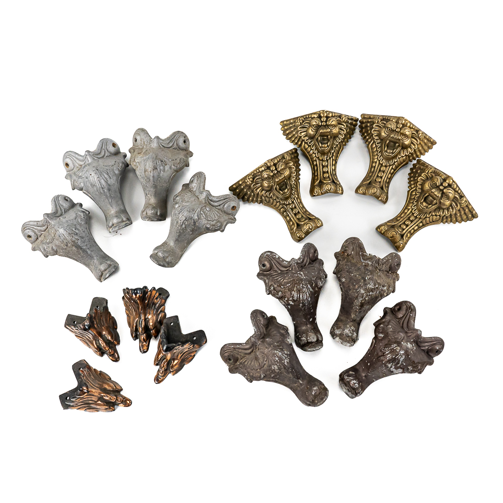 Four different sets of 4 legs each. Can be used on coin machines, stands, showcases, etc. See photos