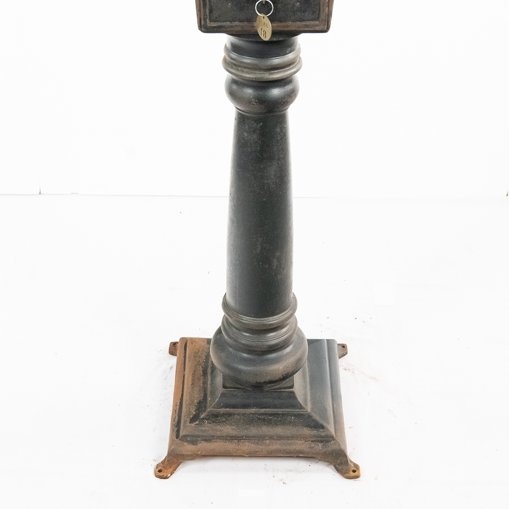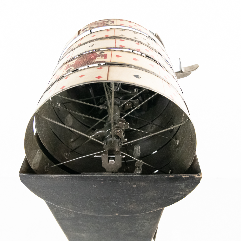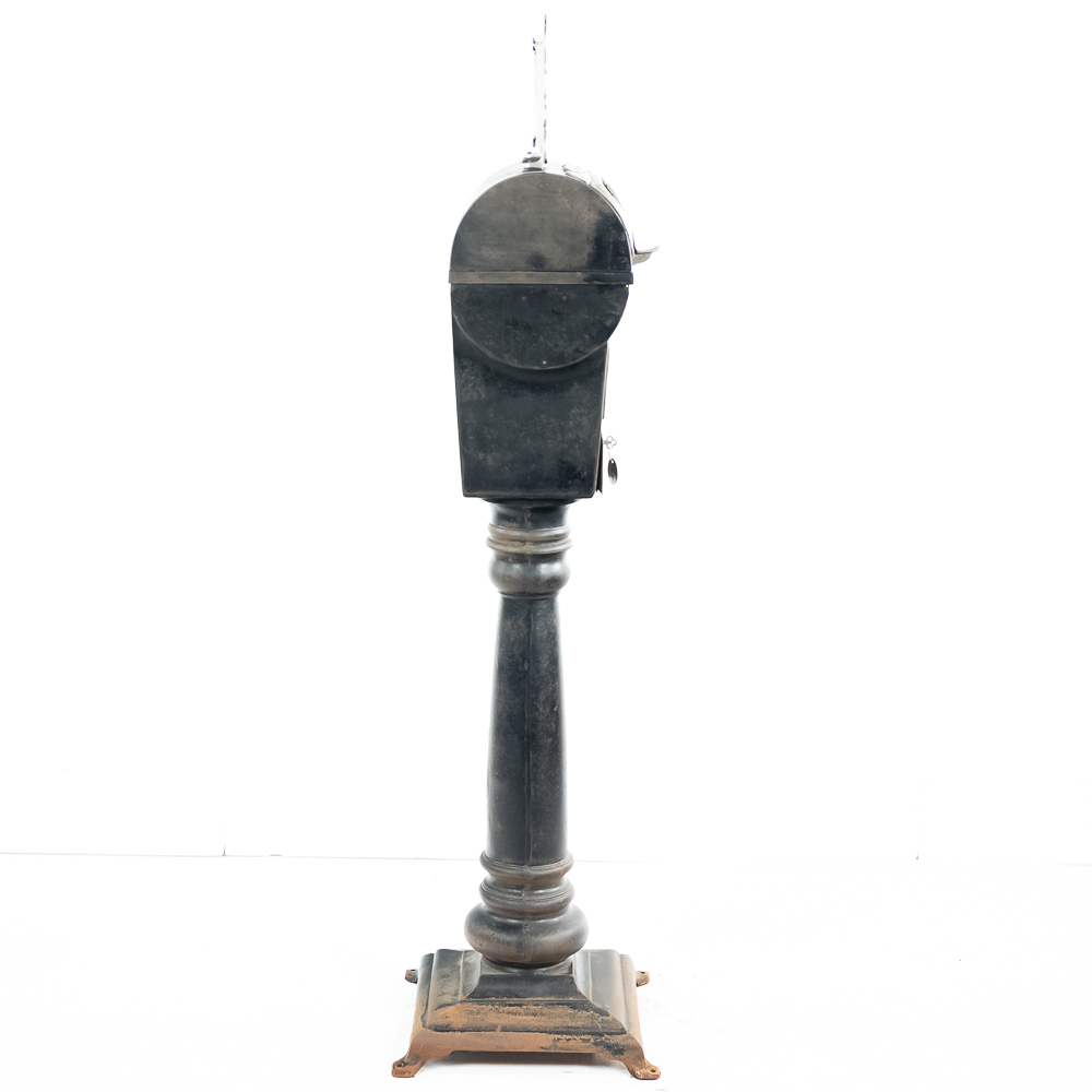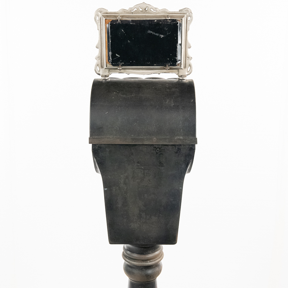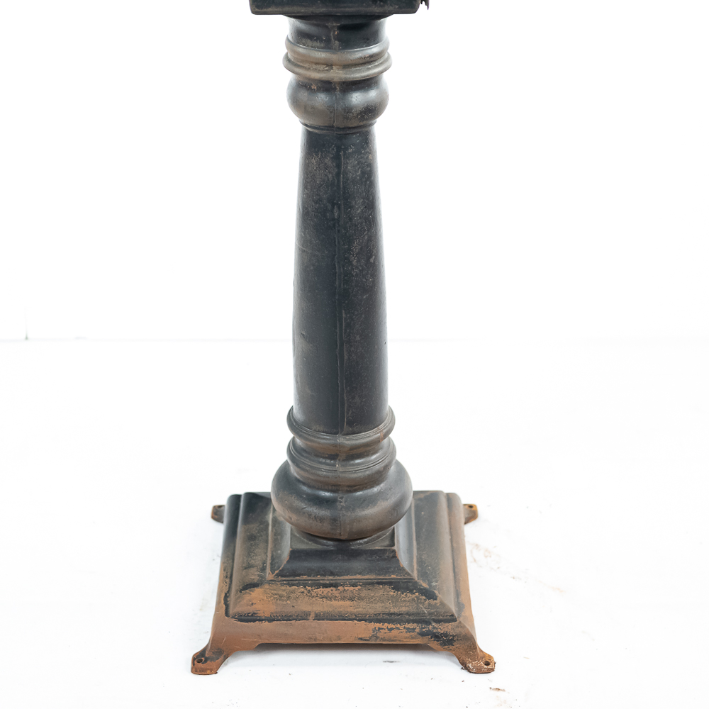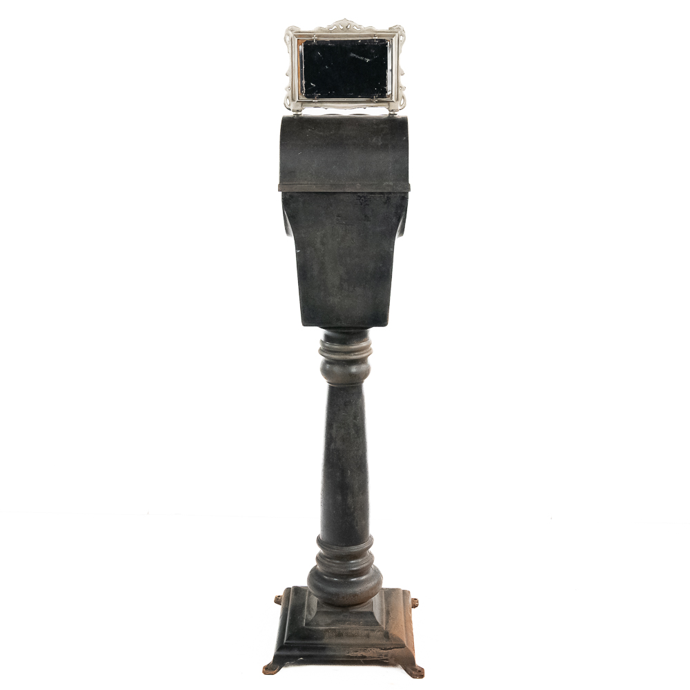 Looks to be all original “rare” Mills Sicking poker 5 reel trade stimulator on a shapely cast iron pedestal. Has coin door with lock and key, marquee and card. Works well, condition good, is missing some original finish. See photos.
