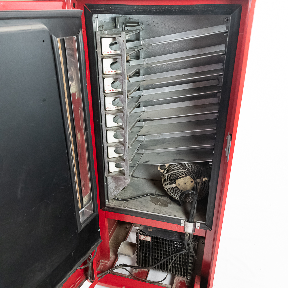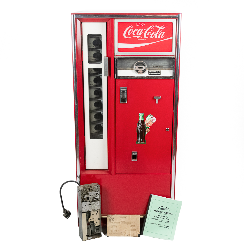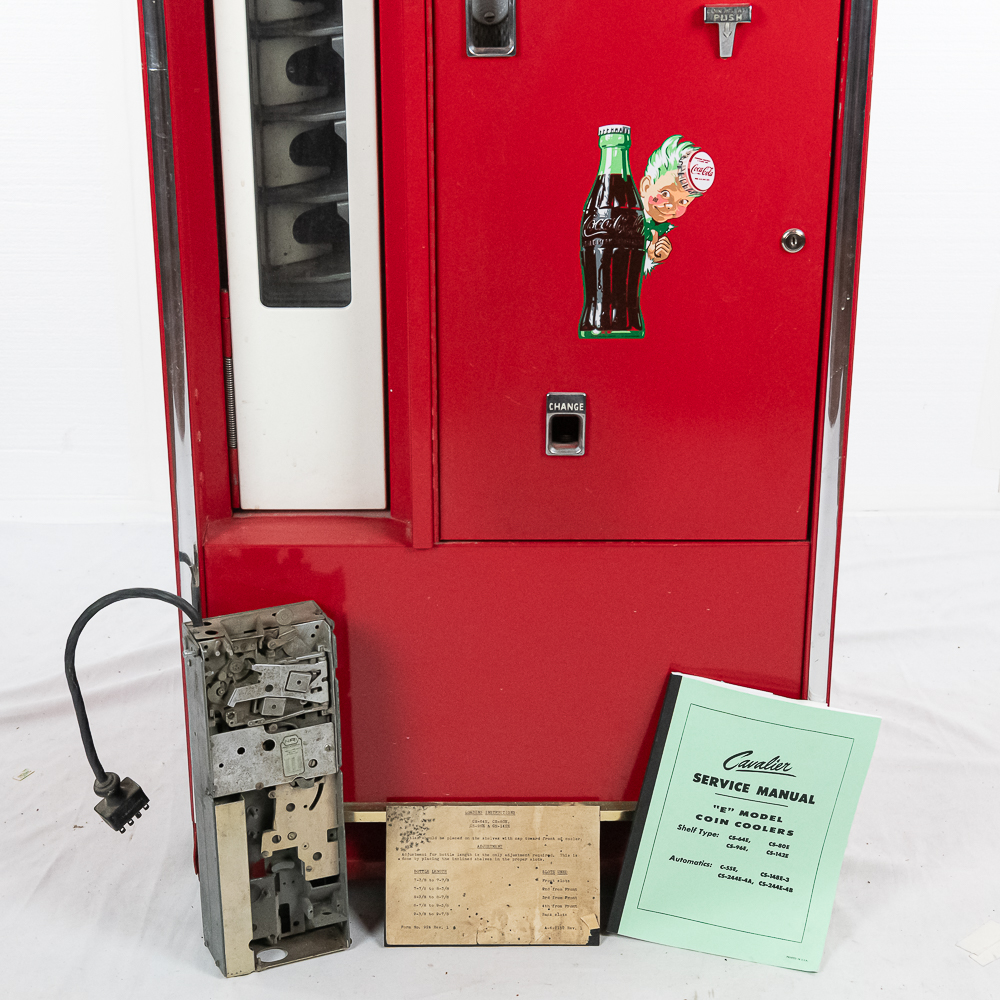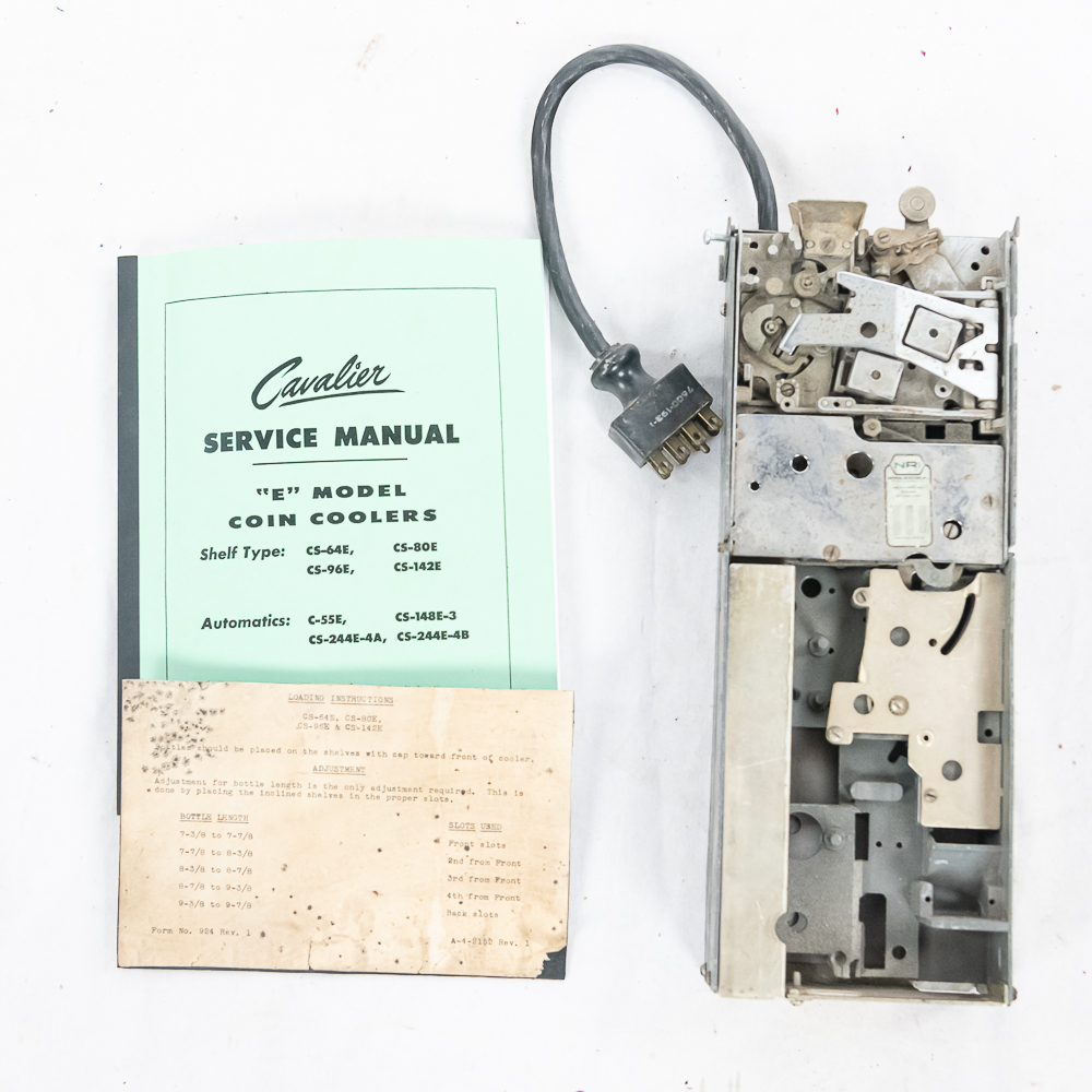 A very nice circa 1964 all original machine both inside and out. No rust on the inside mech or rack and the coin mech is intact. Compressor runs and cools when plugged in. Outside in VG+ original condition with original paint and graphics. No dents or big scratches, a few small minor paint chips on the edges and corners. Comes with a Cavalier service manual and a spare coin mech. If you want a nice original machine, don’t miss this one. Measures 56″ tall, 25.5″wide, 21.5″ deep.