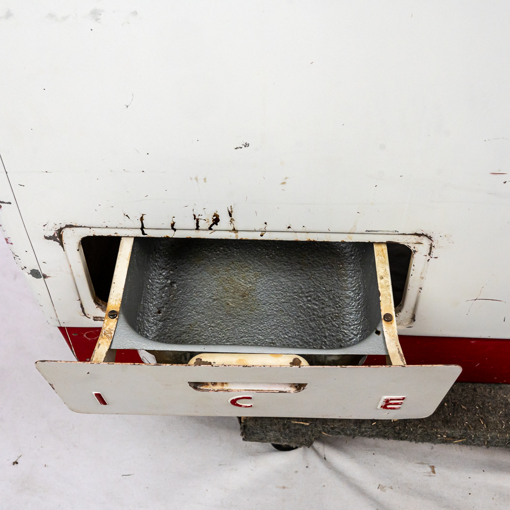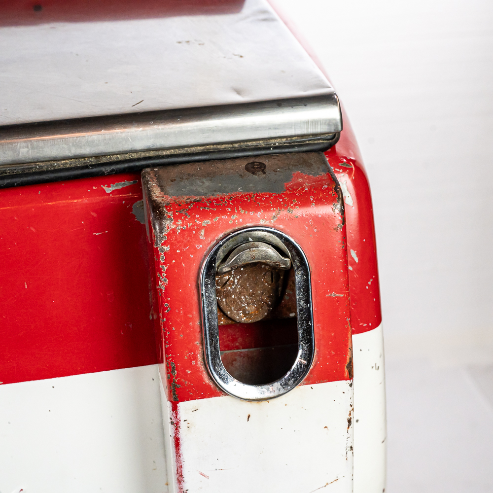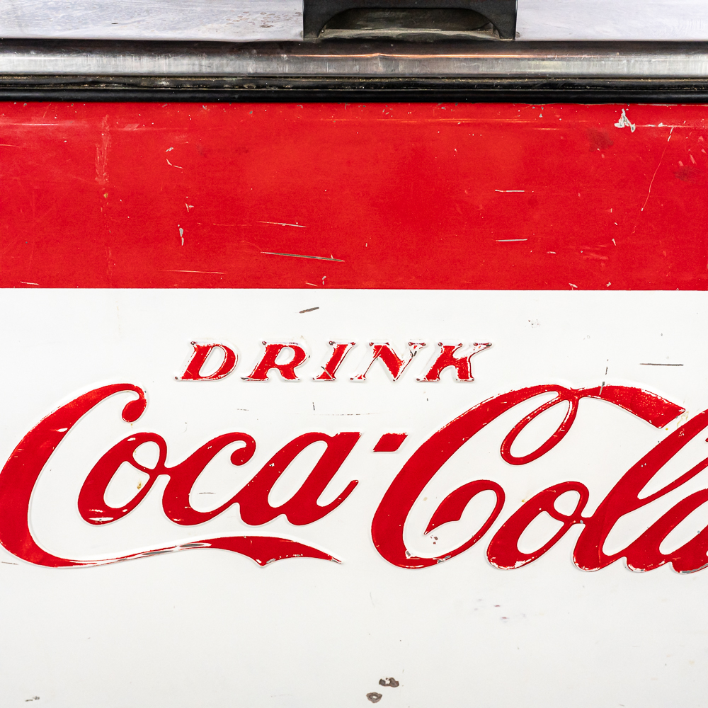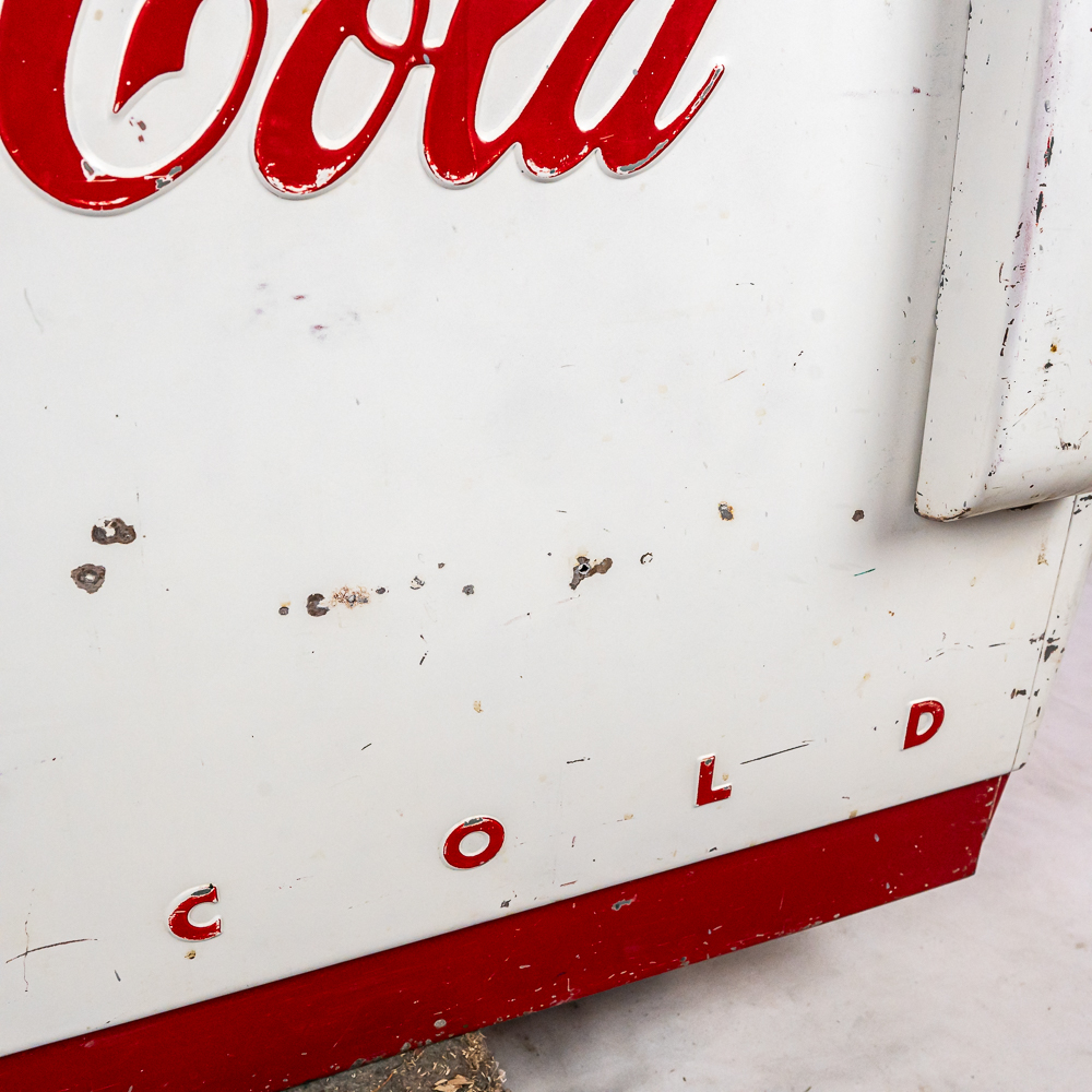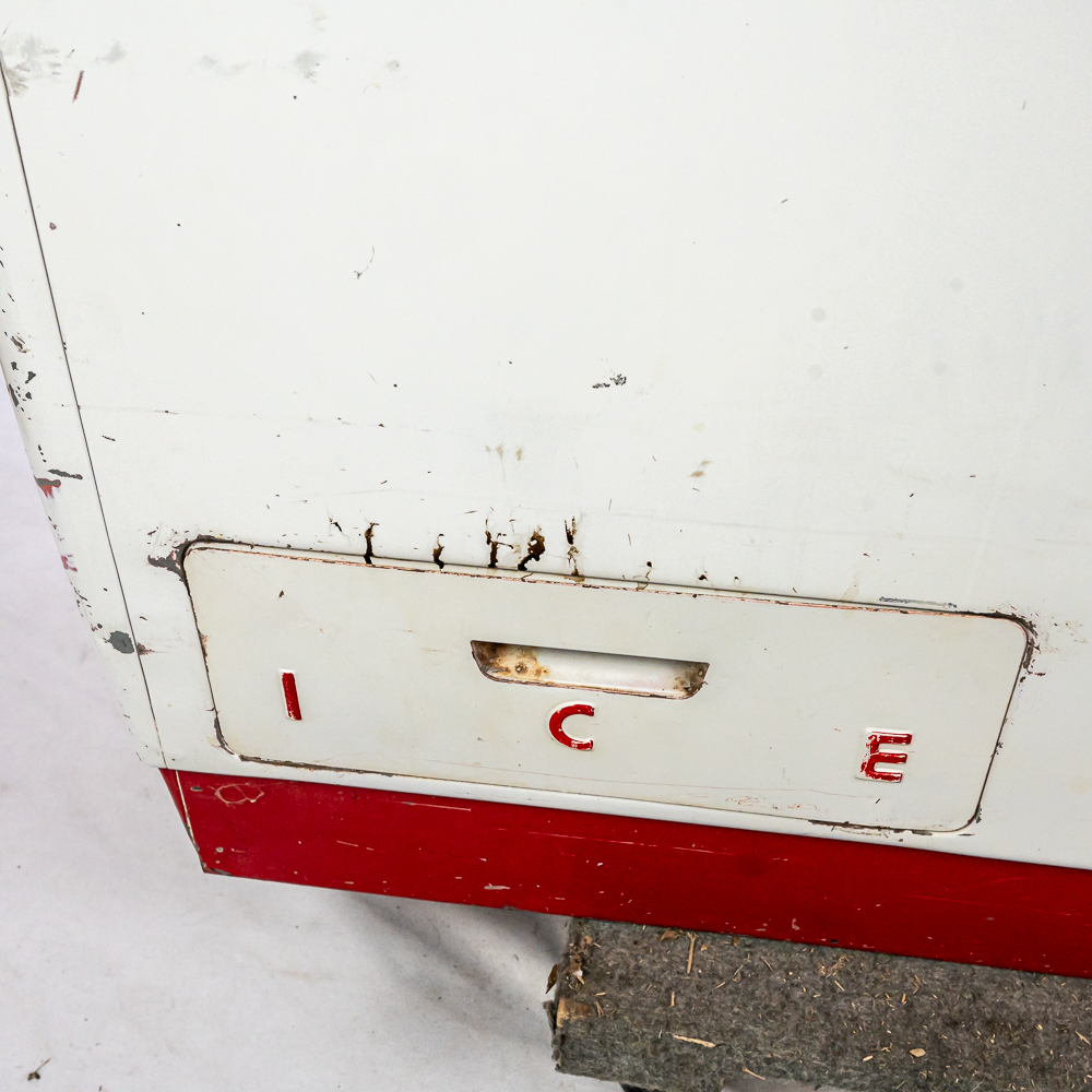 1960 Cavalier Coca-Cola Chest Model CMD-D cooler machine. Approximately 36″t x 28″w x 44″l and in good overall physical condition with some imperfections such as scratches, rub marks and discoloration / missing paint in some areas. A must have for any Coke a Cola enthusiast. Please use photos to judge condition and bid accordingly. The unit was plugged in and the fan and compressor runs and the chest cools.