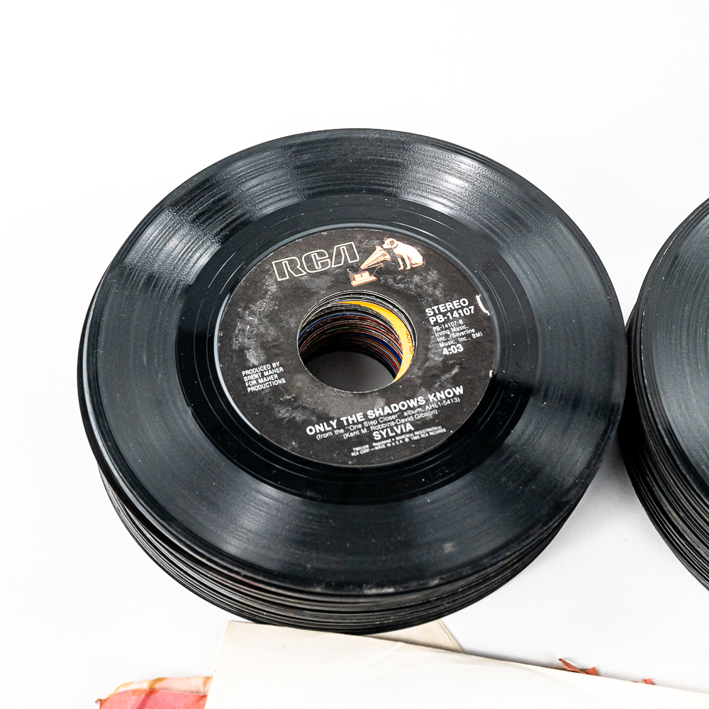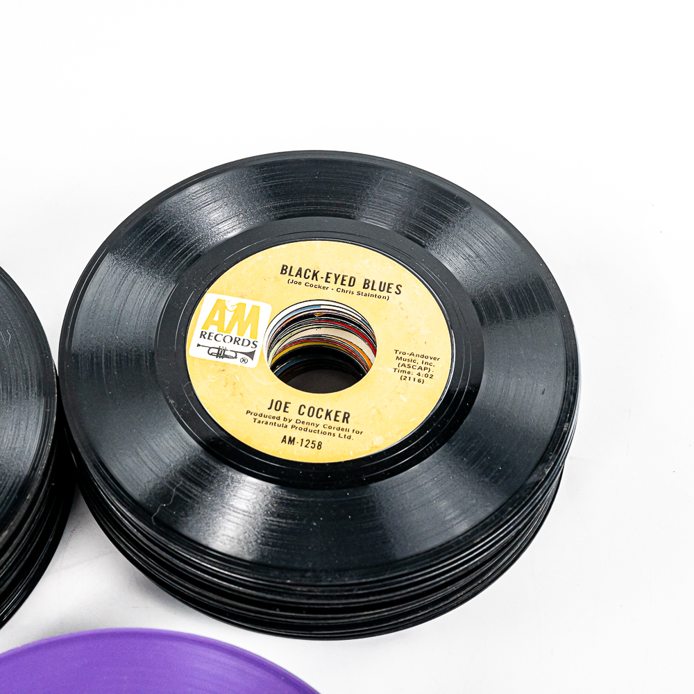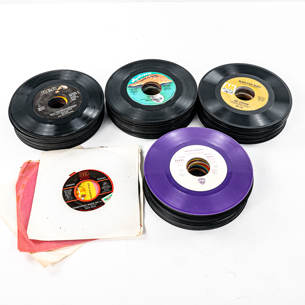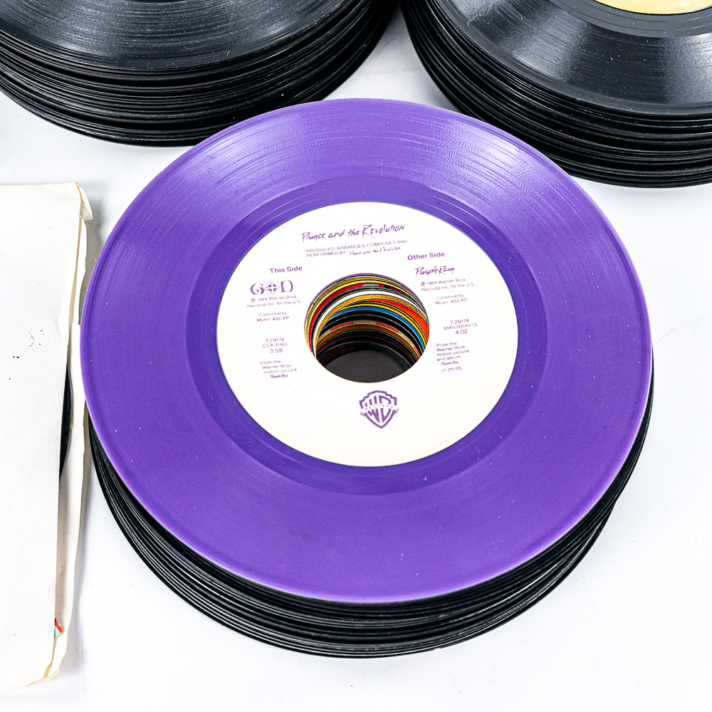 Collection of (100) assorted unpicked vintage 45 RPM records with titles such as Purple Rain by Prince, MAME Herb Alpert, Celebrate Three Dog Night, I Dont Want To Live Without You Foreigner, Allentown by Billy Joel and many others. Some possibly picked from a jukebox. Perfect addition to your collection, please use photos to judge condition and bid accordingly.
