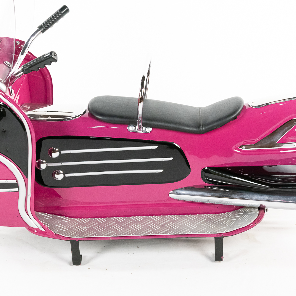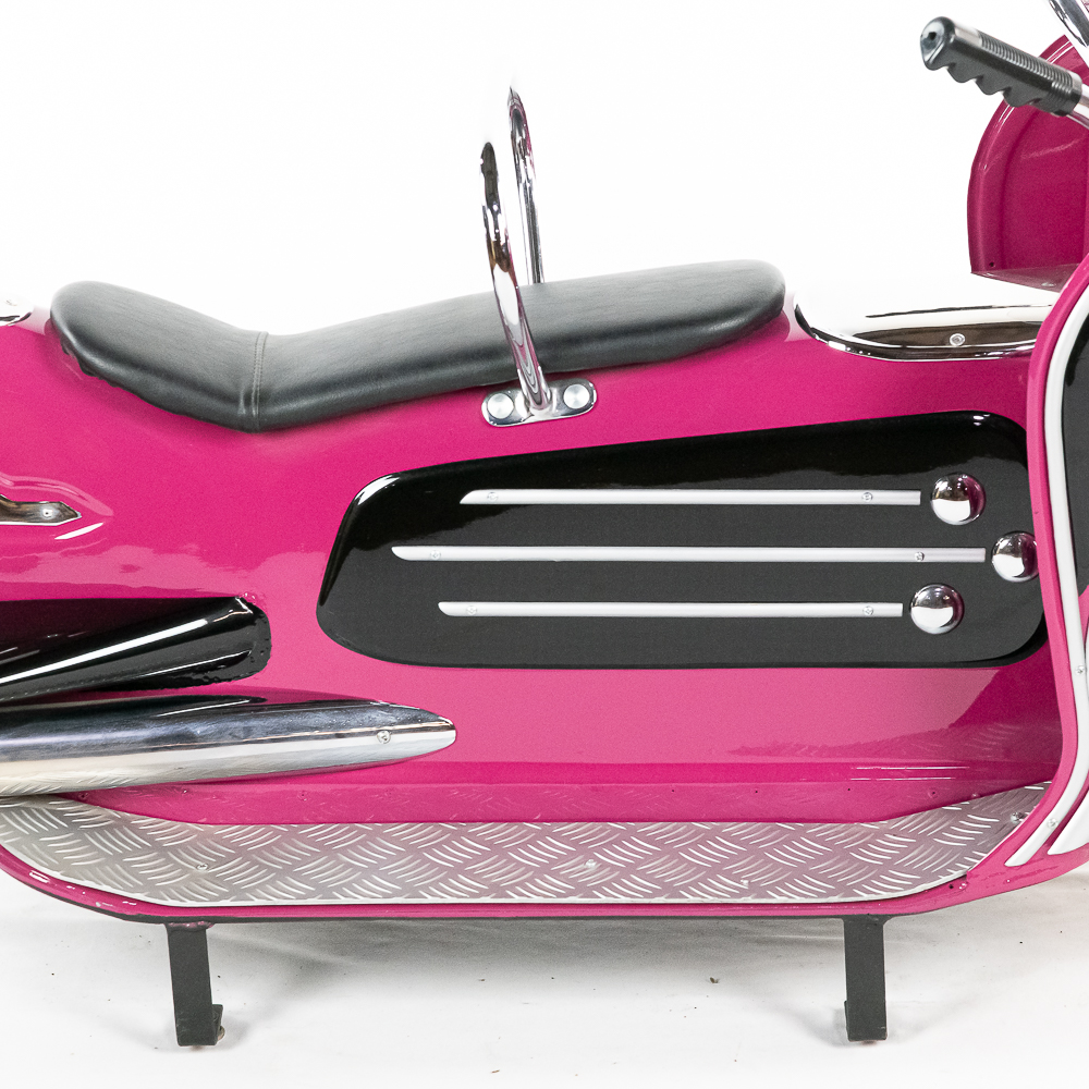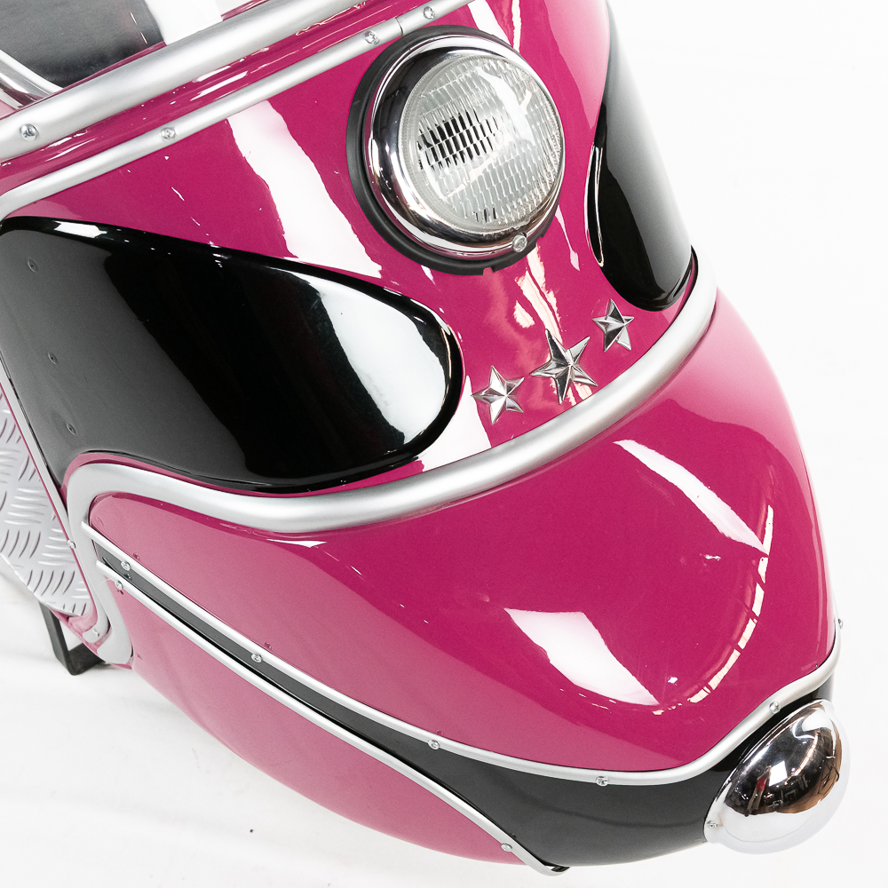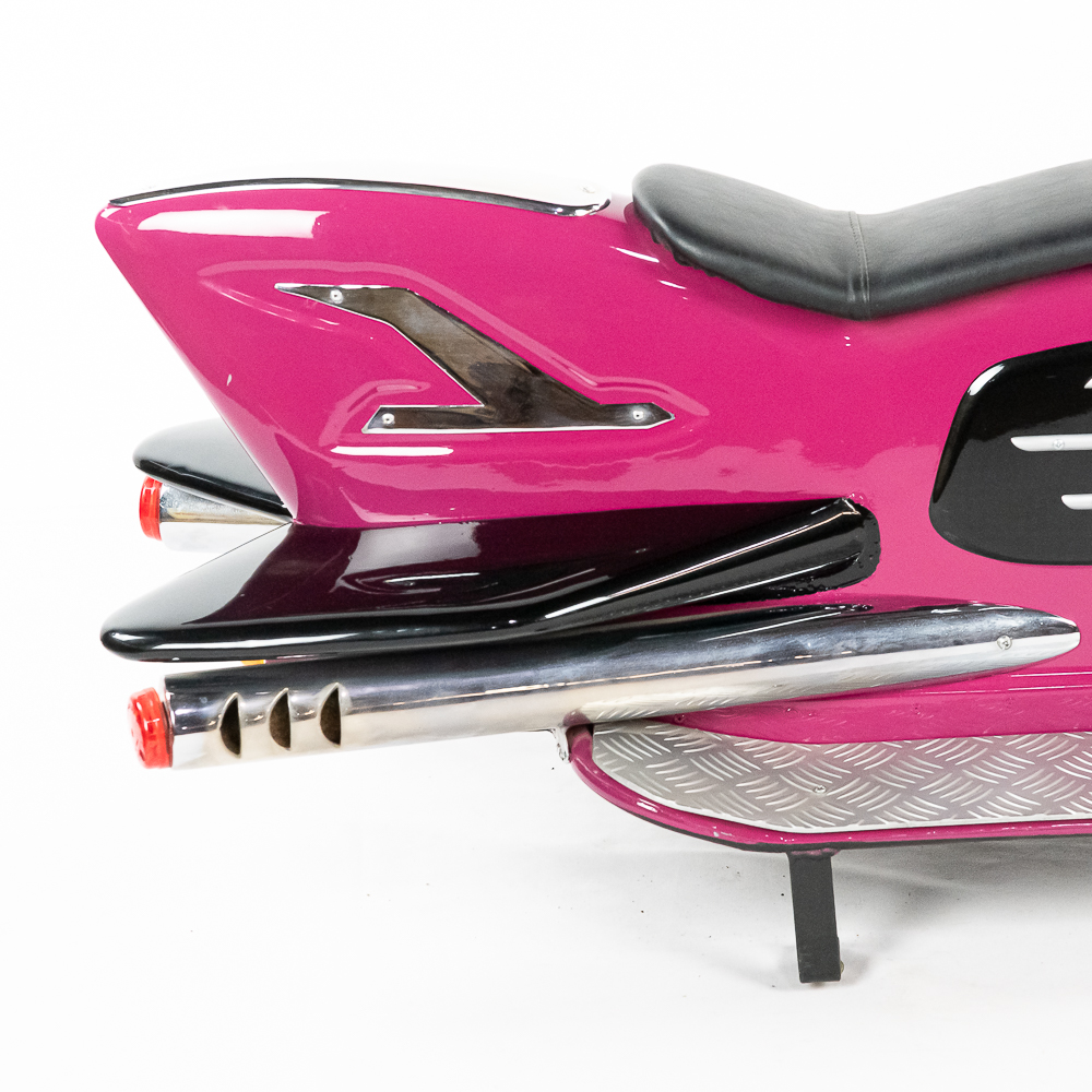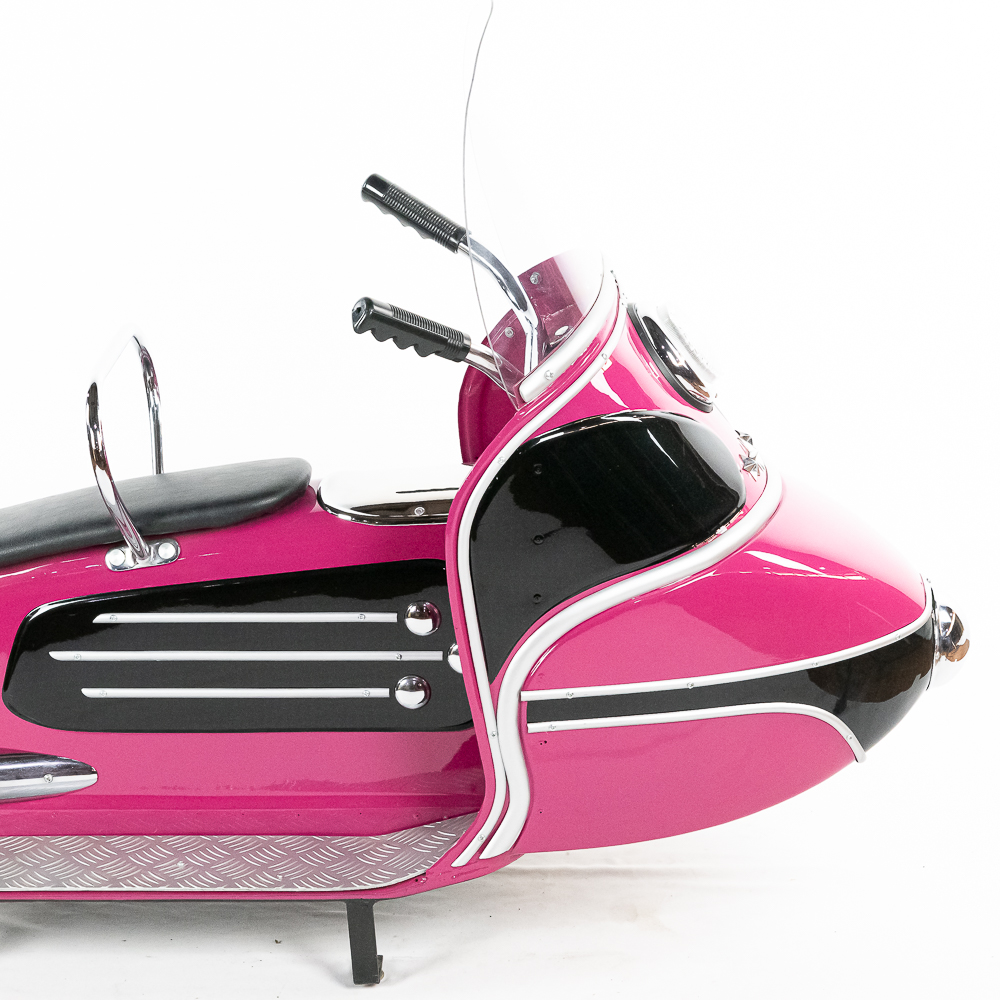 Fully restored amusement ride manufactured by L’ Autopede of Belgium. With 24″ X 36″ Canvas print by Dave Stevens creator of the Rocketeer. Ride is 58″L X 17″W X 37″ H at windscreen. Both in excellent condition