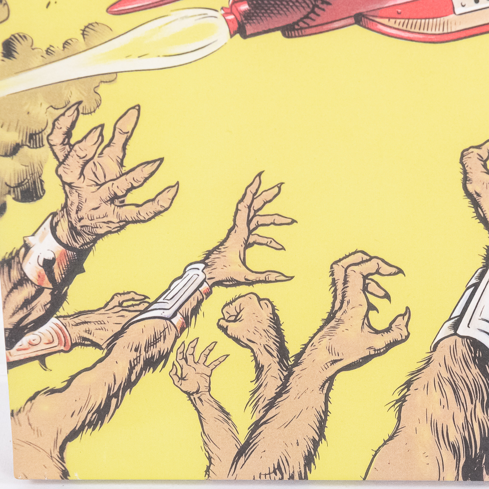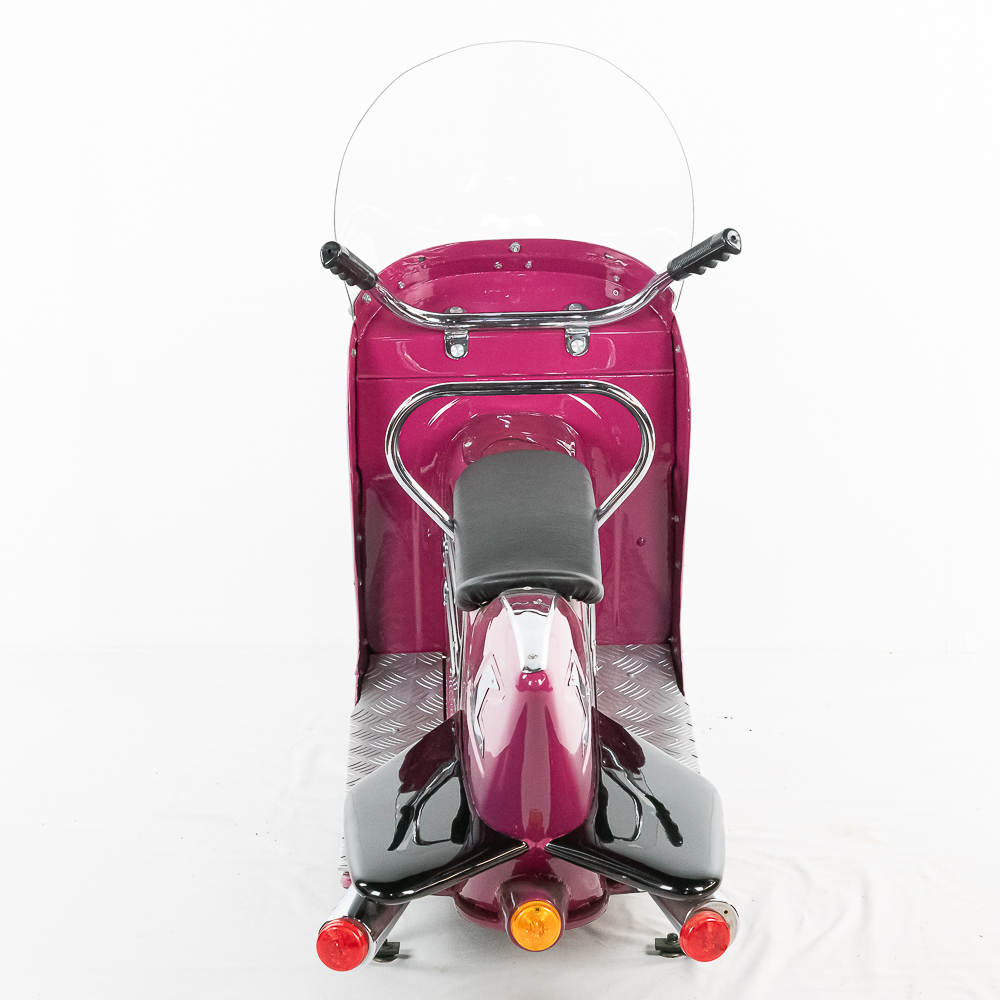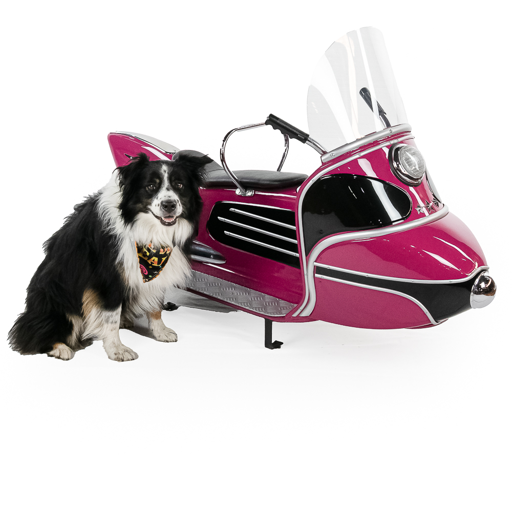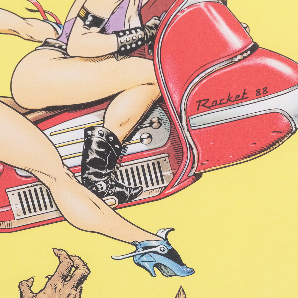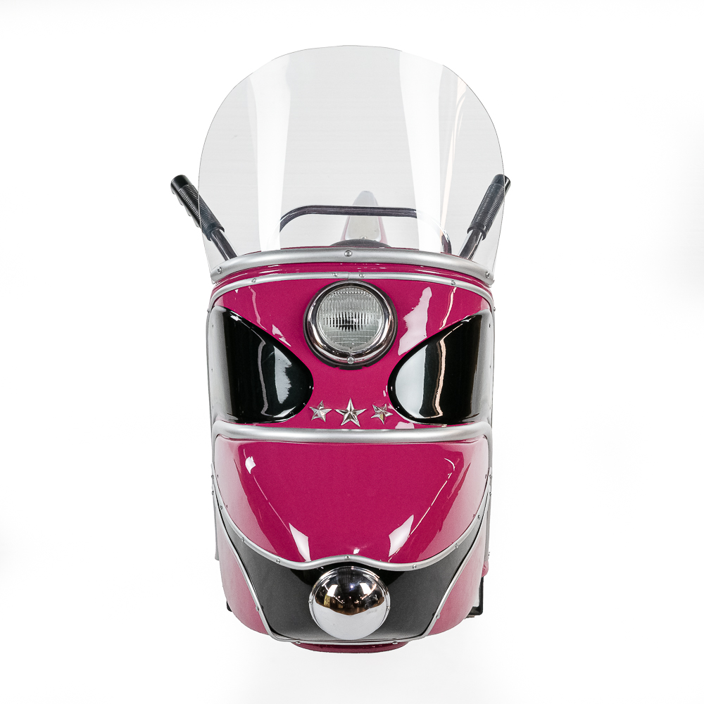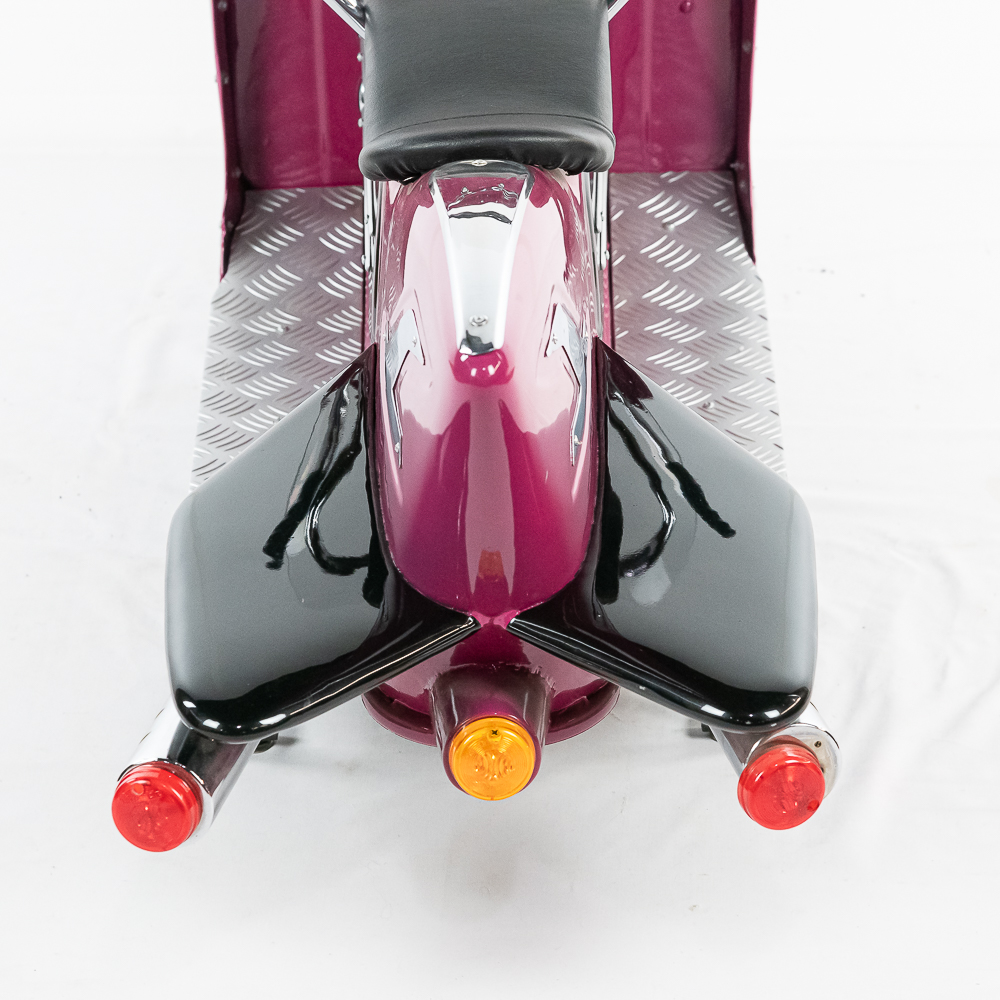 Fully restored amusement ride manufactured by L’ Autopede of Belgium. With 24″ X 36″ Canvas print by Dave Stevens creator of the Rocketeer. Ride is 58″L X 17″W X 37″ H at windscreen. Both in excellent condition