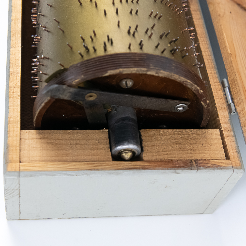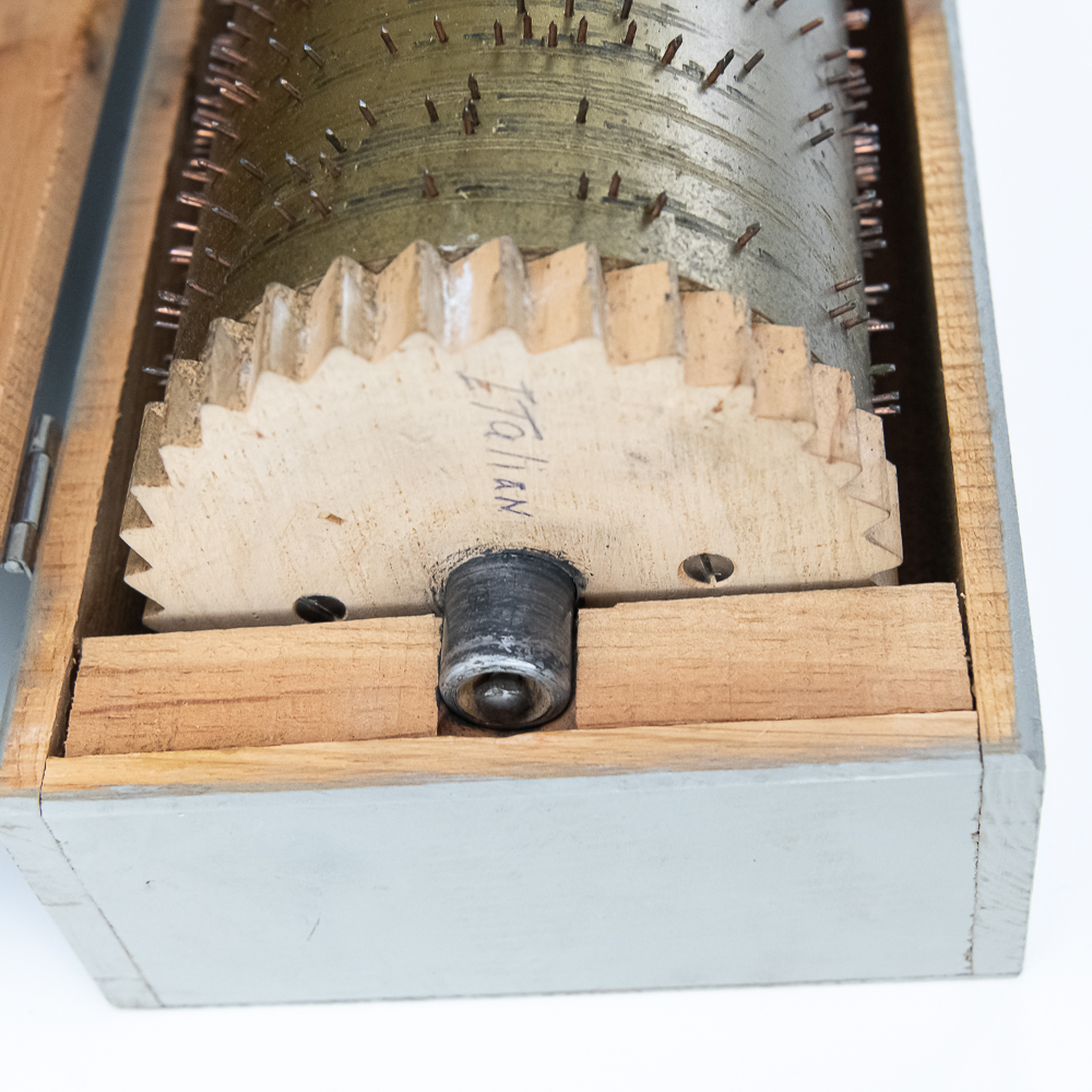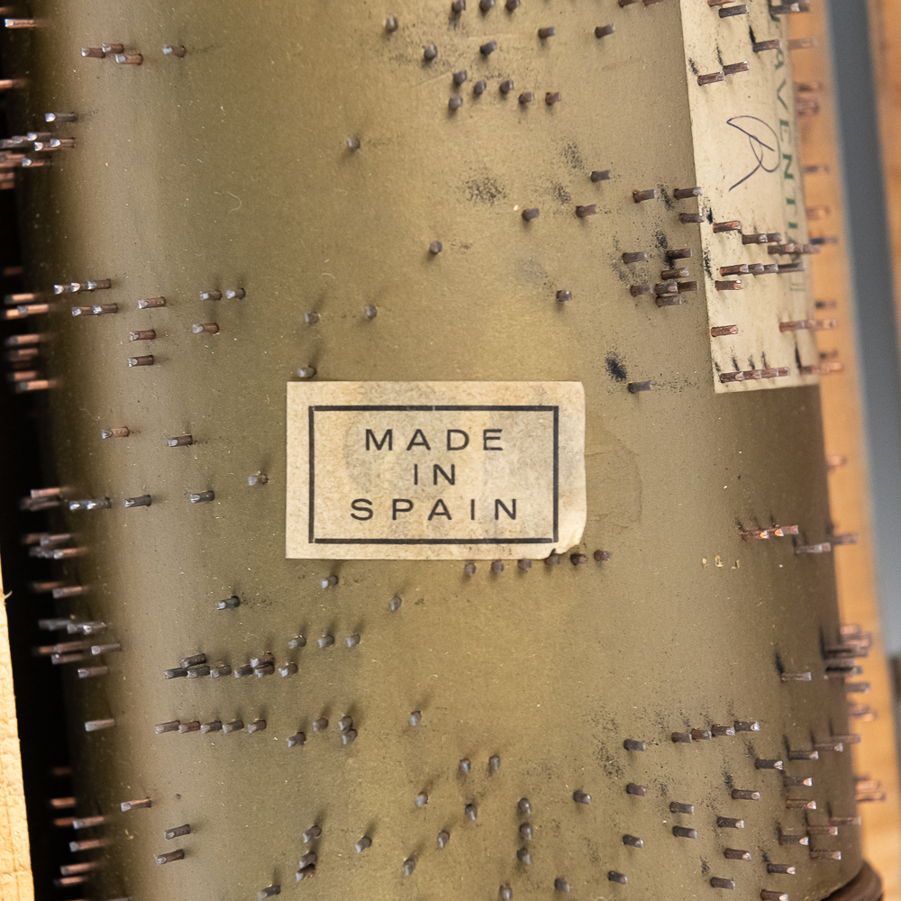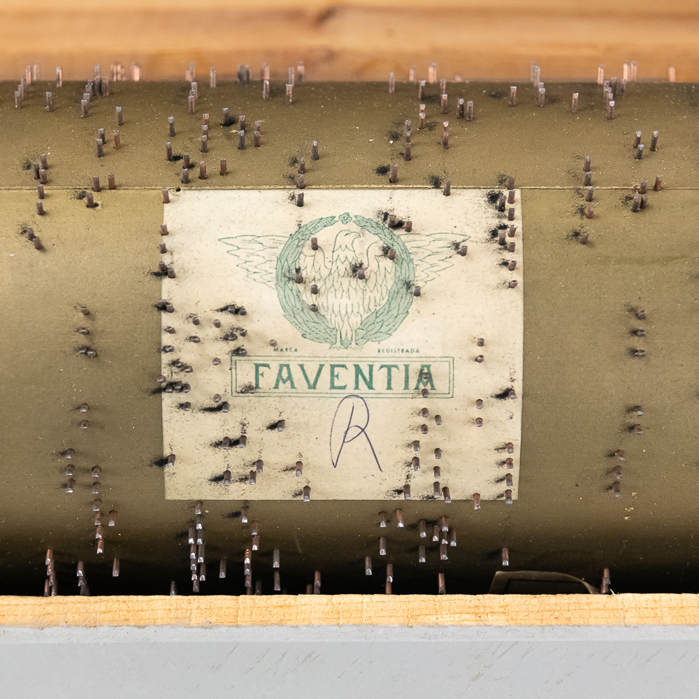 Hard to come by Faventia barrel organ roll for the Vincente Llinares “hurdy gurdy” children’s barrel organ. Showcased inside orange wood box and made in Spain. In very good overall condition, approximately 19.5″ long. Please use photos to judge condition and bid accordingly.