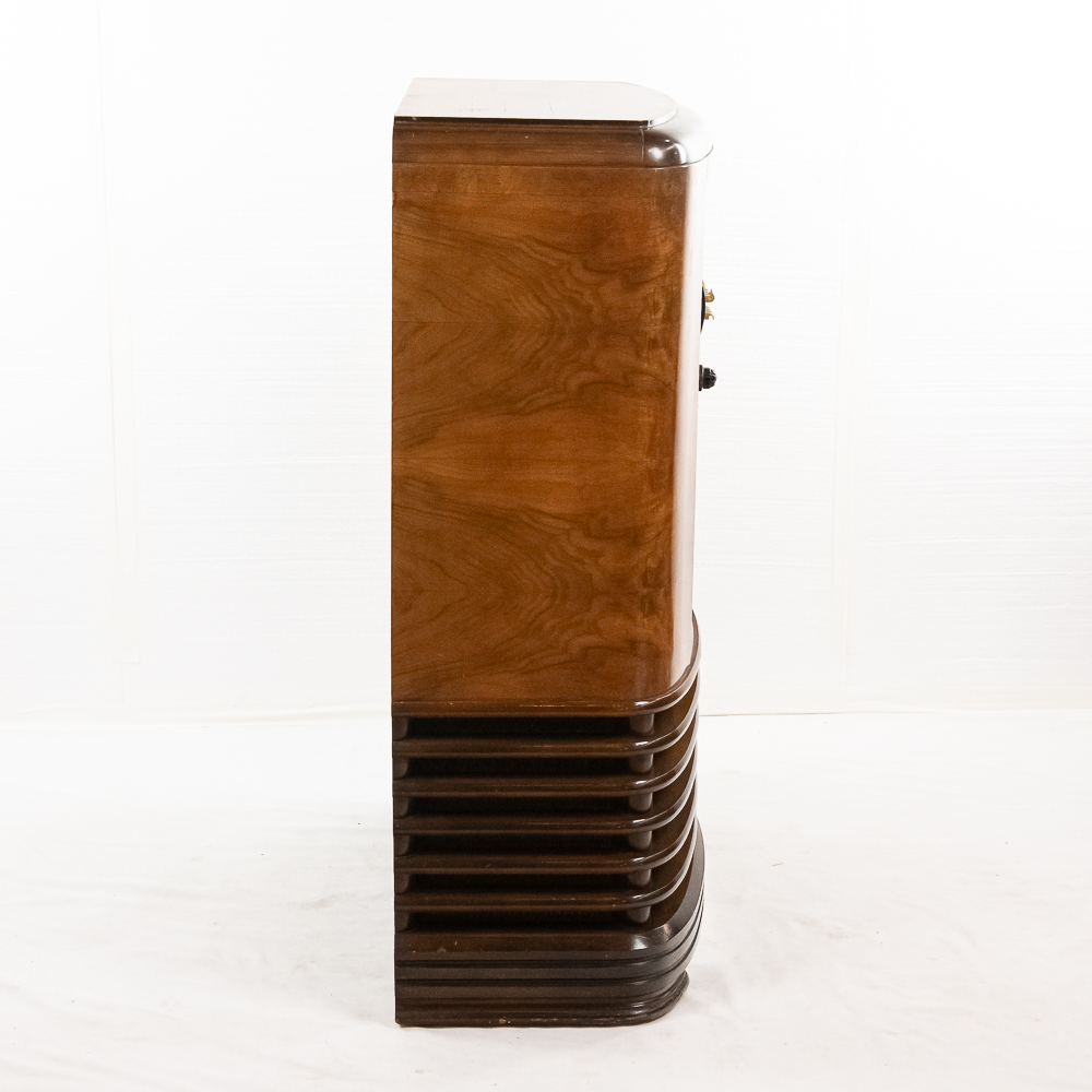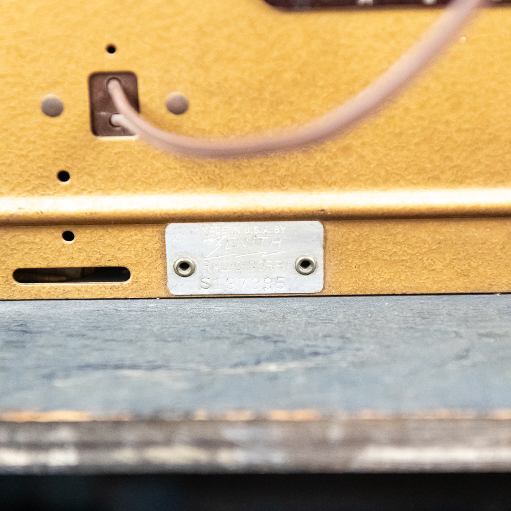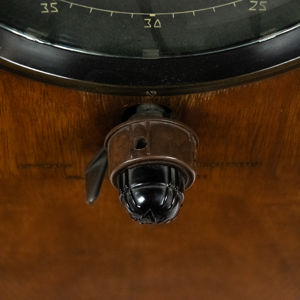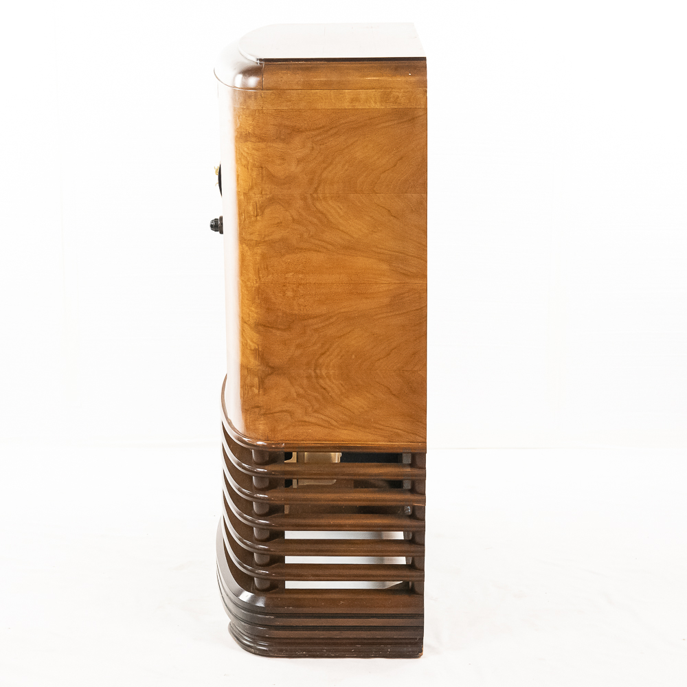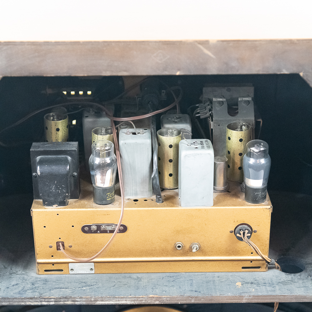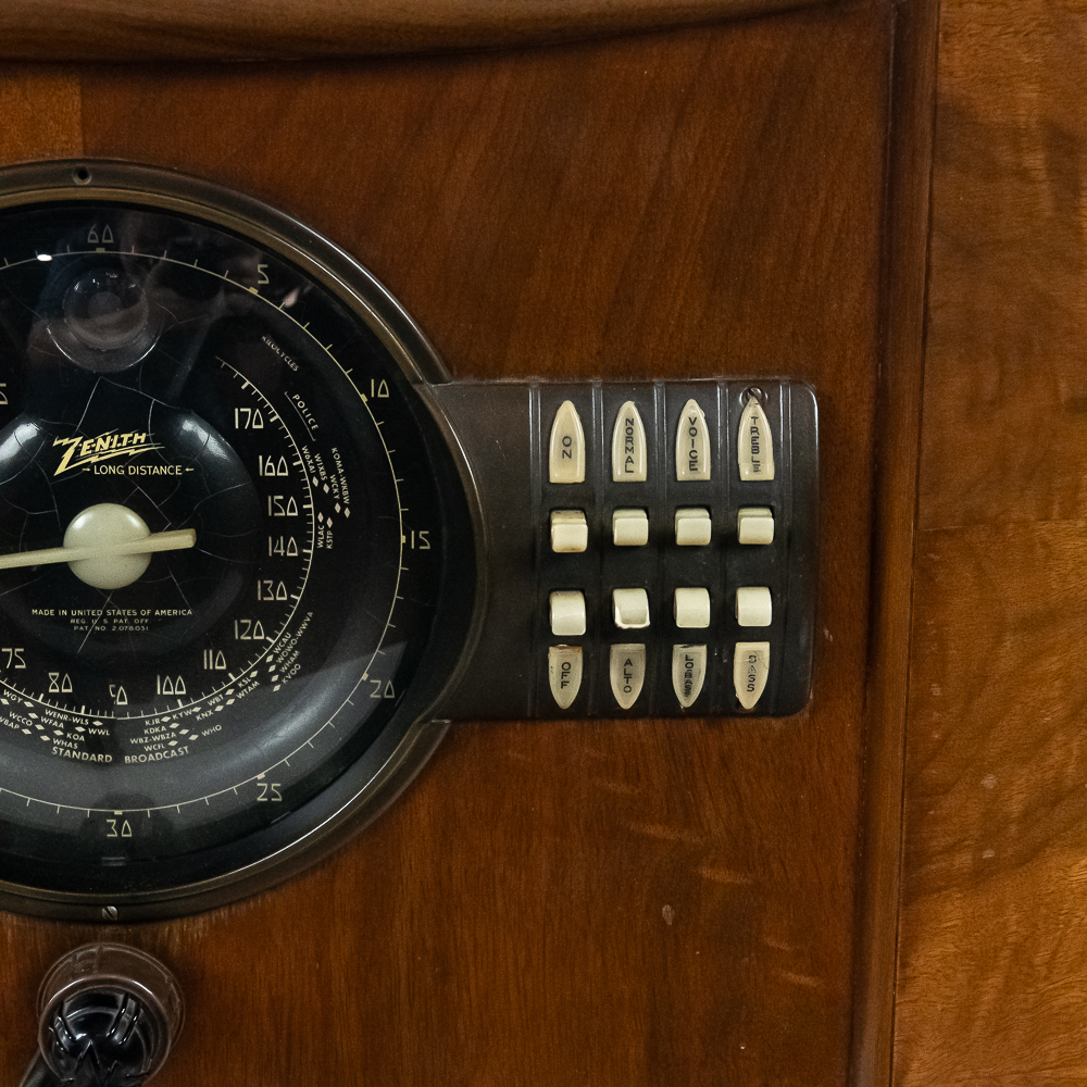 Very nice 1939 Zenith ZEPHYR Shutter dial/Robot dial 9S-367 console tube radio. Original finish cabinet in VG condition. All buttons and knobs in VG original condition. You will not find a nicer all original radio. Measures 43.5″ tall, 28″ wide, 15″ deep.