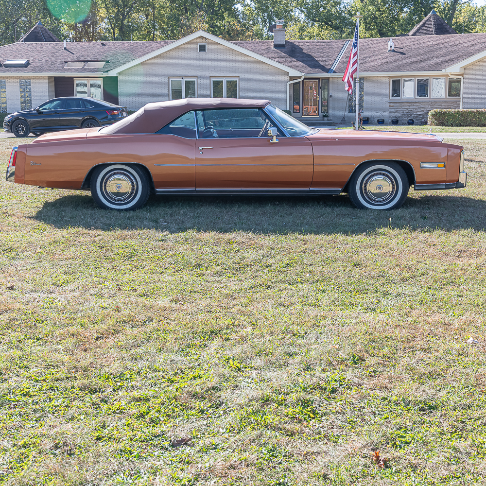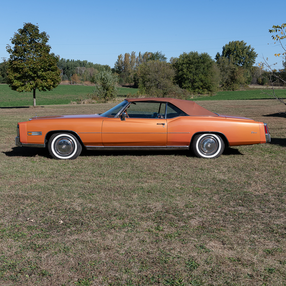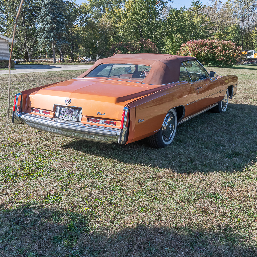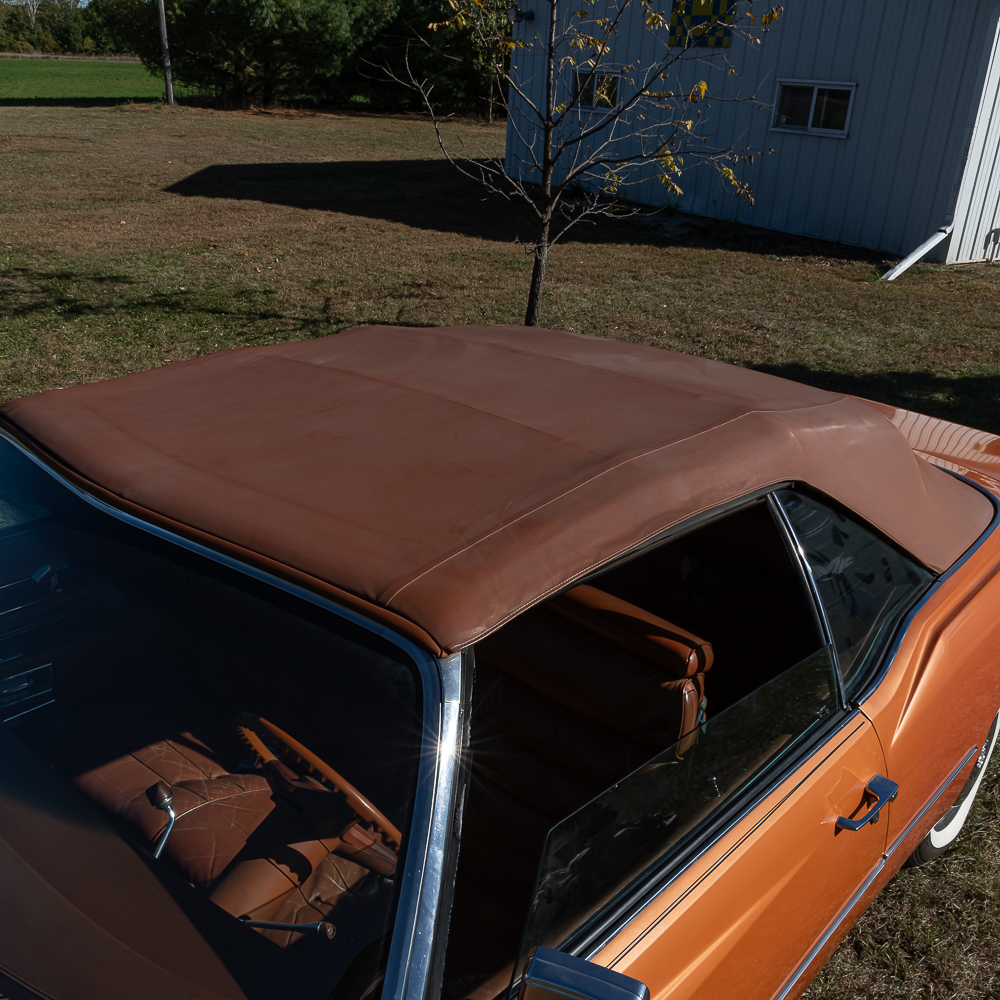 This classic beauty has been garage kept its whole life. Serial No# 6L67S5Q203669. Speedometer showing 61839 miles and vehicle is clean enough to be true. Loaded to the max for that year, leather seats, cruise control, electric windows, locks, seats, trunk release, antenna and convertible top. A/M, F/M, 8 track radio. Tilt steering column, climate control, auto dimming headlights and air conditioning. Carpet and seats show normal wear. Convertible top is in good condition along with rear glass window (heated). Engine compartment is very clear sporting the large 500 c.i.-V8. Power steering and brakes with front discs. All fender and quarter extensions at one time been replaced and a professional exterior color coat paint, removing all necessary moldings, etc. Pinstriping was then applied. Trunk is clean with spare tire, jack, both fender skirts in covers, extra parts and car manuals. All exterior chrome is in good condition. Underside is clean with very little rust. Tires look to be in good condition, but not guaranteed. Vehicle has been meticulously maintained and occasionally driven, keeping it up to par. Here is your chance to own this extraordinary piece of automotive history. Overall good condition.