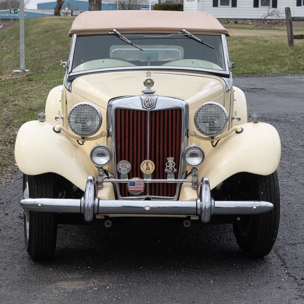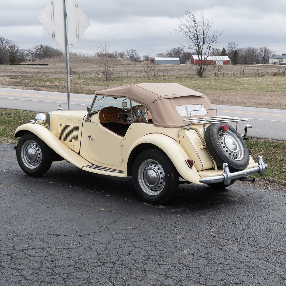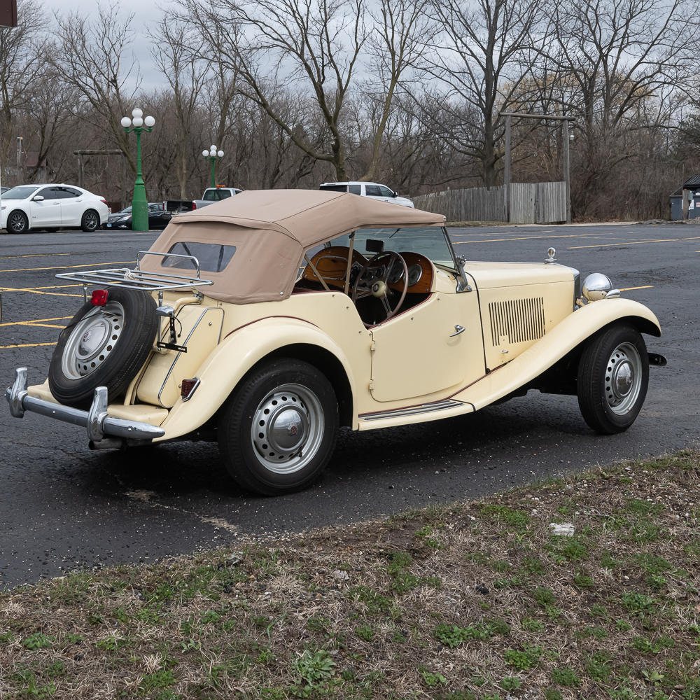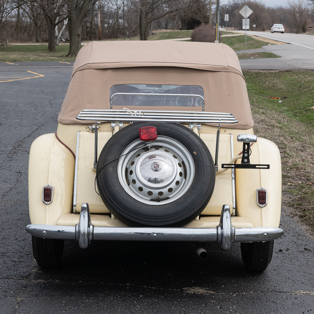 An older frame off restoration which shows beautifully. Speedometer shows 01689 miles. Interior is like new with a wood dash panel. All dash knobs are present and steering wheel is good (no cracks). The convertible top and rear window are like new. Vehicle is sporting a rear chrome luggage rack along with a spare tire mount and wheel. All tires are good. The chrome through out including the wheel covers with center emblem are good except for left front (there are several spare caps in boxes of spare parts). Auto has fog lights, headlamp chrome protectors and at the top of the radiator sports a Boyce radiator cap. Under the bonnet, the motor looks to have also been restored and is as clean as the exterior and chassis. Electrical system has been changed to 12 Volt and under hood tool box has several pouches of tools. It has dual horns under the bonnet. Dual carbs, polished valve cover and manifold. Auto I.D. number TD/19841, motor number XPAG/TD2/20172. Vehicle comes with tonneau cover, car cover and boxes of spare parts. This is a very road worthy auto which gets a lot of attention going down the road, car shows, or at friends parties. A wonderful automobile.