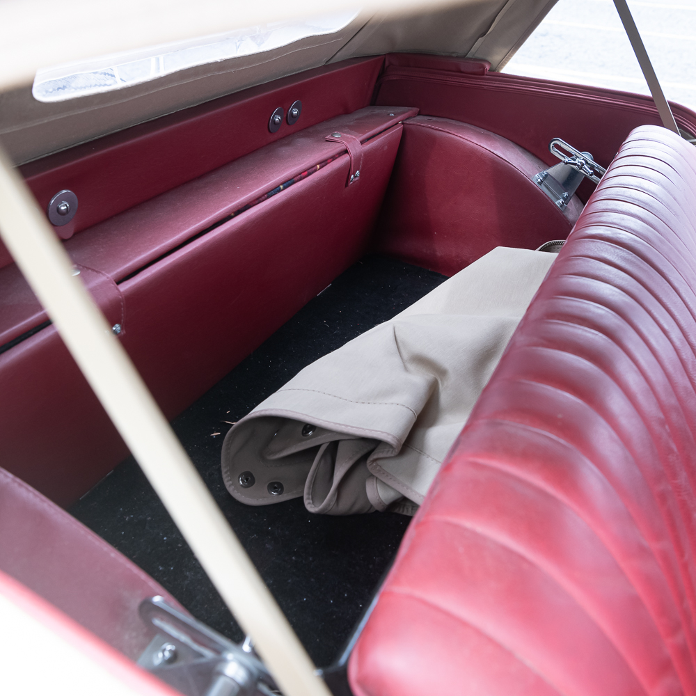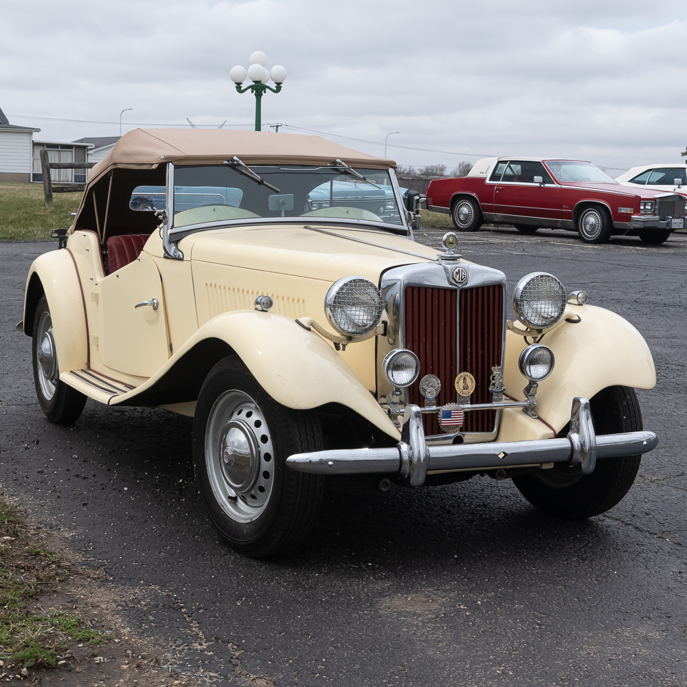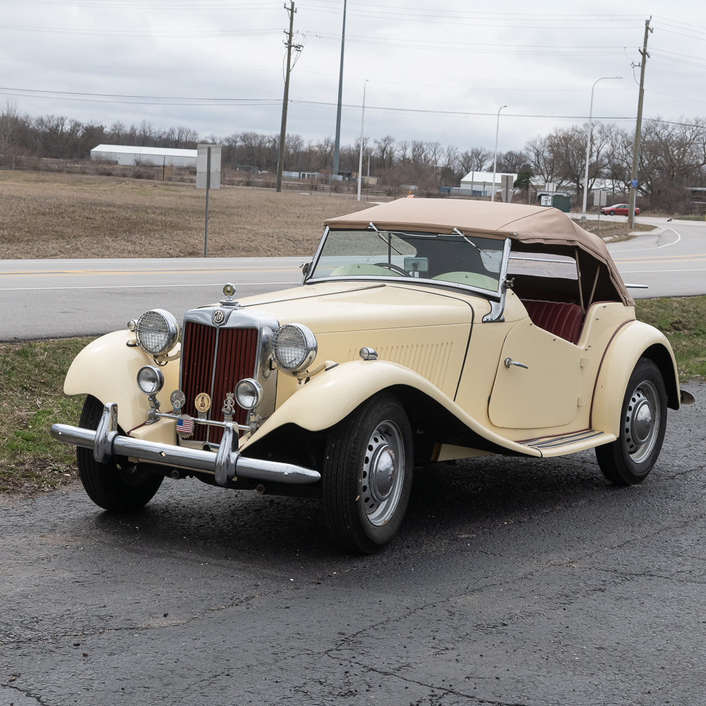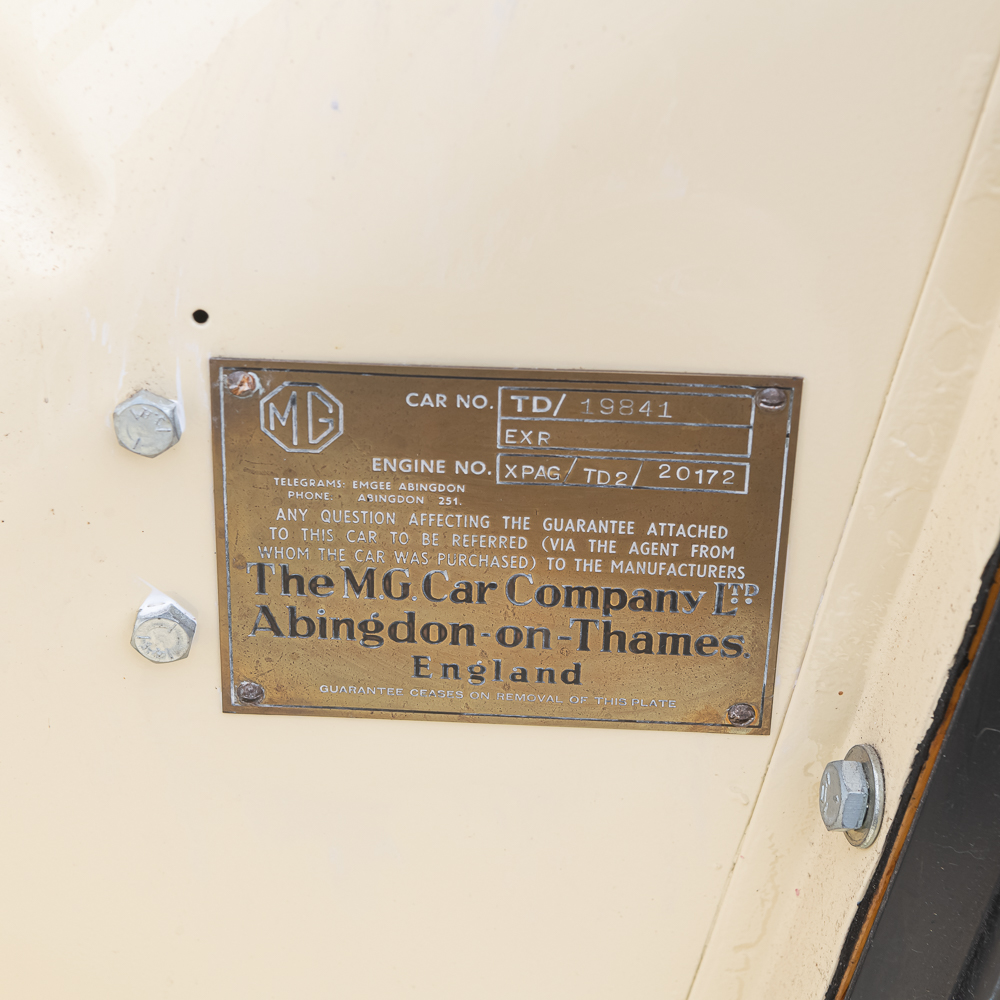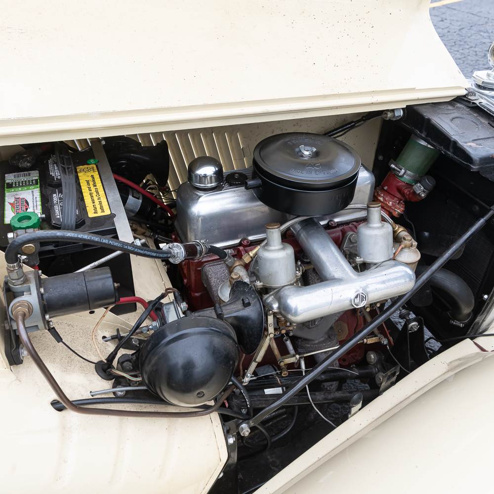 An older frame off restoration which shows beautifully. Speedometer shows 01689 miles. Interior is like new with a wood dash panel. All dash knobs are present and steering wheel is good (no cracks). The convertible top and rear window are like new. Vehicle is sporting a rear chrome luggage rack along with a spare tire mount and wheel. All tires are good. The chrome through out including the wheel covers with center emblem are good except for left front (there are several spare caps in boxes of spare parts). Auto has fog lights, headlamp chrome protectors and at the top of the radiator sports a Boyce radiator cap. Under the bonnet, the motor looks to have also been restored and is as clean as the exterior and chassis. Electrical system has been changed to 12 Volt and under hood tool box has several pouches of tools. It has dual horns under the bonnet. Dual carbs, polished valve cover and manifold. Auto I.D. number TD/19841, motor number XPAG/TD2/20172. Vehicle comes with tonneau cover, car cover and boxes of spare parts. This is a very road worthy auto which gets a lot of attention going down the road, car shows, or at friends parties. A wonderful automobile.