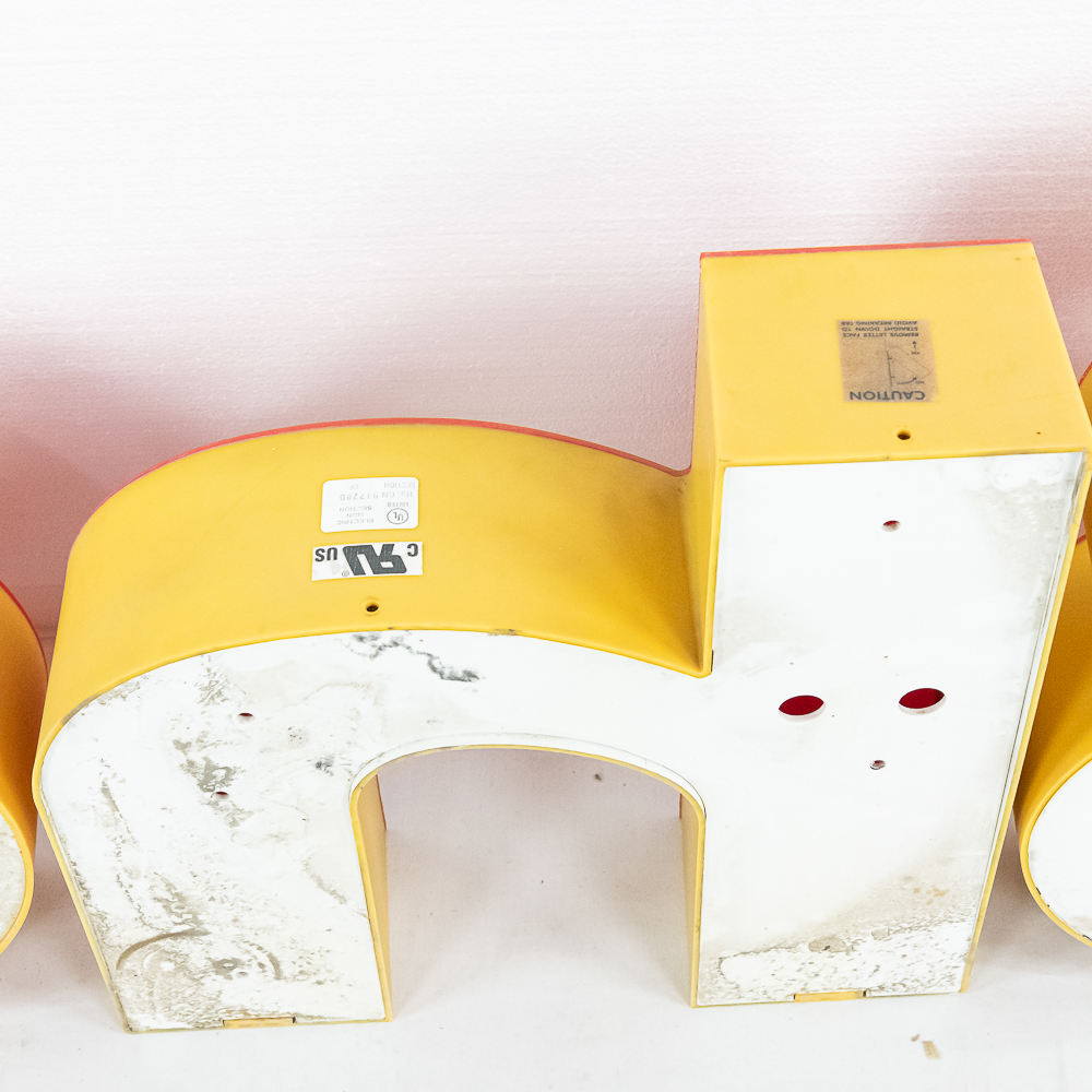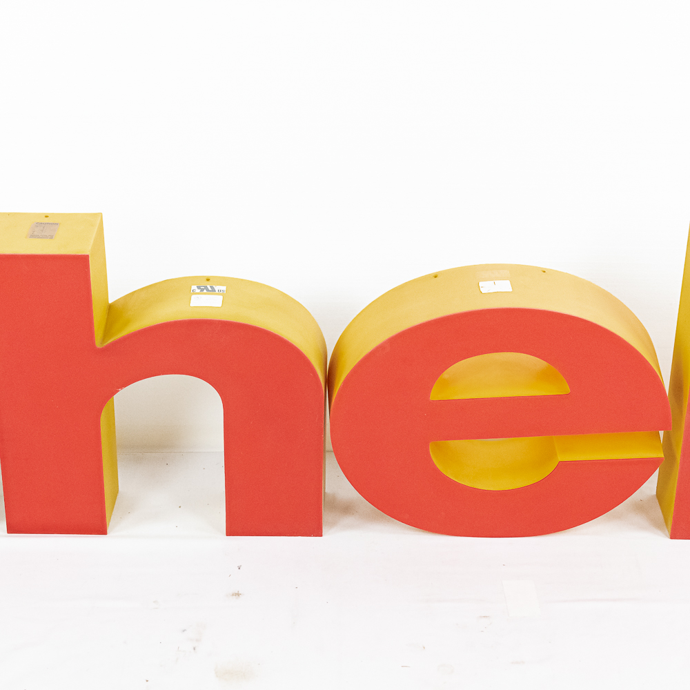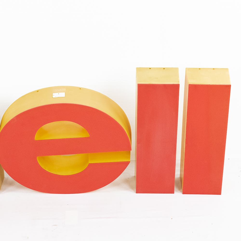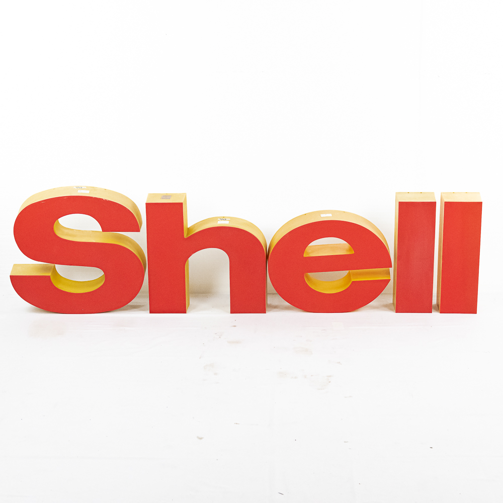 The ultimate lighted “SHELL” gas station advertising canopy sign. Composed of five independent letters, the largest letter “S” is roughly 19″t x 20″w and in good overall (untested) condition with some age and wear noted such as minor discoloration in areas. Perfect addition to your collection, please use photos to judge condition and bid accordingly.