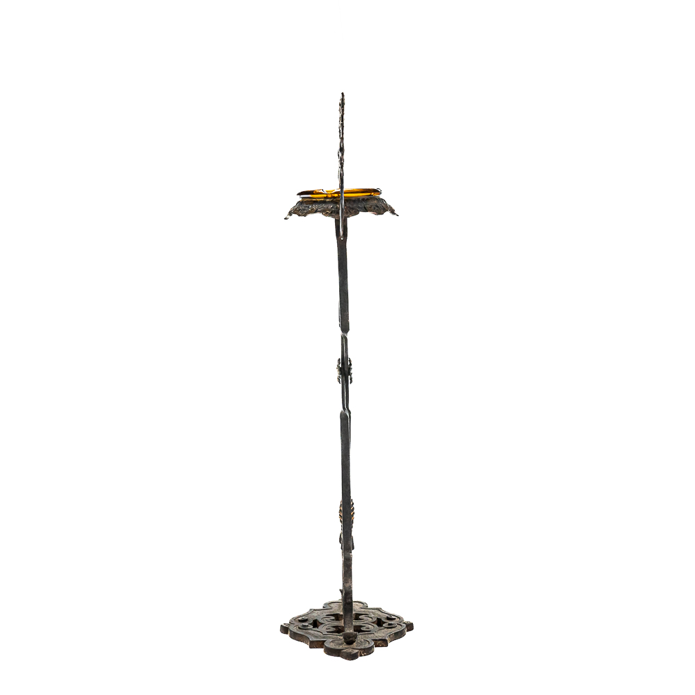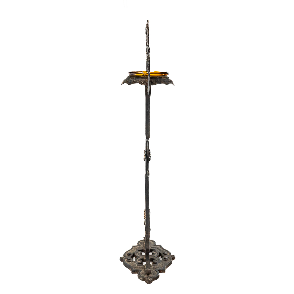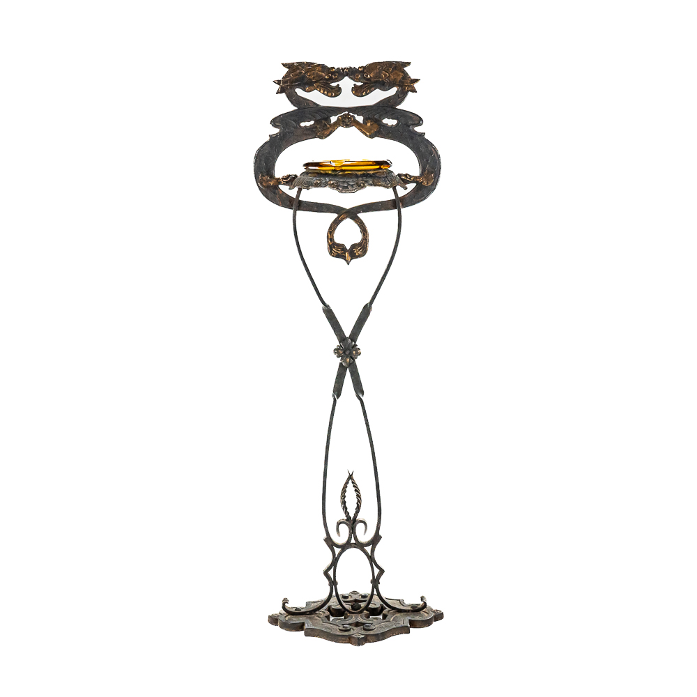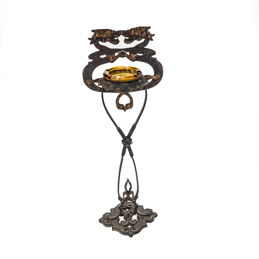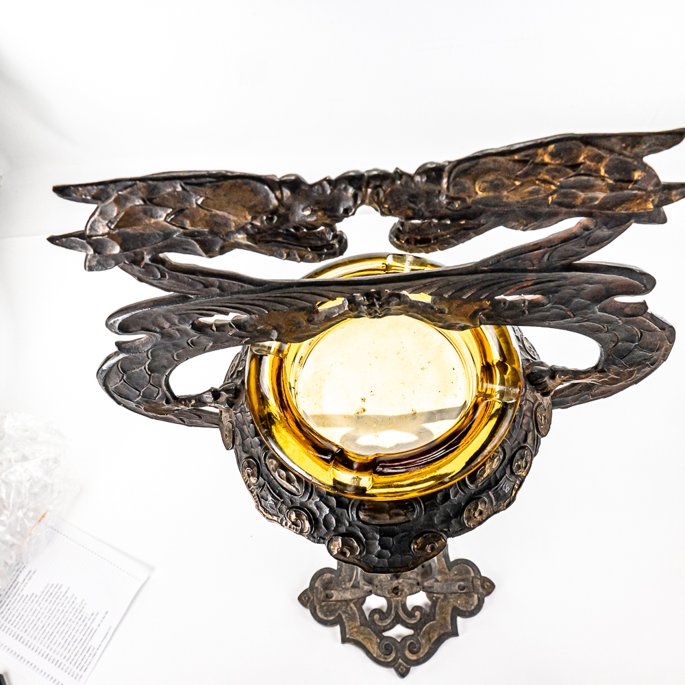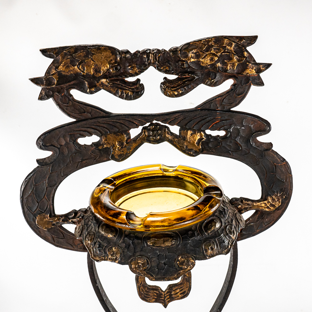 Ornately detailed “Double Dragon” cast iron standing ashtray. Featuring a double dragon top with elegant eye catching design; approximately 37.5″t x 10″d x 12″l. Perfrect addition for your home or office, please use photos to judge condition and bid accordingly.