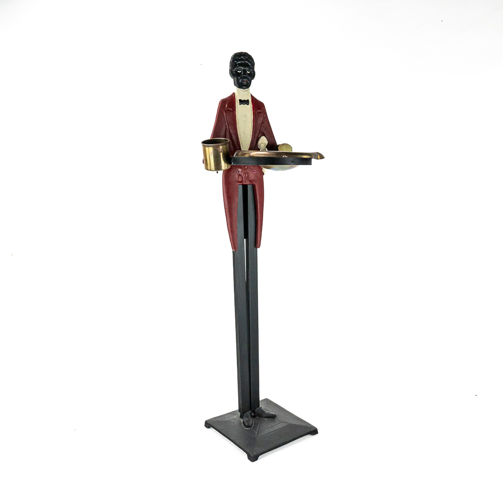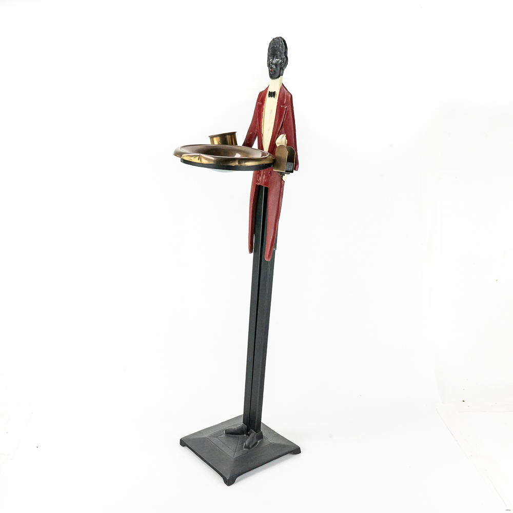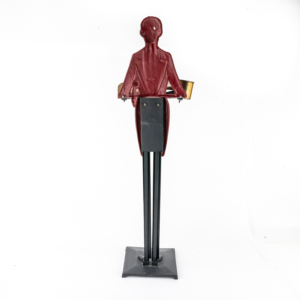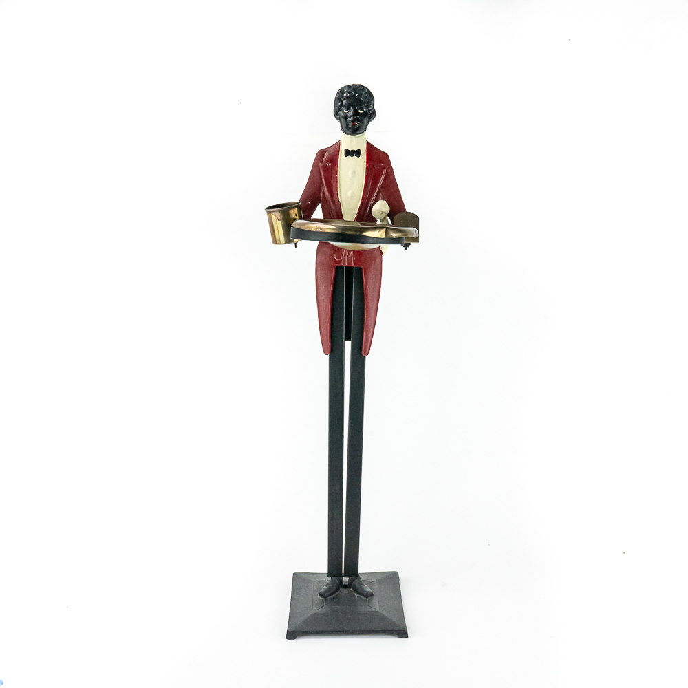 Contemporary, re-make of the iconic butler ashtray, cast and stamped metal, good condition, 32 1/2″, see photos.