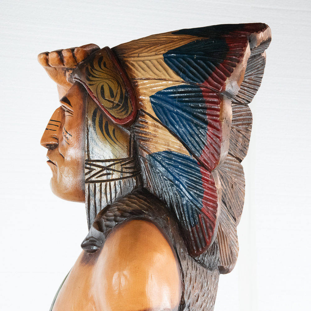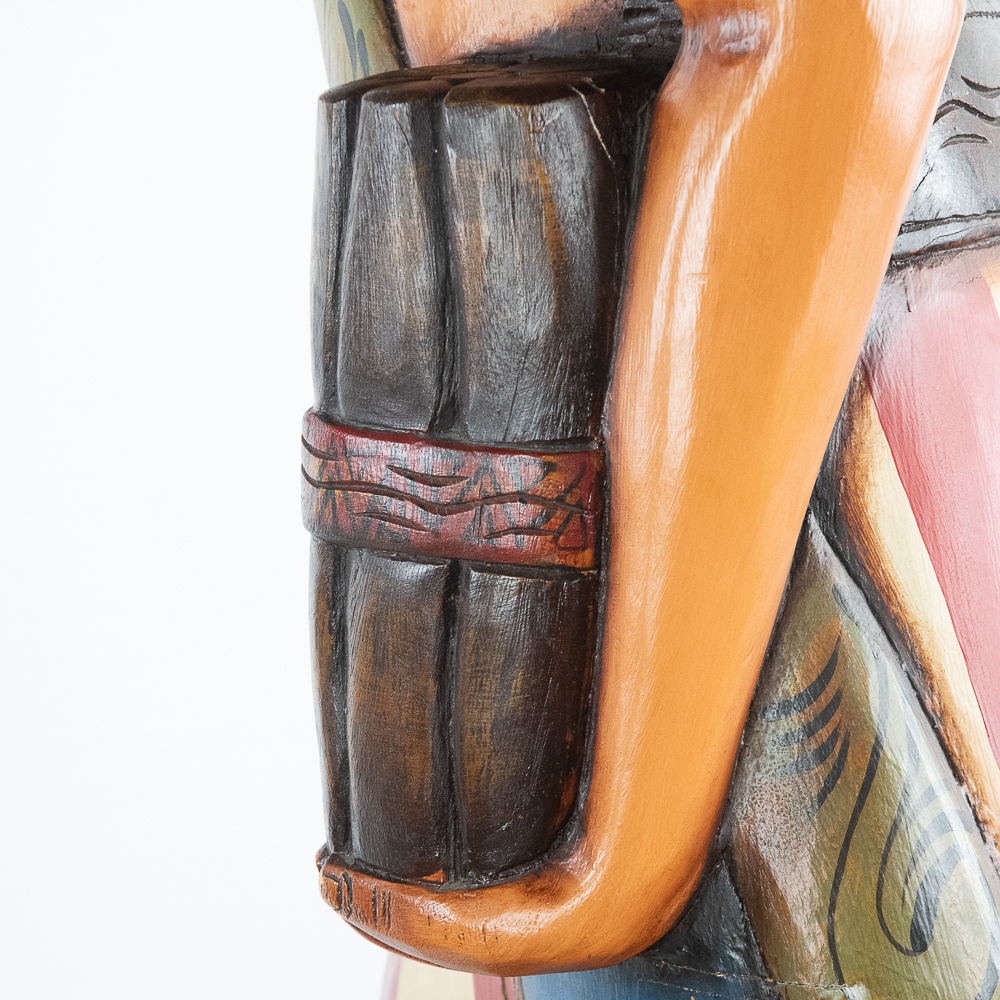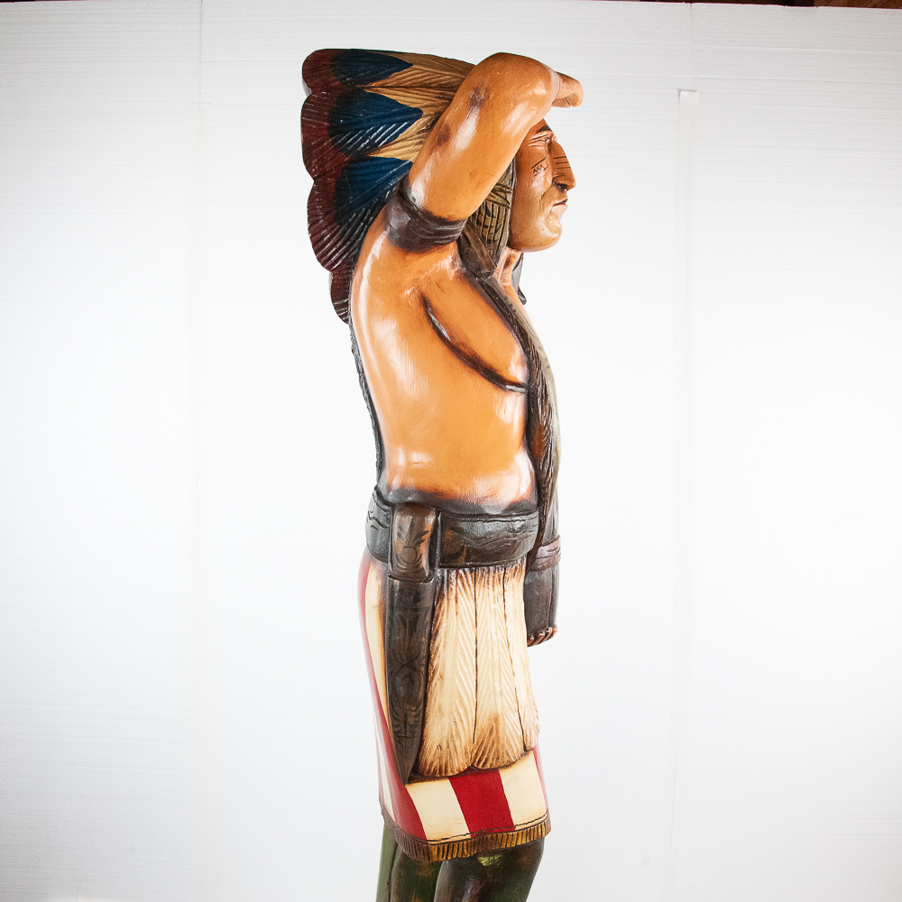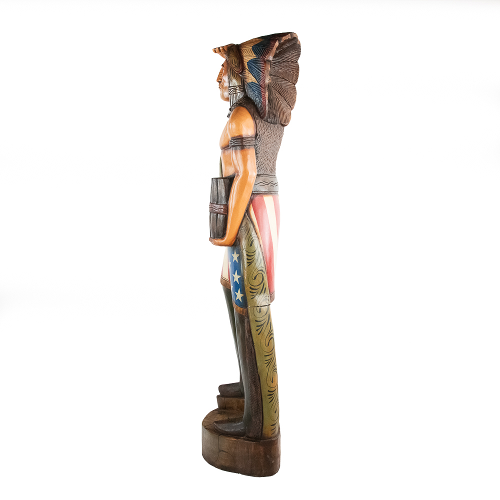 Probably carved in the 2000’s, this contemporary figure is a great Man Cave item. Standing 79″ tall it has original paint. Has some large stress cracks, see photos.
