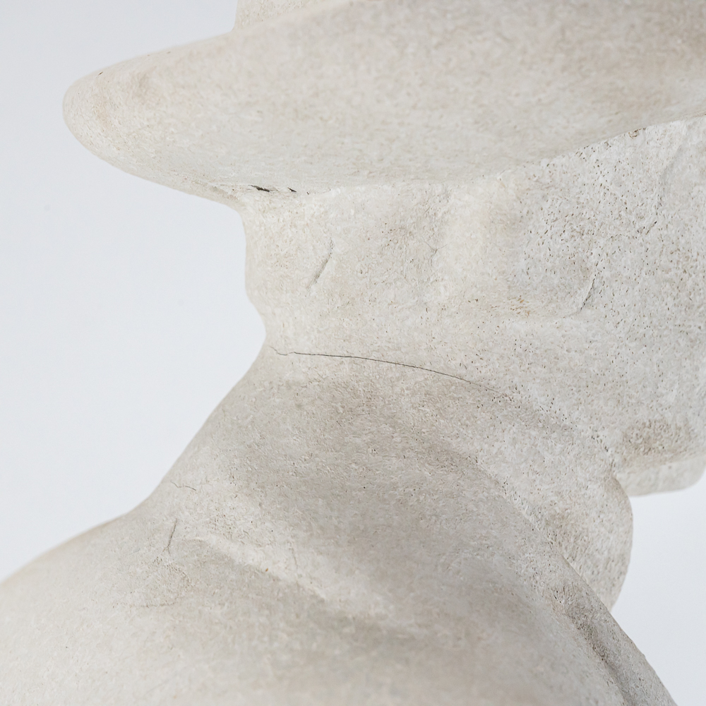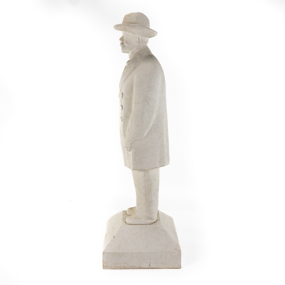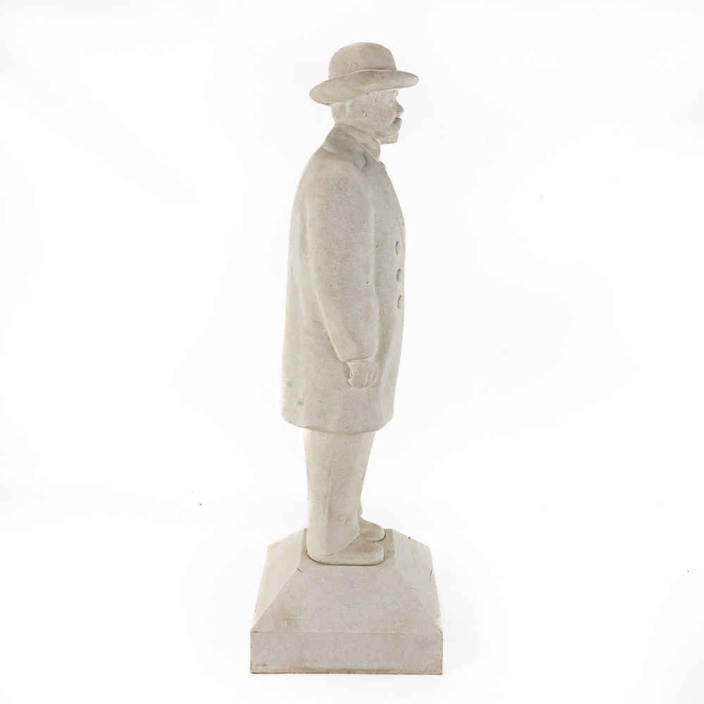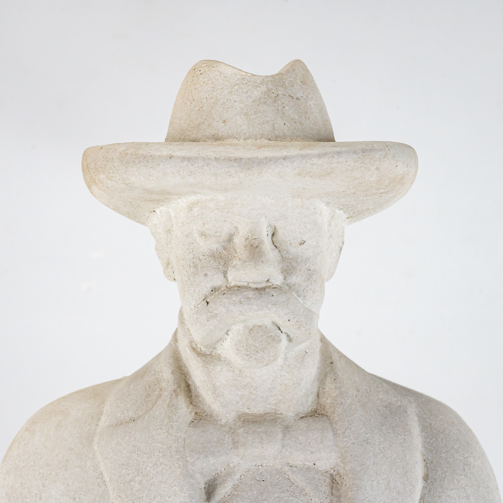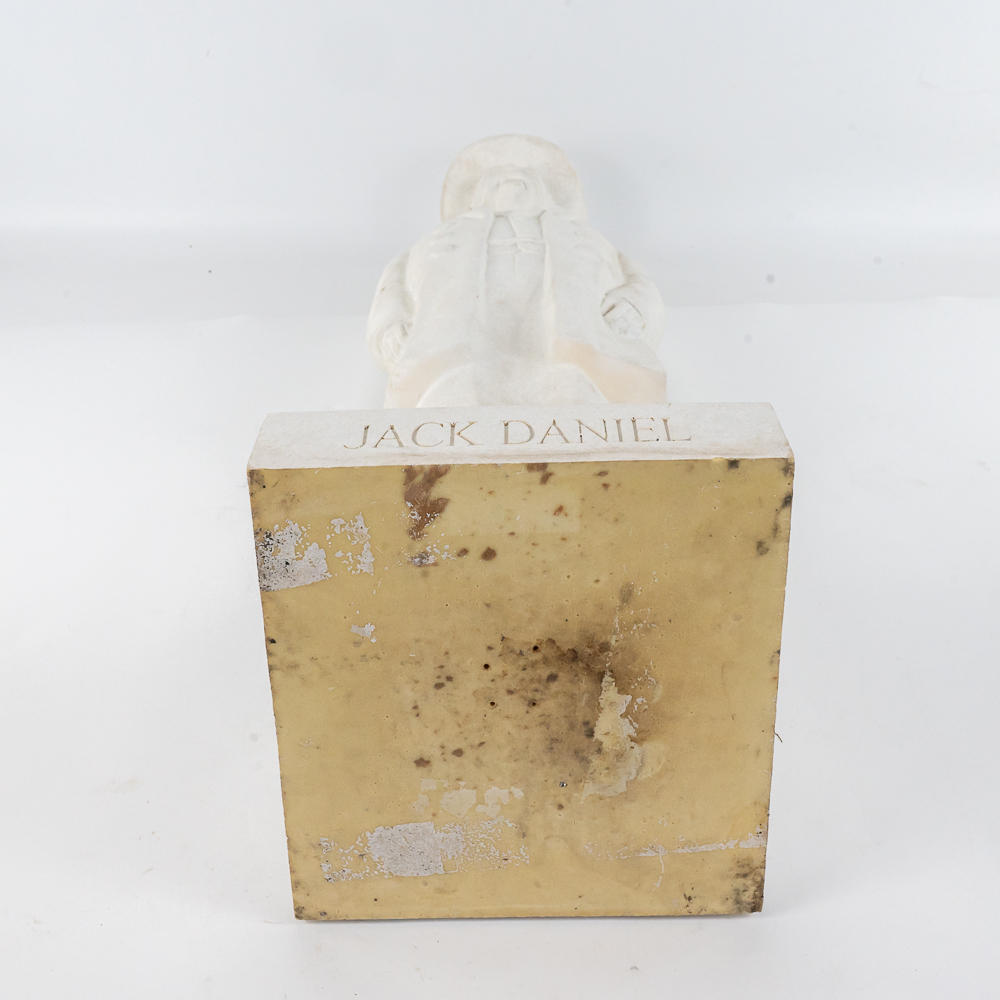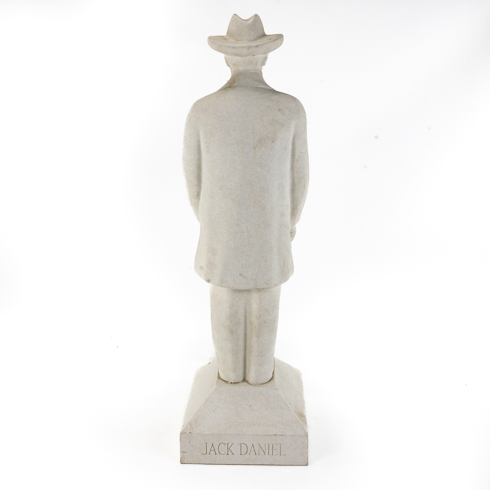 Large plastic statue of Jack Daniels made to look like it was carved from limestone. In VG condition, most likely from a liquor store display. Measures 34″ tall, 10″ wide, 10″ deep.