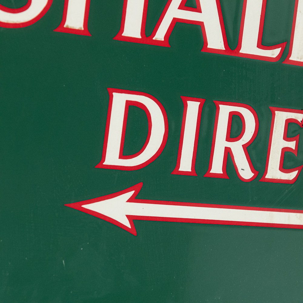 Great porcelain sign from a great, well-known department store – MARSHALL FIELD & COMPANY DIRECT ENTRANCE with a left-facing arrow. Very good PLUS condition!! Measures 60" X 15" – see photos