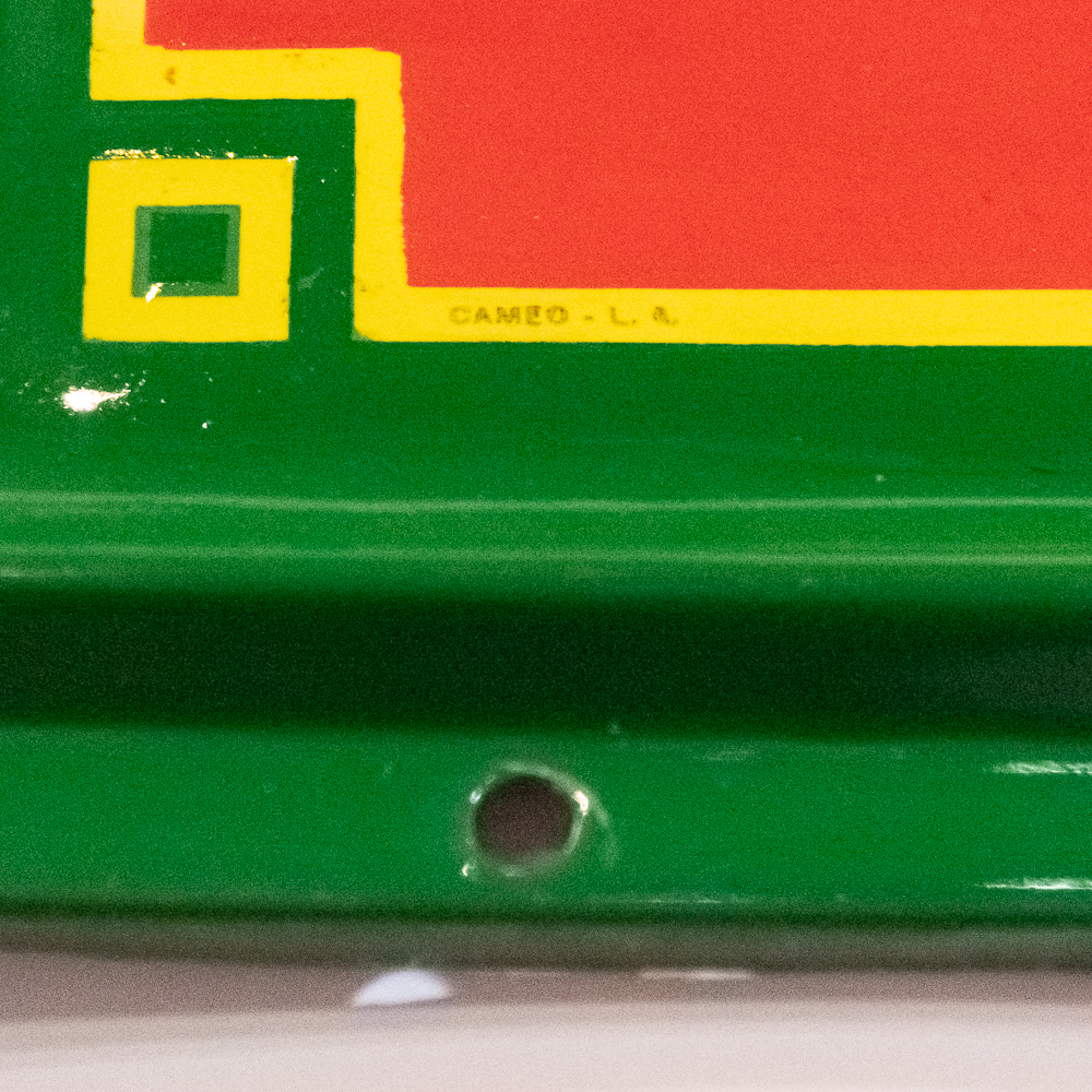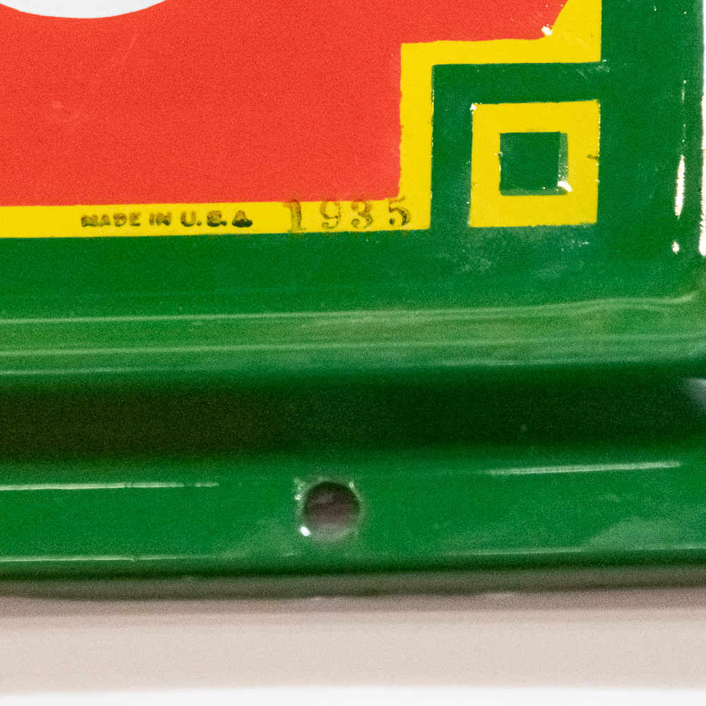 Heavy metal, self framed with marquee style. Beautiful, great color and shine. 4 color porcelain Coca Cola outdoor sign. No dents, dings or rust. Doesn’t get much better. Overall very good condition.