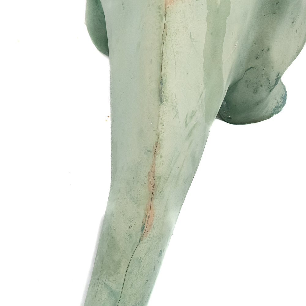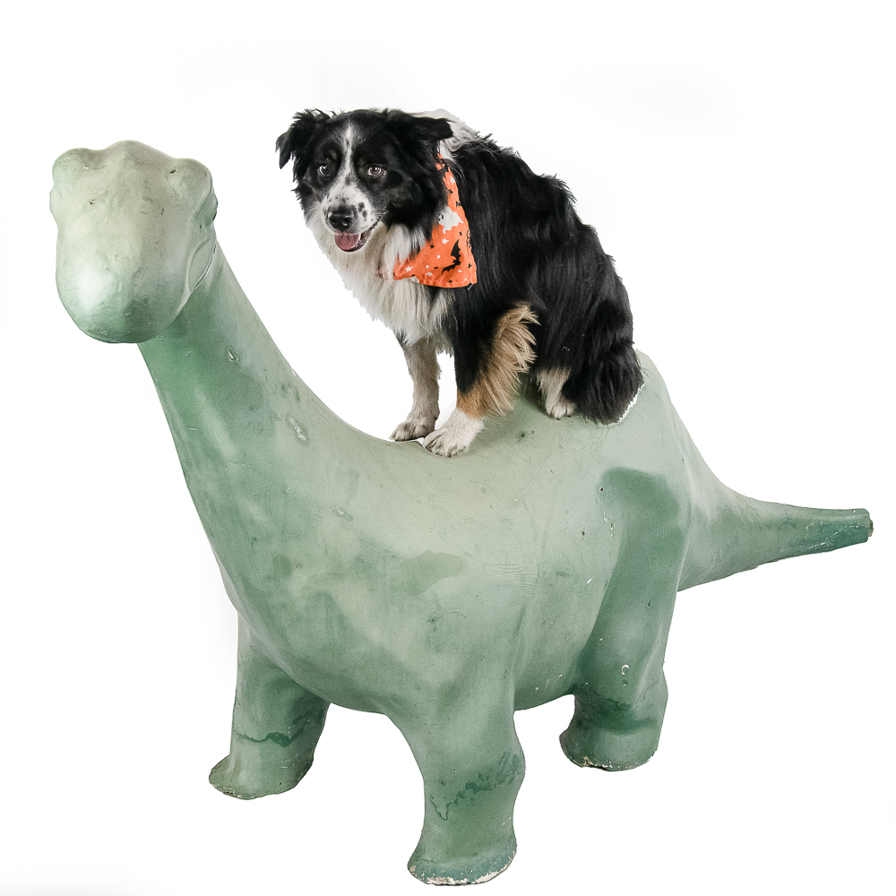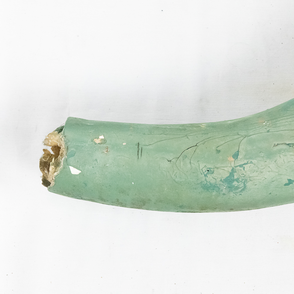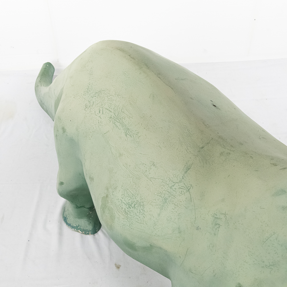 Fiberglass Dino the Dinosaur statue made for Sinclair Oil Co. These Apatosaurus Dino Statues Were Displayed At Sinclair Stations Beginning In 1964, And Were Manufactured By International Fiberglass Company of Venice California. This one is missing the end of his tail. Original green but faded paint. Measures 8′ long and 48″ tall.