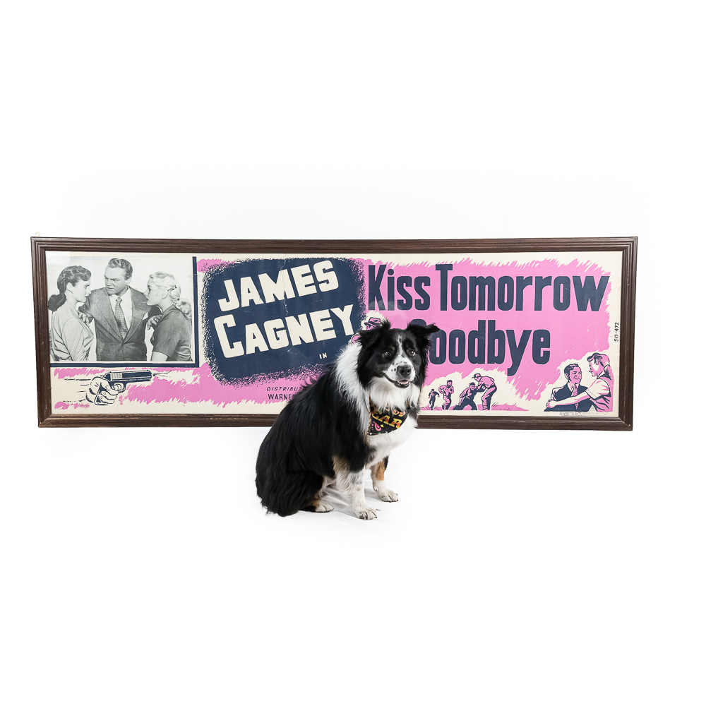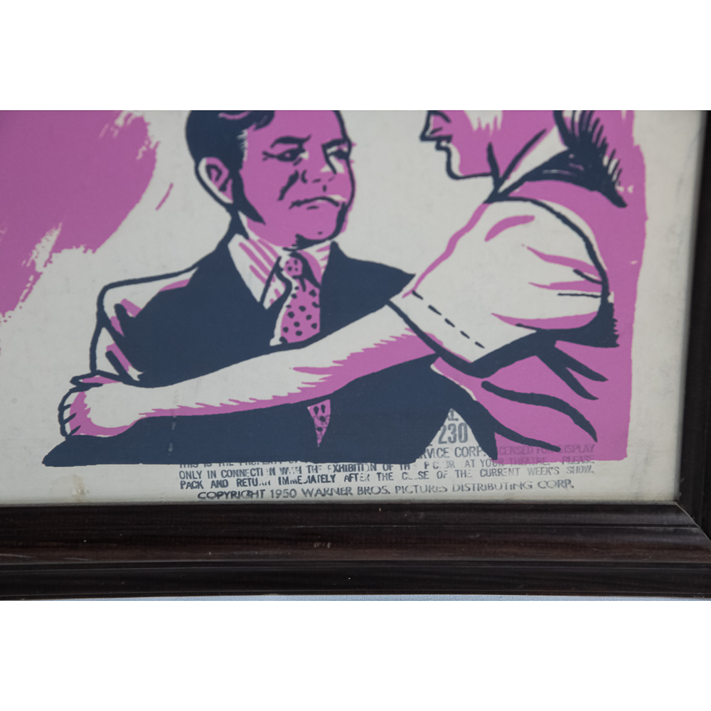 James Cagney in “Kiss Tomorrow Goodbye”. Heavy paper, wood framed and plelxi-glass, limited vintage movie poster with Warner Bros. seal. Plexi-glass is clean and clear. Poster and picture is clear with good color has a nine inch tear in center with some small very light creases. Overall good condition. Ready to hang.