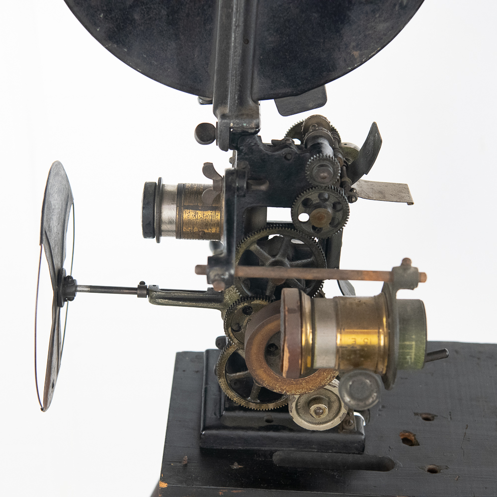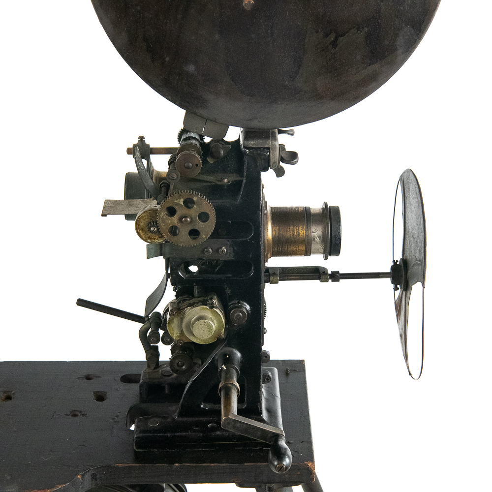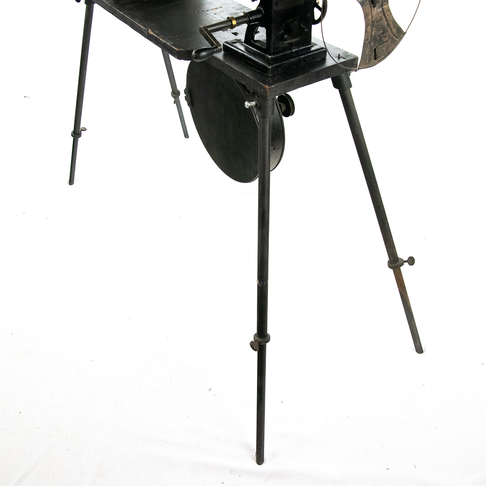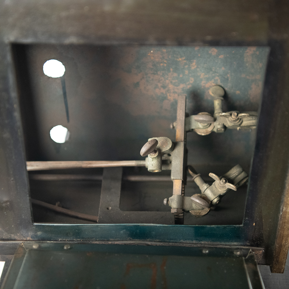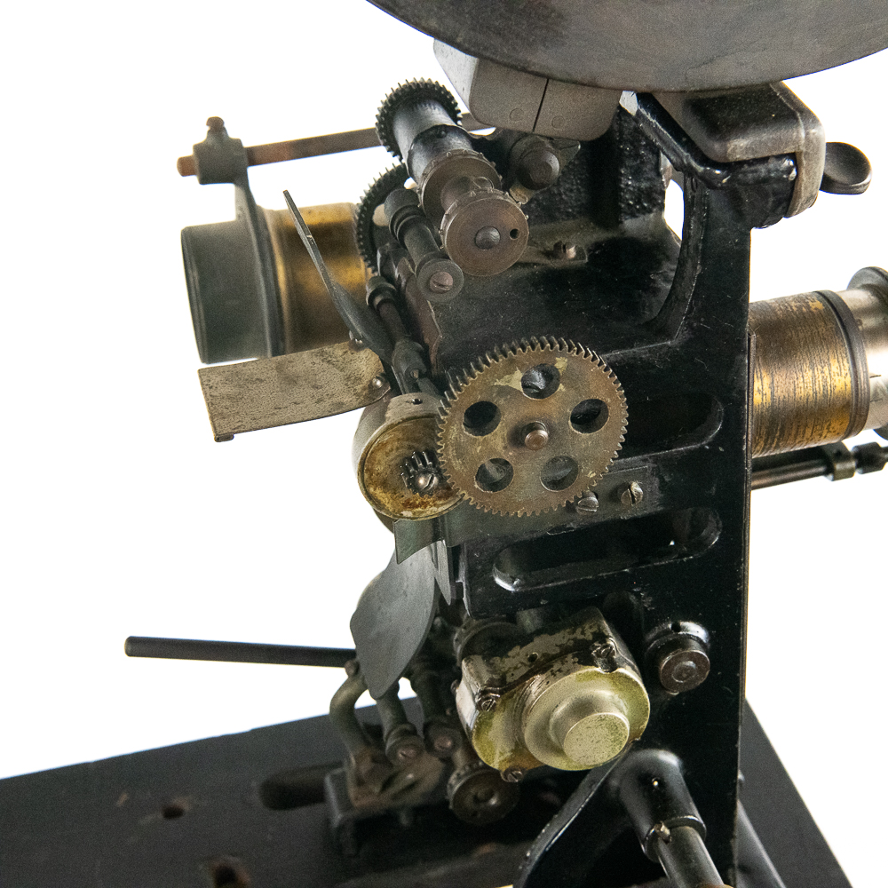 Before ‘Talkies’ there were silent movies and many would have been shown from this functioning machine. With an adjustable carbon arc lamp house and Magic Lantern slide carrier and lens, it’s mostly complete with the exception of the carbon arc rod holder. In as found condition – perfect candidate for a full restoration! Measures (assembled) approximately: 56″T X 37″L X 20″W