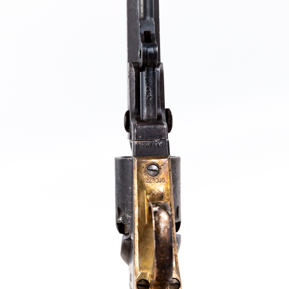 Colt .31 Pocket Pistol Revolver in good condition with wear and oxidation. Timing is off but does cycle. Gun is tight. Visible numbers match. The metal is dark but the grips are very good. MFG 1863 C&R Eligible S/N:228065