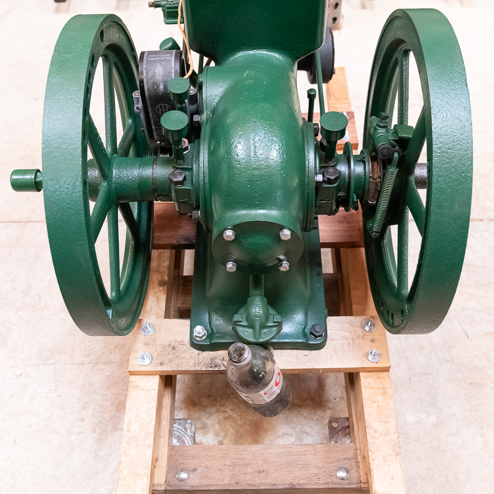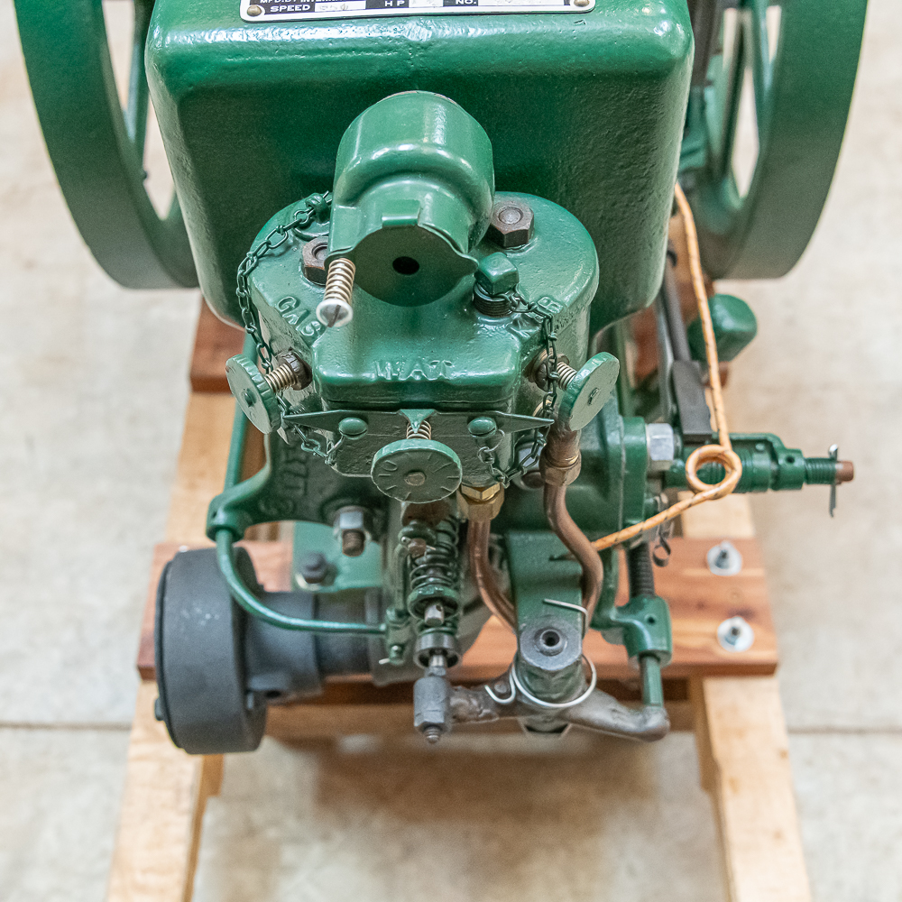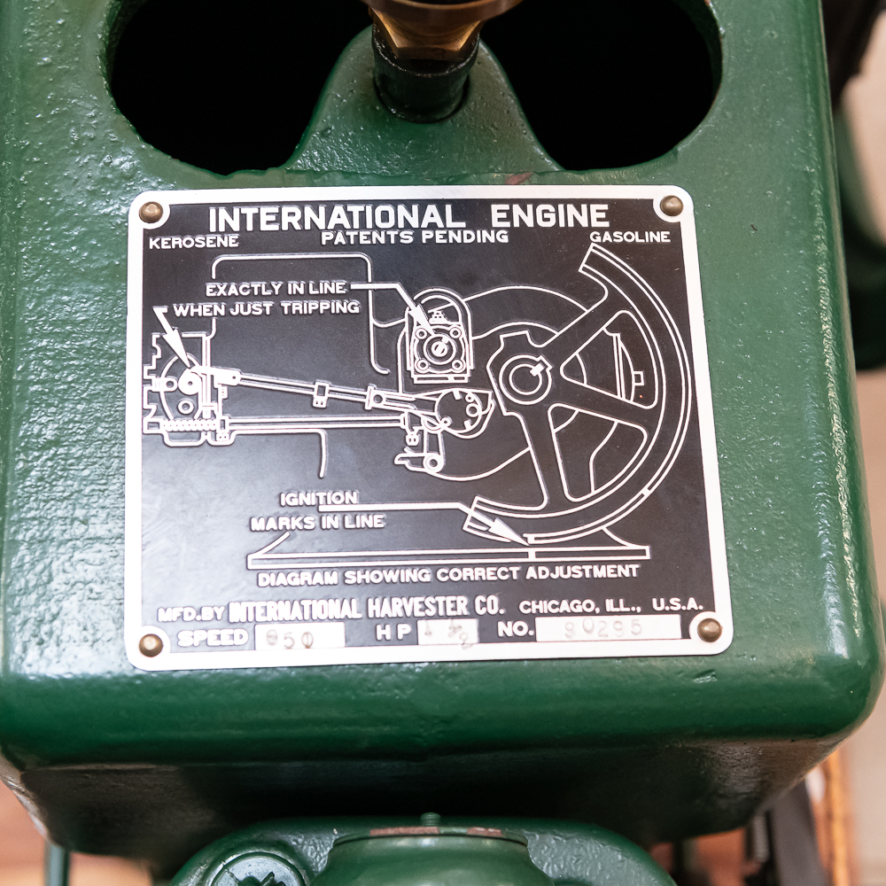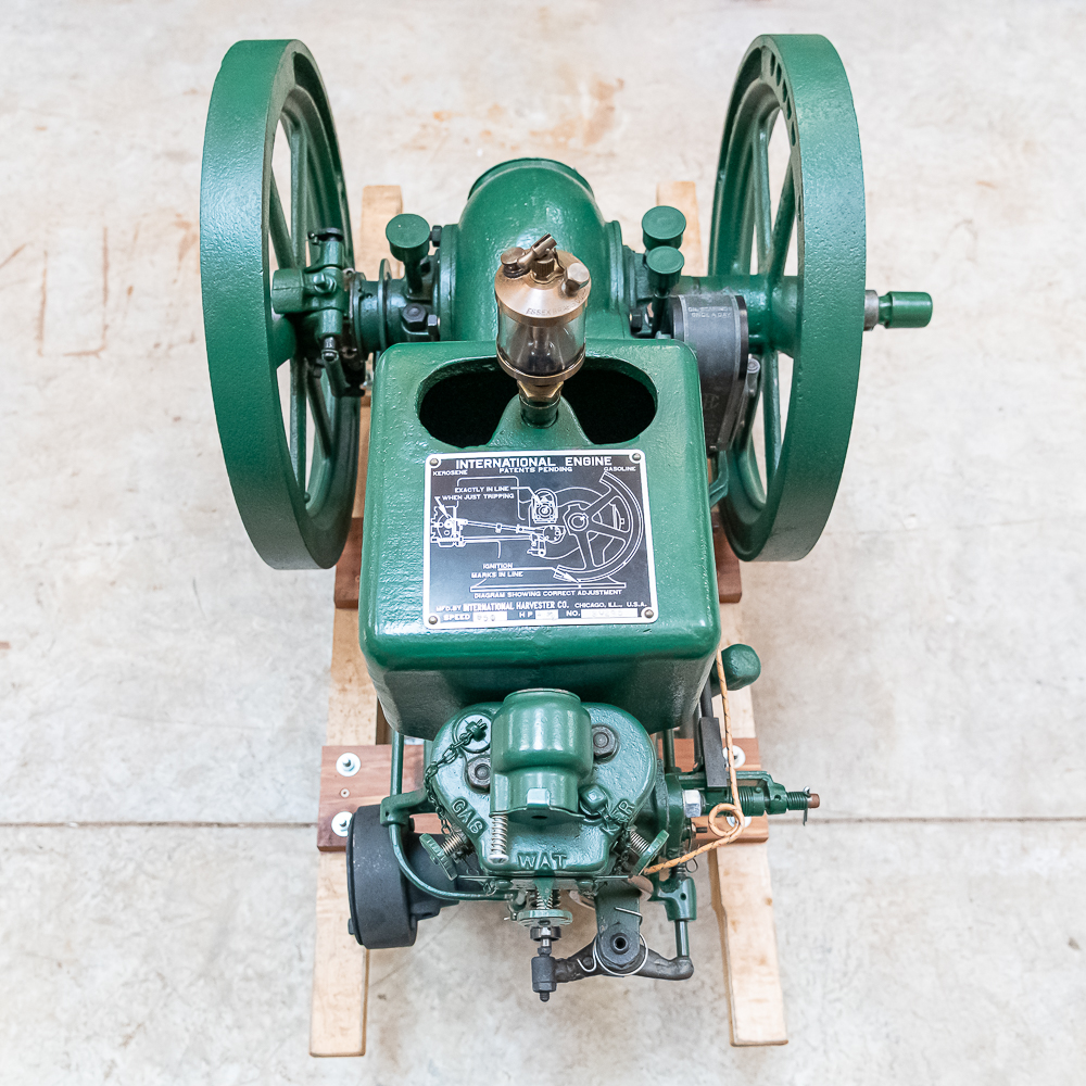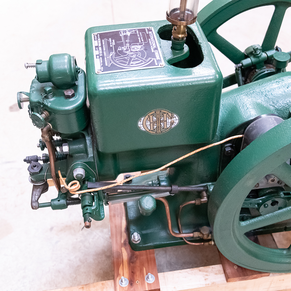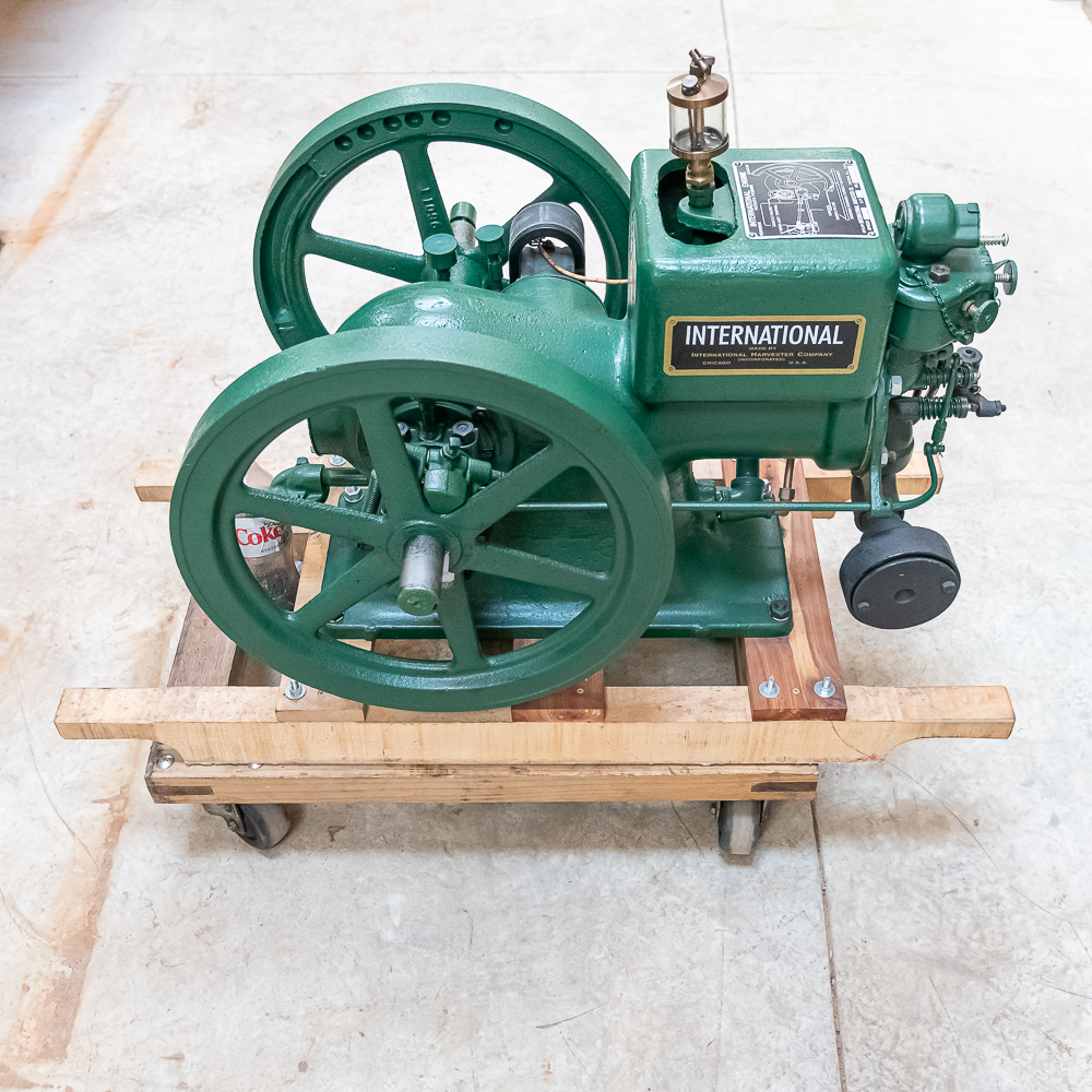IHC Model M 1 1/2 HP Ser # 90295 throttle governor engine. Turns over freely with good compression. IHC mag, grease cup, oiler, gas / kerosene mixer with water valve, igniter ignition, newer paint and decals mounted on a nice wood sled.