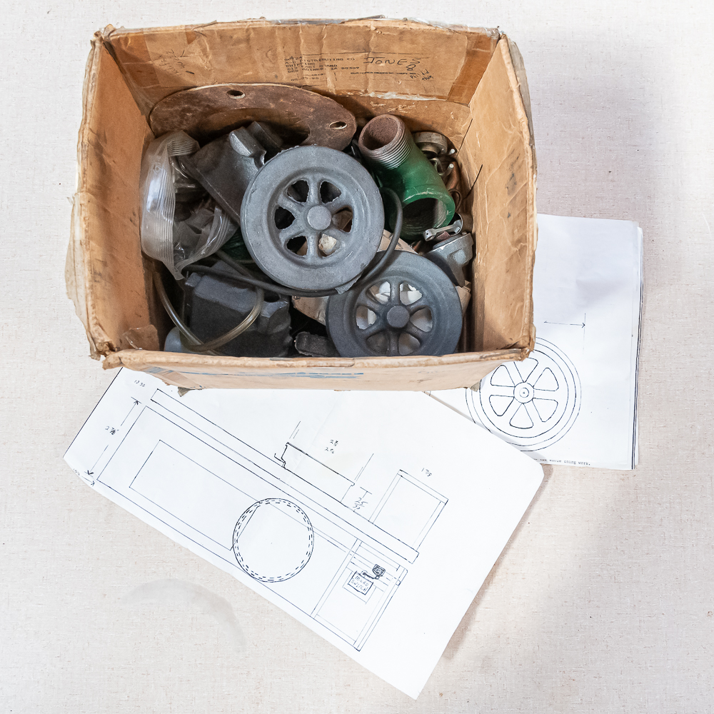 Box lot of rough castings to build a Tom Thumb 1 cyl engine. Drawings and photos included.