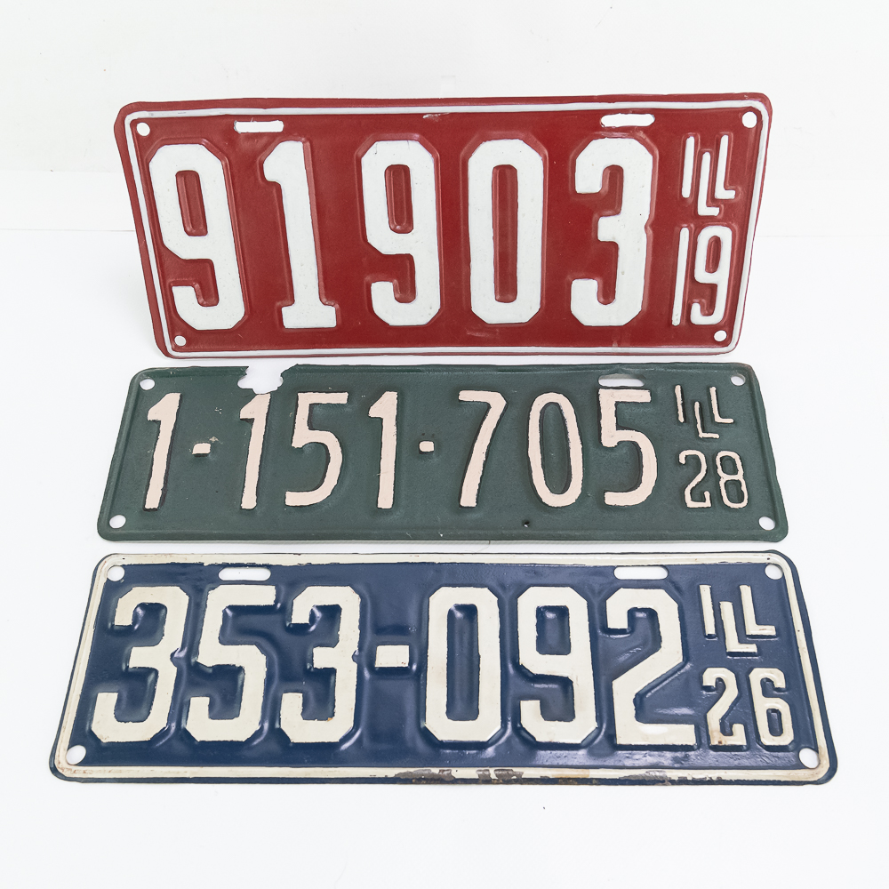 Illinois 1919, 1926, 1928 plates repainted in good condition. See pics.