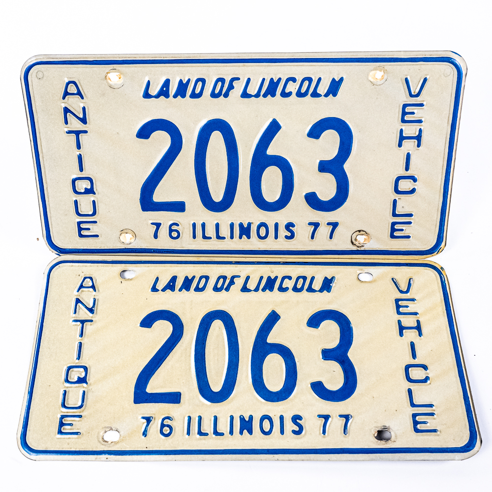 1976 Illinois antique license plate pair #2063. Very good overall condition with minor bolt wear & scuffs. Perfect addition to your collection, please use photos to judge condition and bid accordingly.