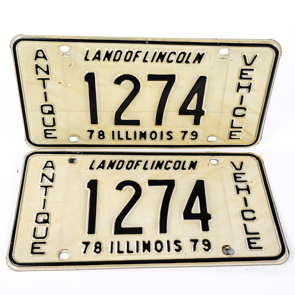 1979 Illinois antique vehicle license plate #1274. Very good overall condition with minor bolt wear along with a couple scuffs scratches. Perfect addition to your collection, please use photos to judge condition and bid accordingly.