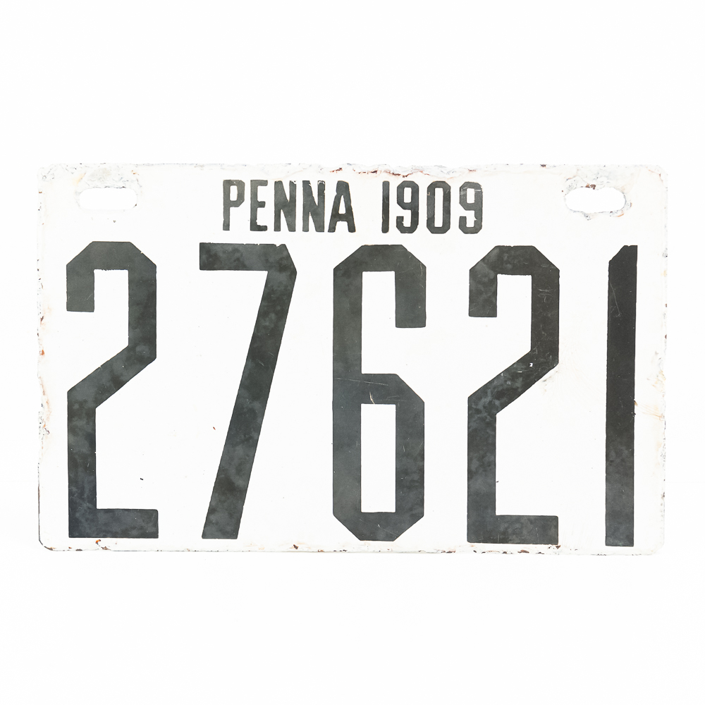 Pennsylvania 1909 Porcelain in good condition with touched up chips around the edges. See pics