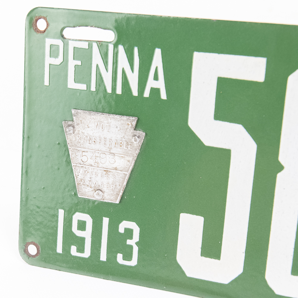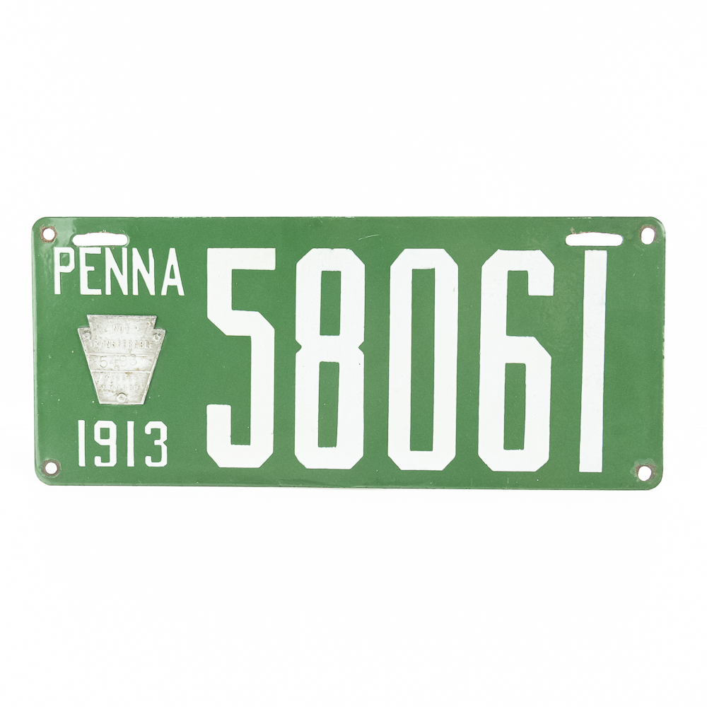 Pennsylvania 1913 in excellent original condition with just a little rust around the mounting grommets. Has intact aluminum keystone tag. A real beauty. See pics.